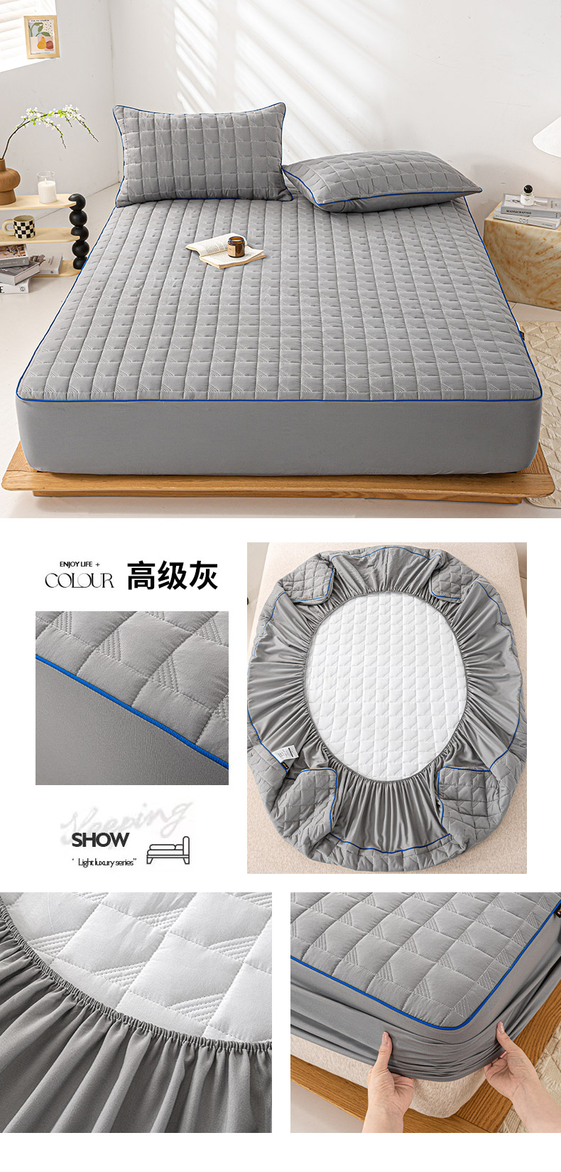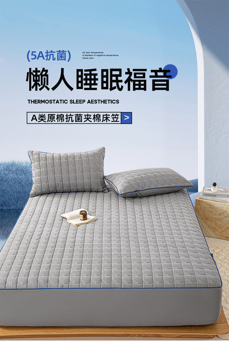 • 91家纺网 家纺一手货源 找家纺 (总)好眠好梦家纺 2025新款全棉50S夹棉抗菌防螨床笠-棉生活系列,白色,粉色,卡其,深灰,天蓝,烟灰