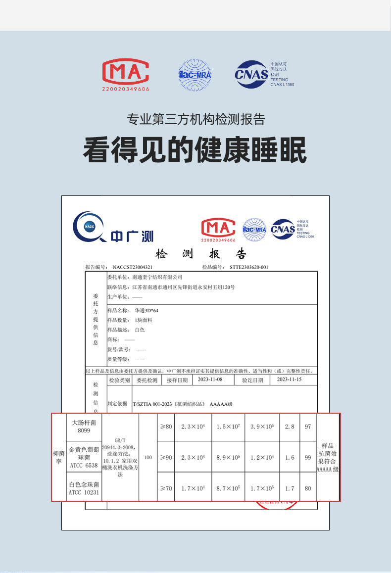 2、通州区市场监督局提醒各电商,近期涉及抗菌防螨、防静电的投诉高发,为了不影响商品正常销售,请对无检验报告支持的页面广告进行整改,谢谢!