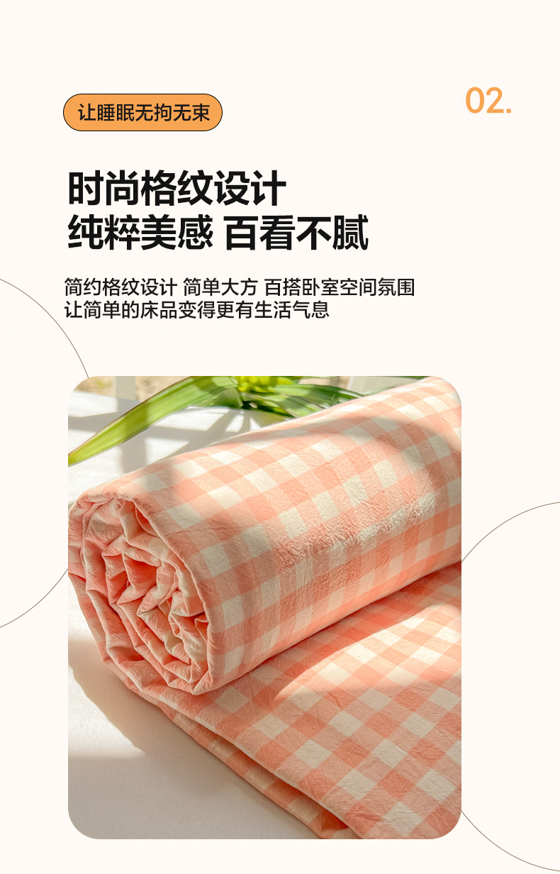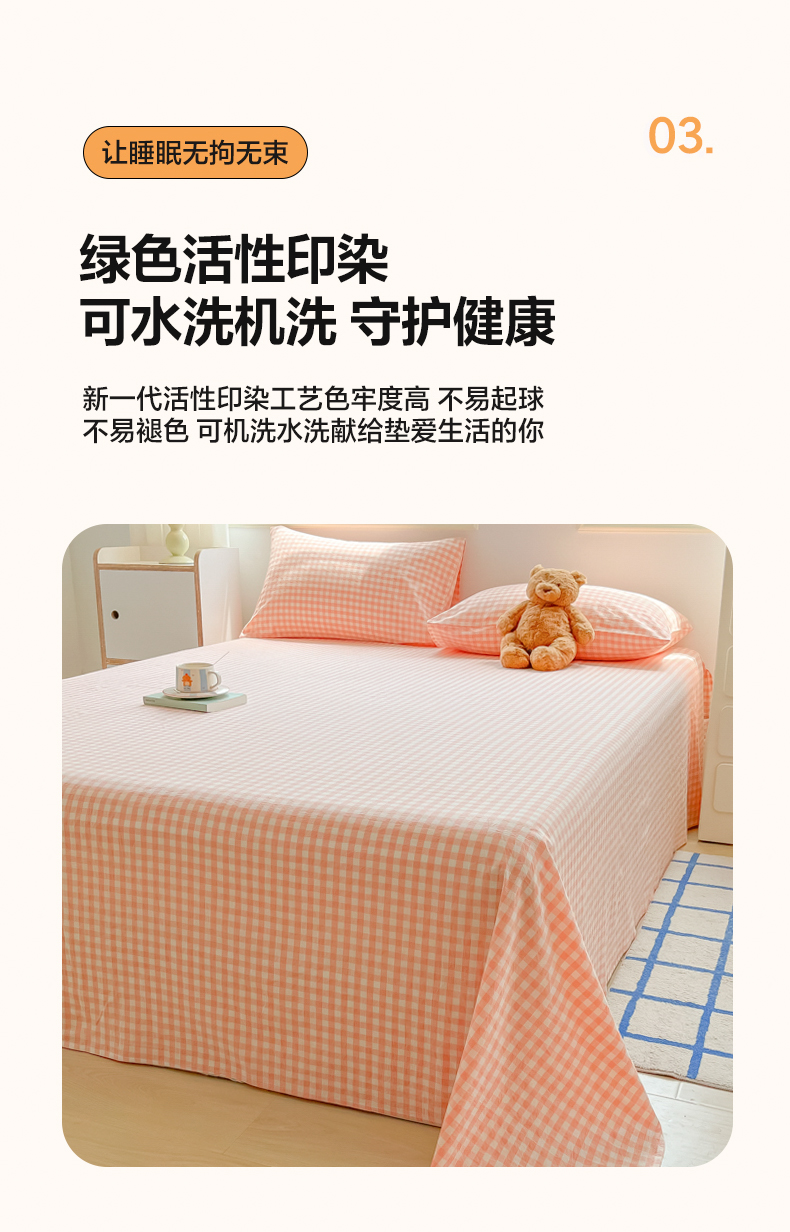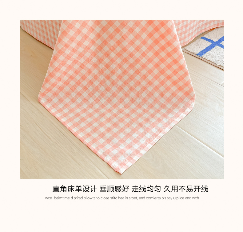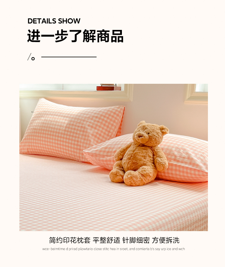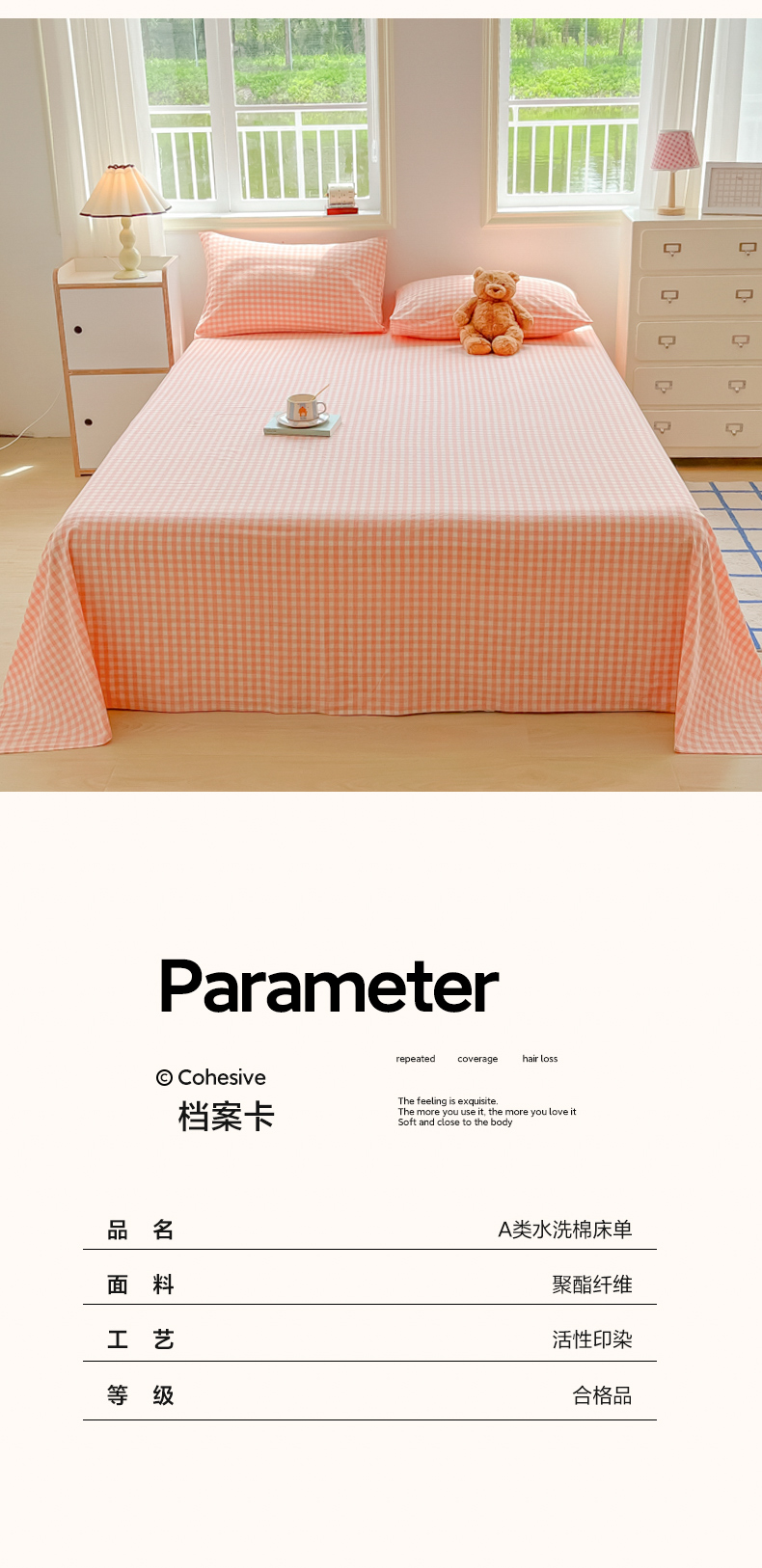 商品名称:韩巢家纺 2024新款简约格子纯色A类水洗棉床单枕套三件套 A类草莓格-床单