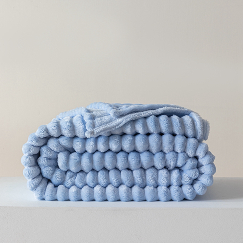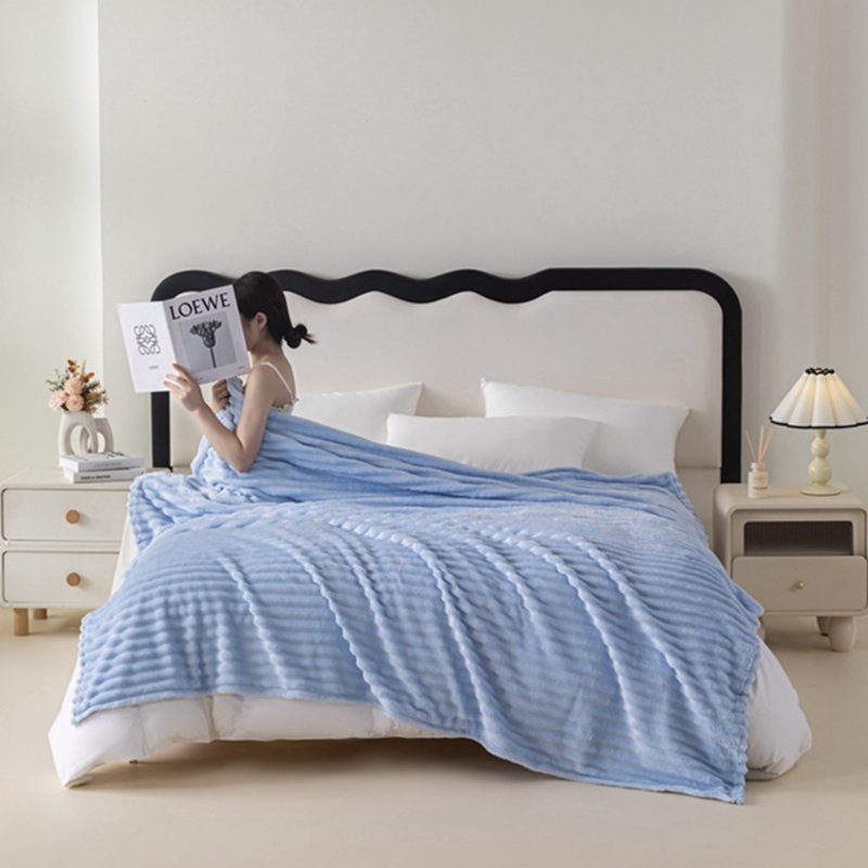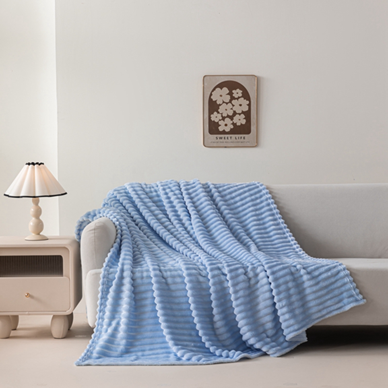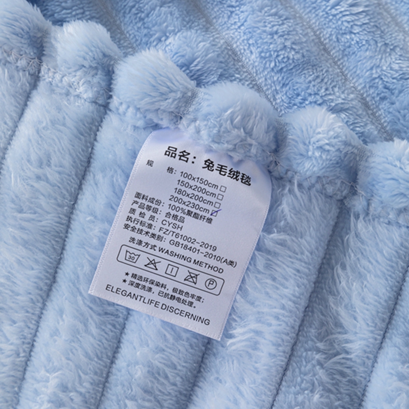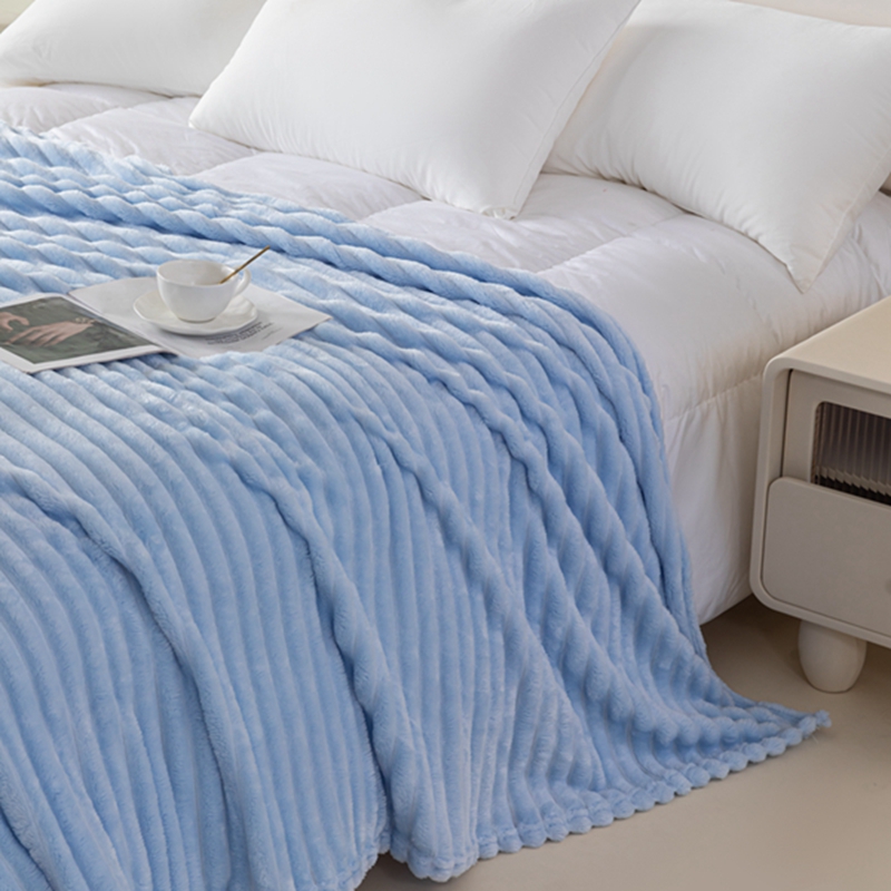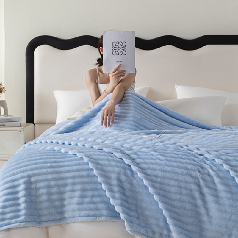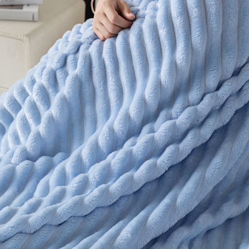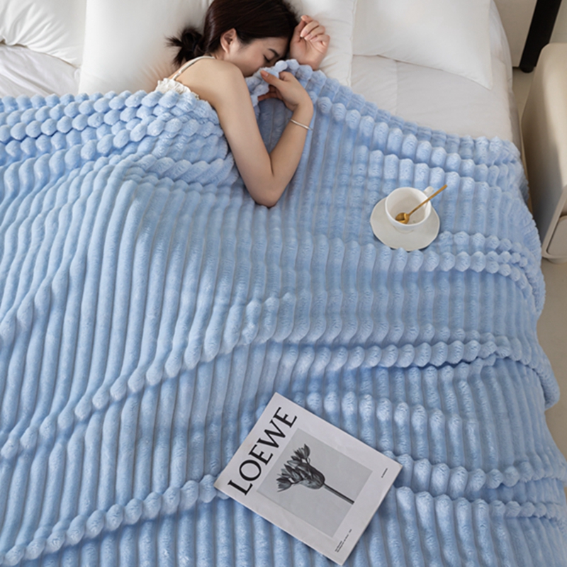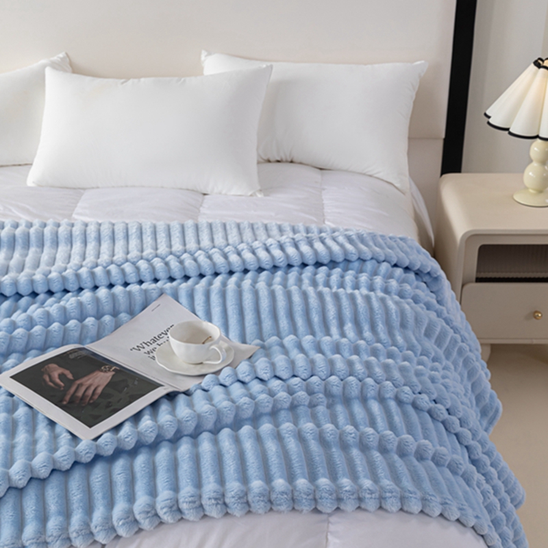 商品名称:锦禾穗 2024新款兔毛绒多功能毛毯高克重抽条纯色加宽加厚双面绒 兔毛蓝
