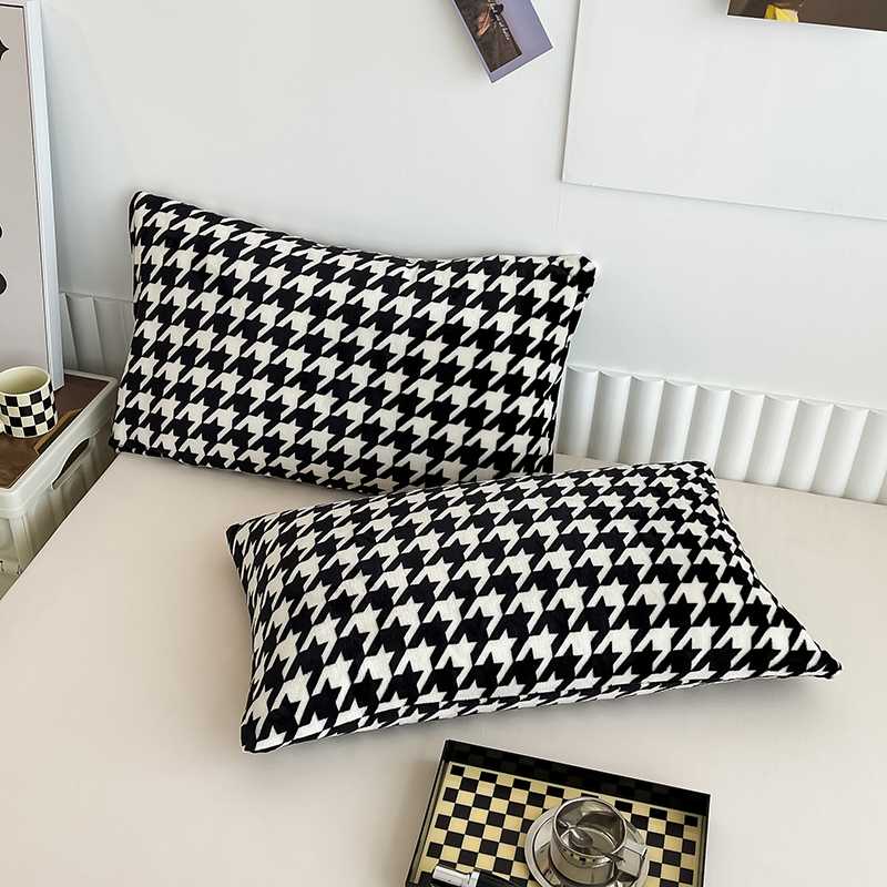 丽涵家纺 2024秋冬新品牛奶绒印花千鸟格单品枕套 千鸟格