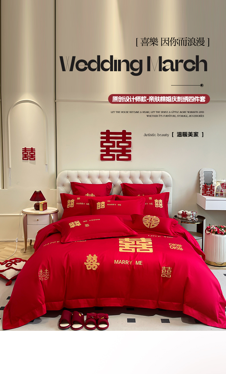 (总)欧乐蒂 2025新款全棉刺绣婚庆四件套,佳偶天成,龙凤和美,龙姿凤彩,玫瑰恋人,倾城之恋,双囍临门,甜蜜爱情,囍结良缘