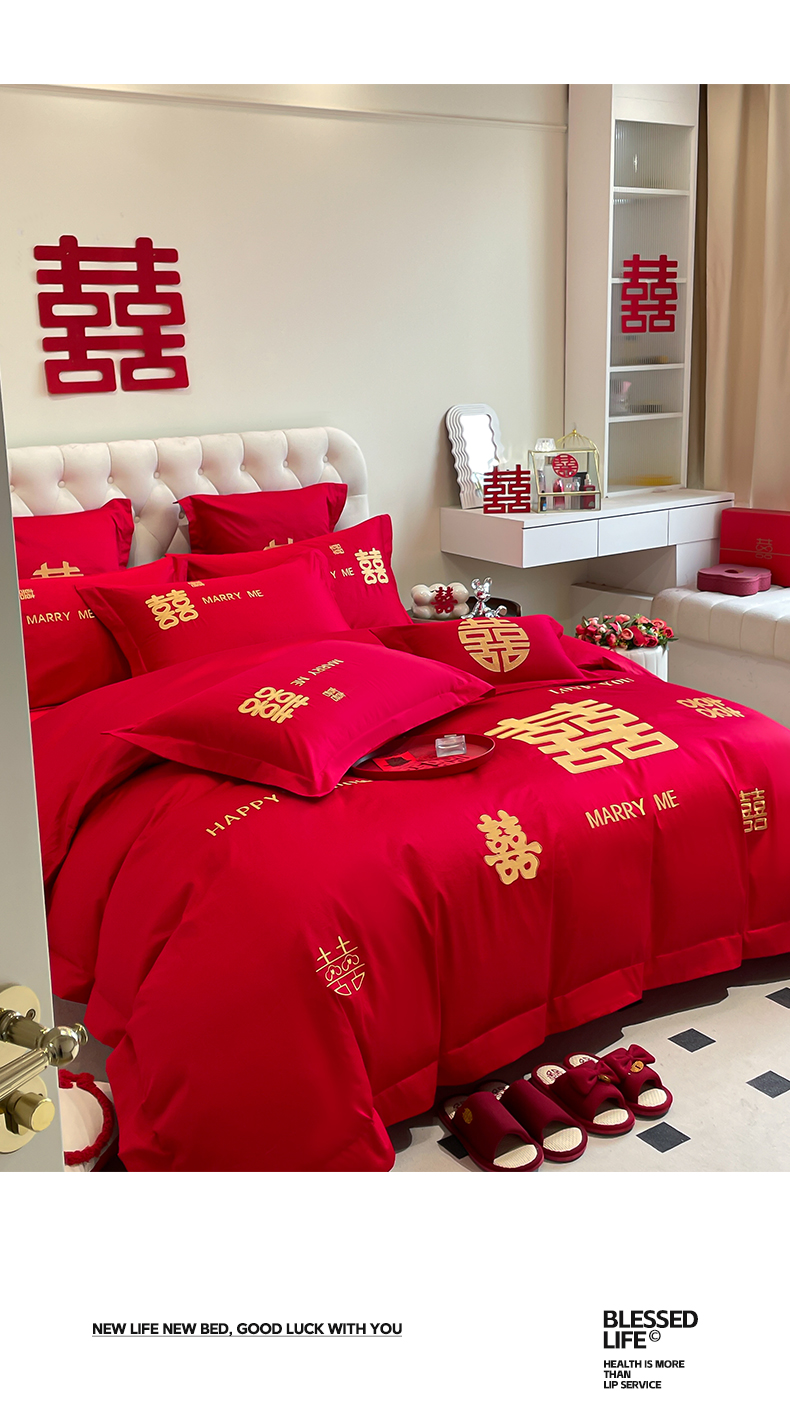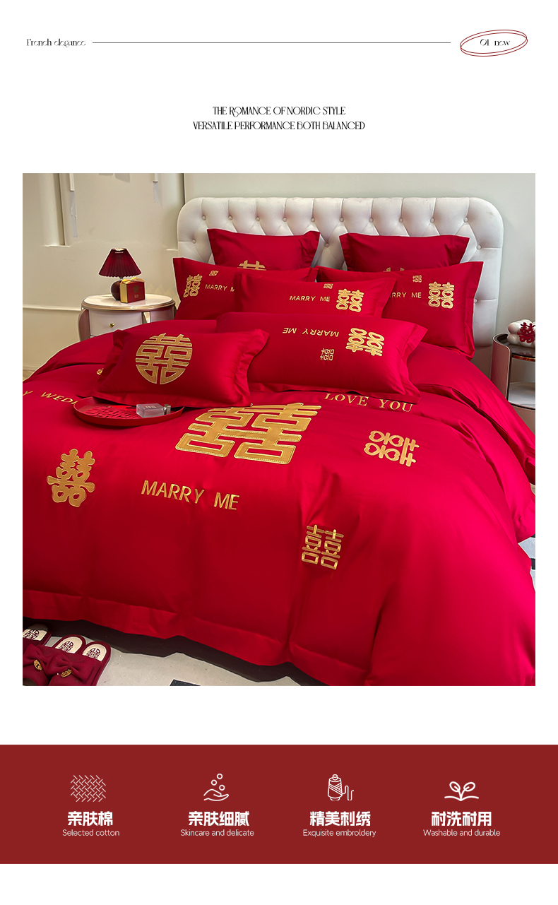 (总)欧乐蒂 2025新款婚庆款牛奶绒刺绣系列四件套-爱相随,爱相随-喜红,爱相随-金