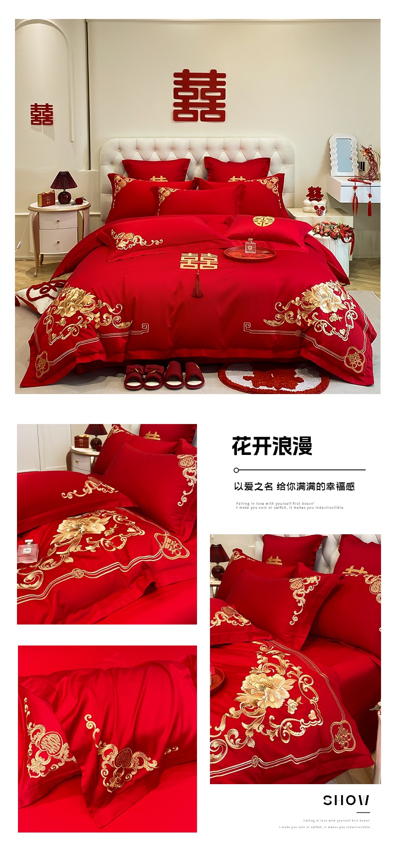 (总)欧乐蒂 2025新款亲肤棉刺绣花边婚庆四件套-浪漫花季,浪漫花季-红,浪漫花季-金