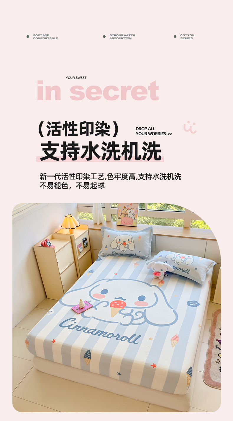 (总)博雅 2024新款三丽鸥全棉大版印花床笠系列