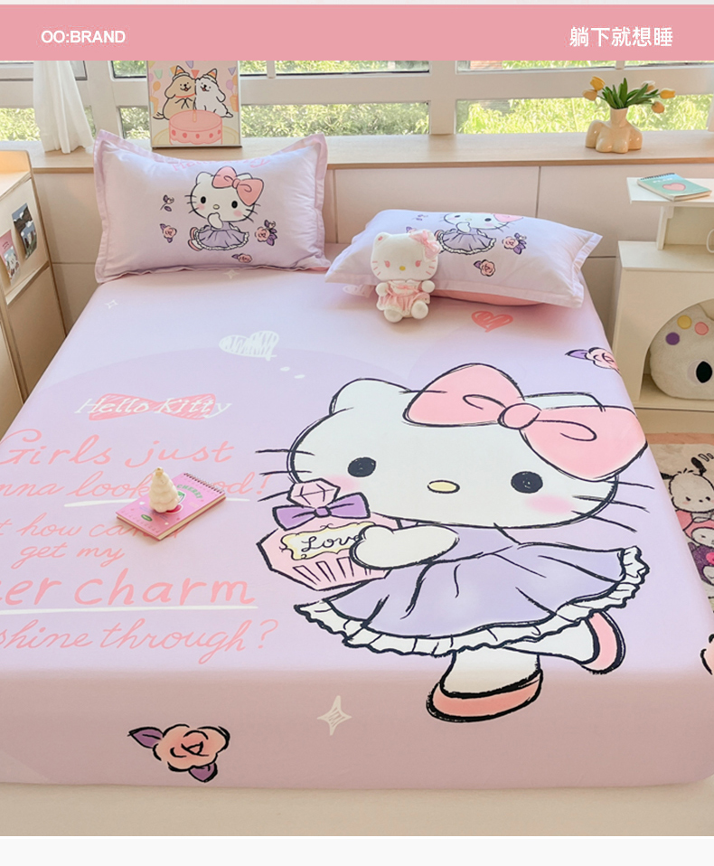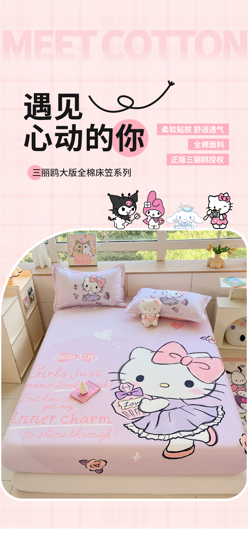 商品名称:博雅 2024新款三丽鸥全棉大版印花床笠系列 全棉大版-香香KT
