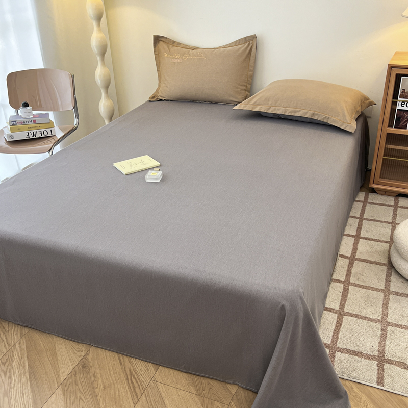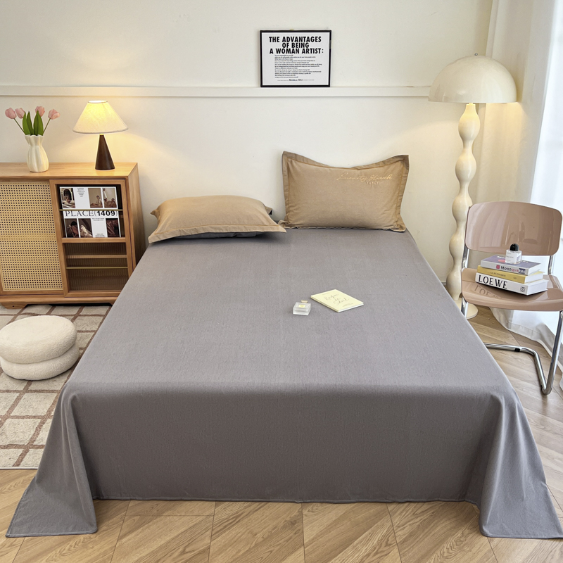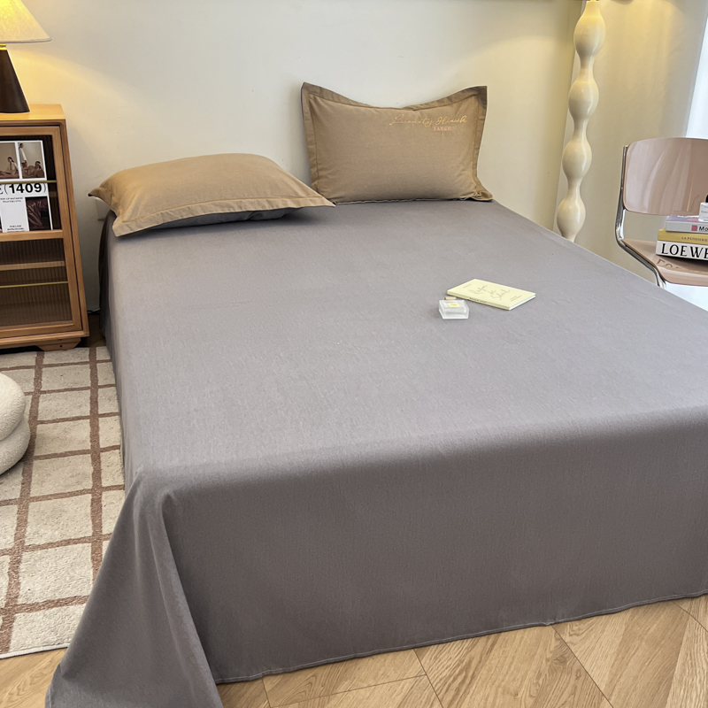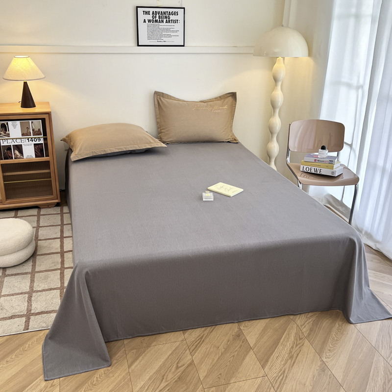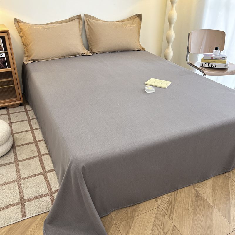 菲梵家纺 2025新款纯色双拼全棉加厚磨毛刺绣款套单床单(自然光场景) 高级灰