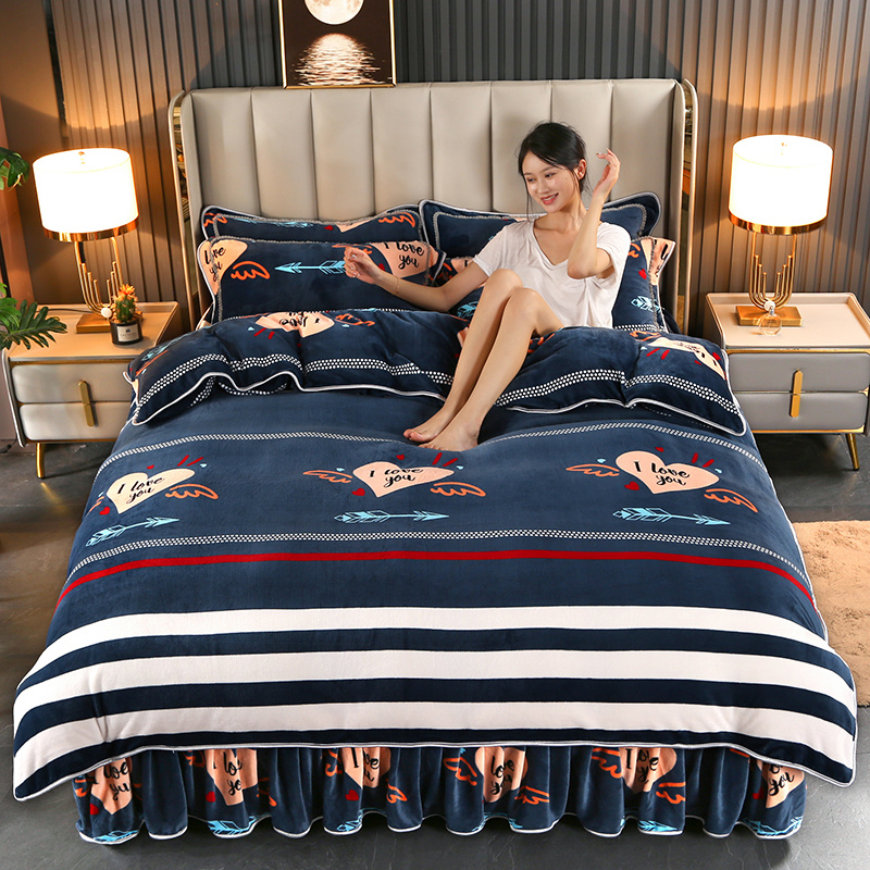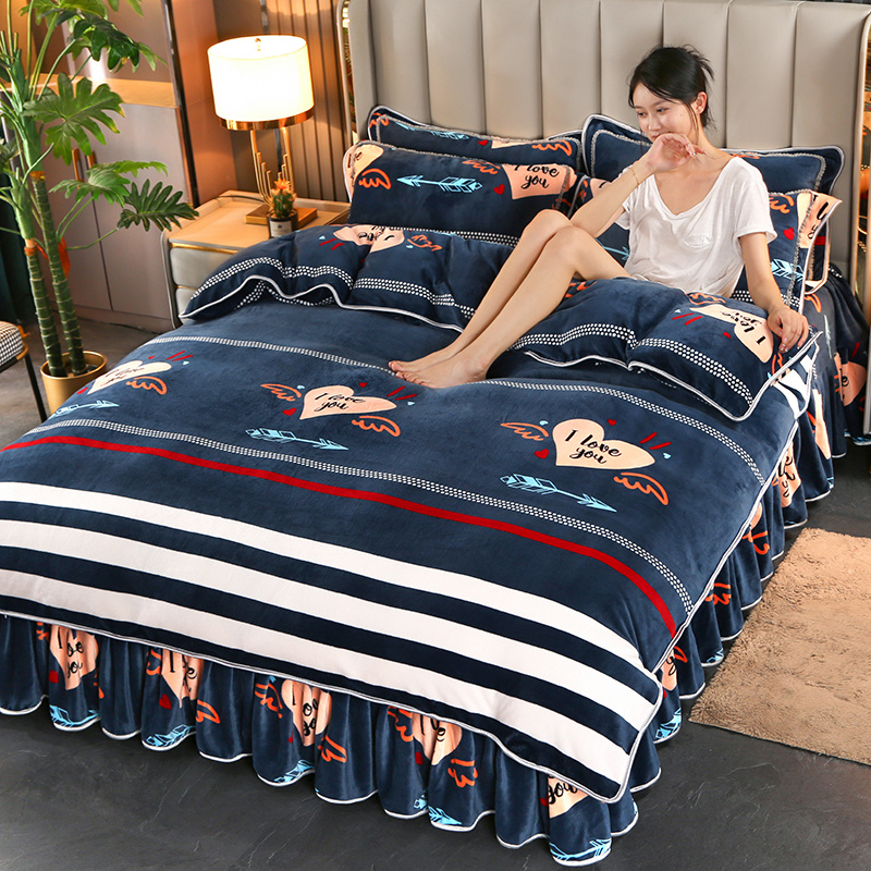 商品名称:橘姿 2024新款8斤床裙款牛奶绒四件套 爱语