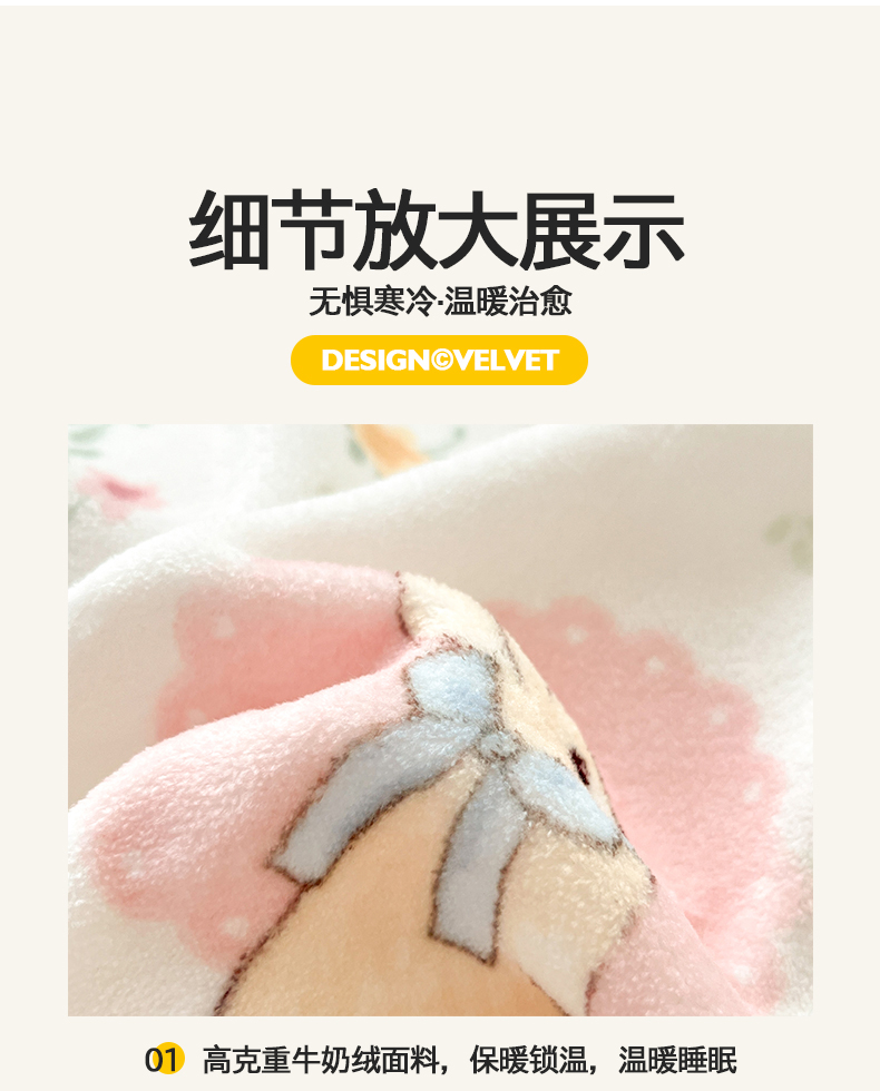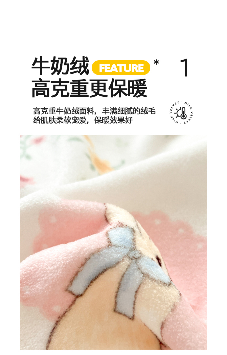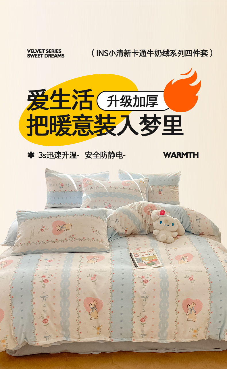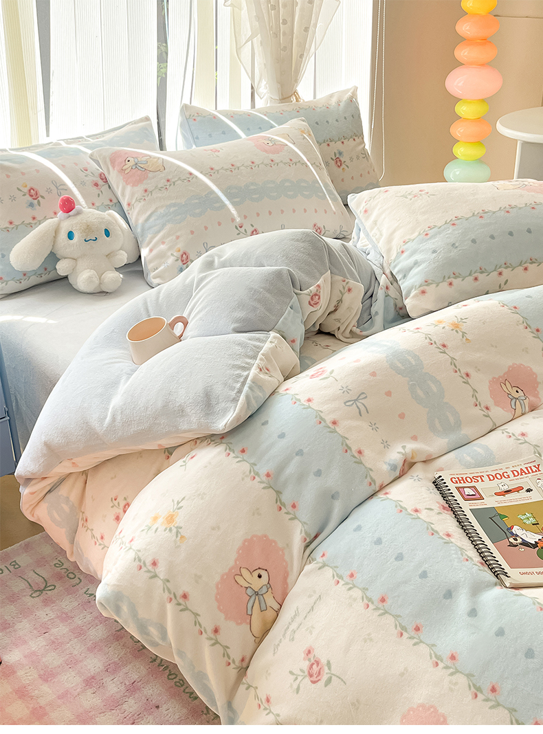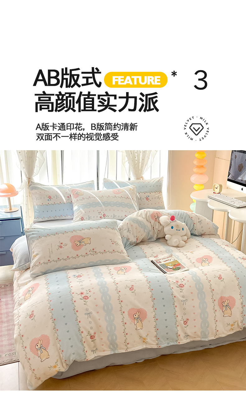 桃子家居 2024新款ins小清新花卉少女卡通跑量牛奶绒系列四件套 绒-蓝玉兔