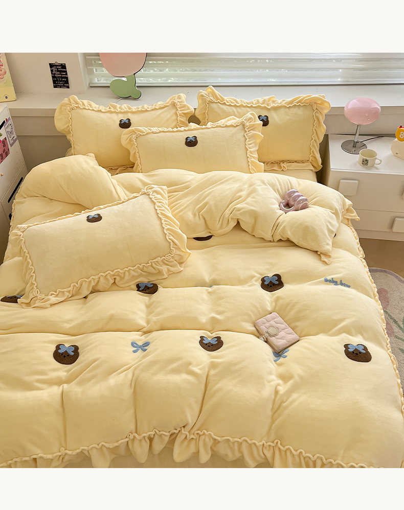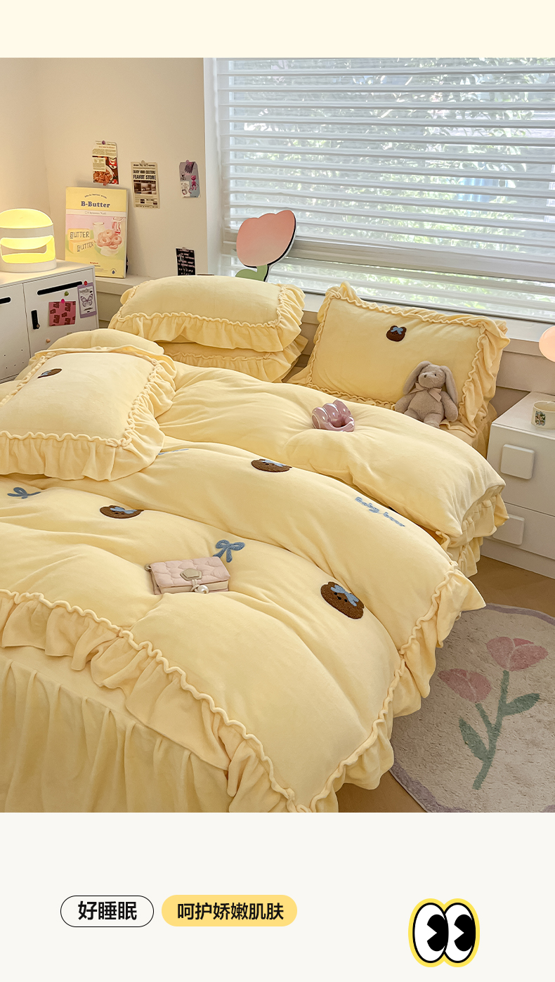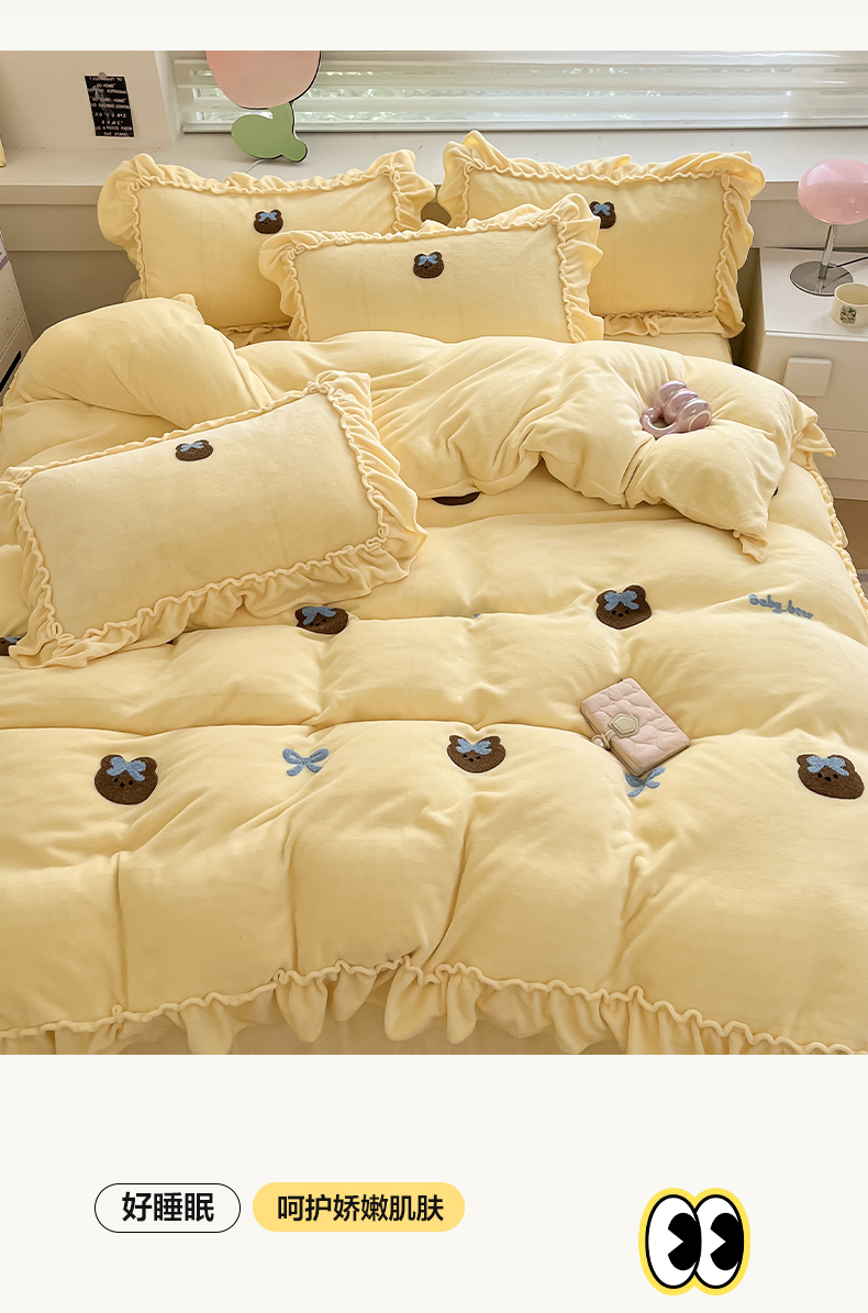 商品名称:亨通家纺 2024新款高克重法式牛奶绒四件套系列-呆萌风 呆萌风-紫