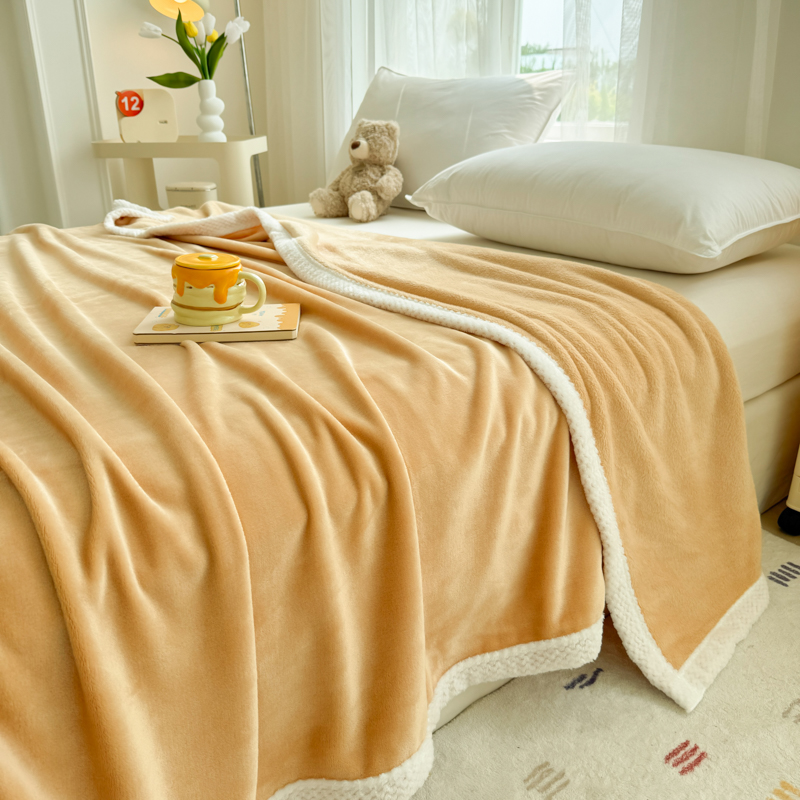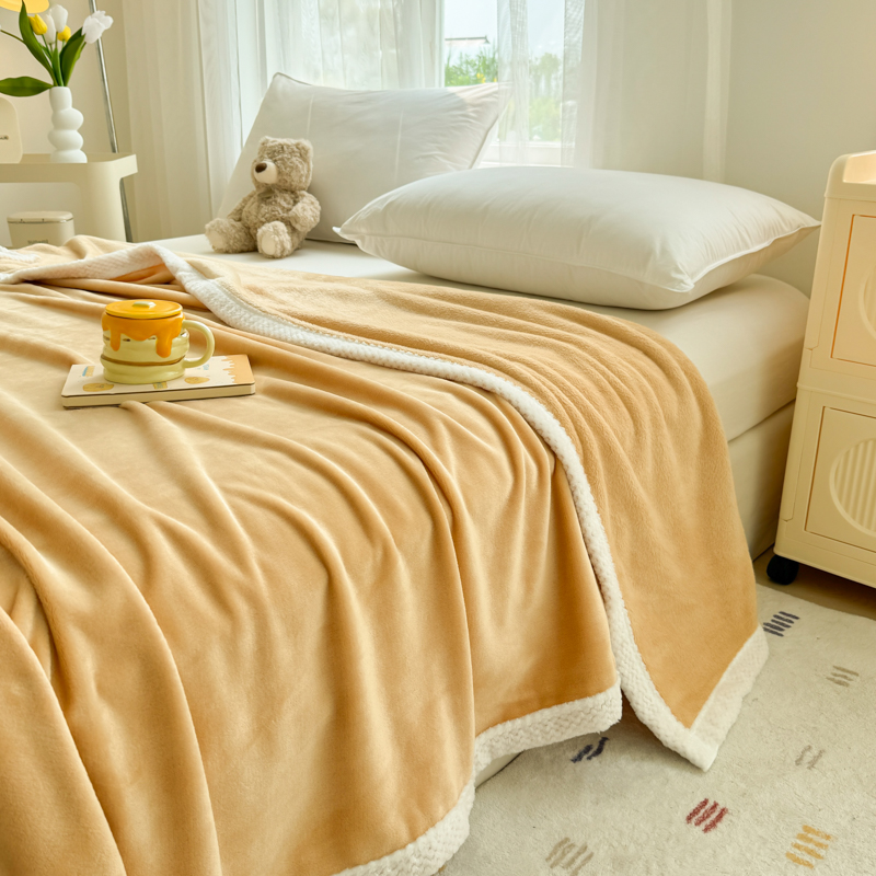 商品名称:侨鑫 2024新款高克重牛奶绒纯色毛毯 黄色