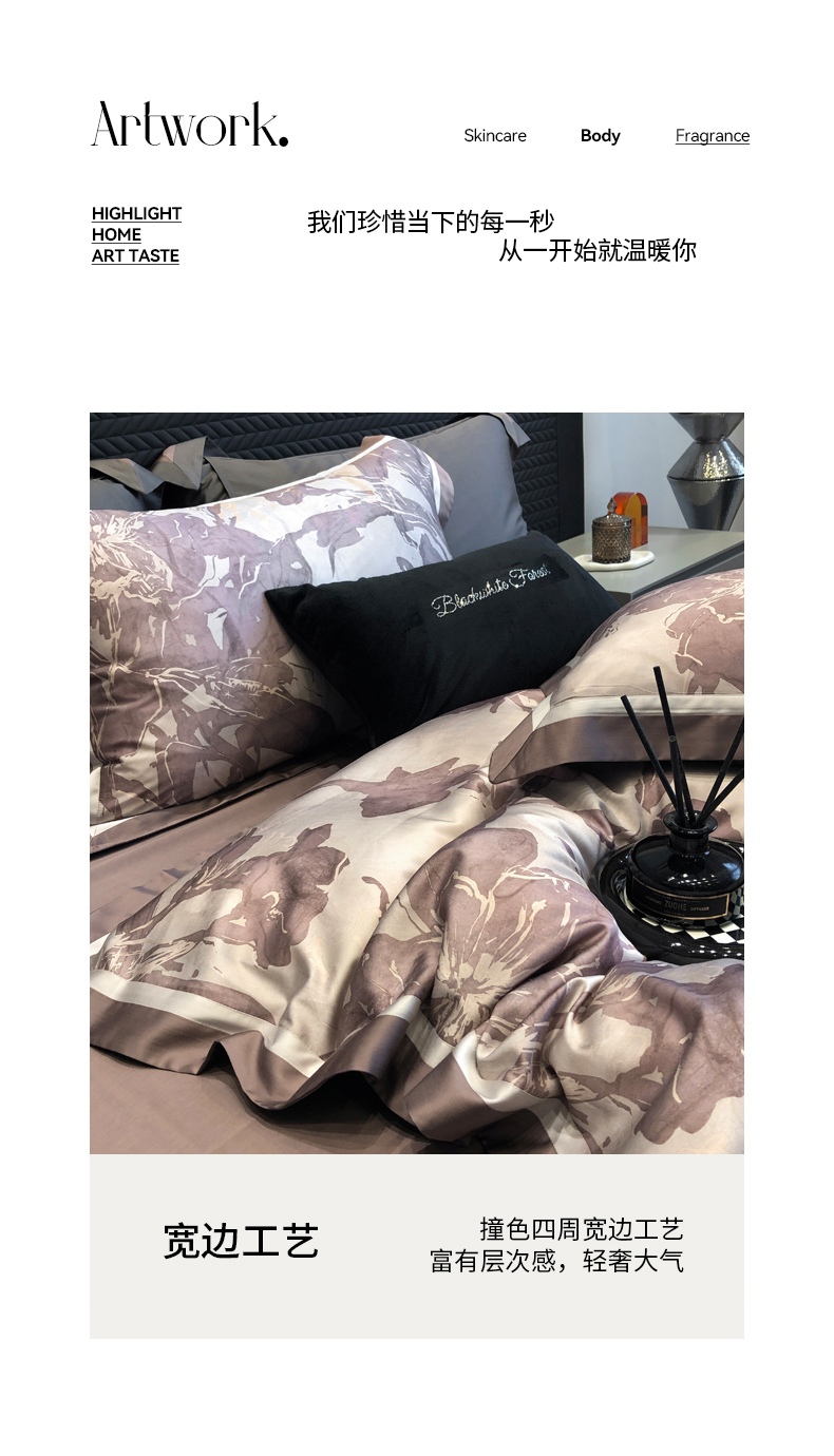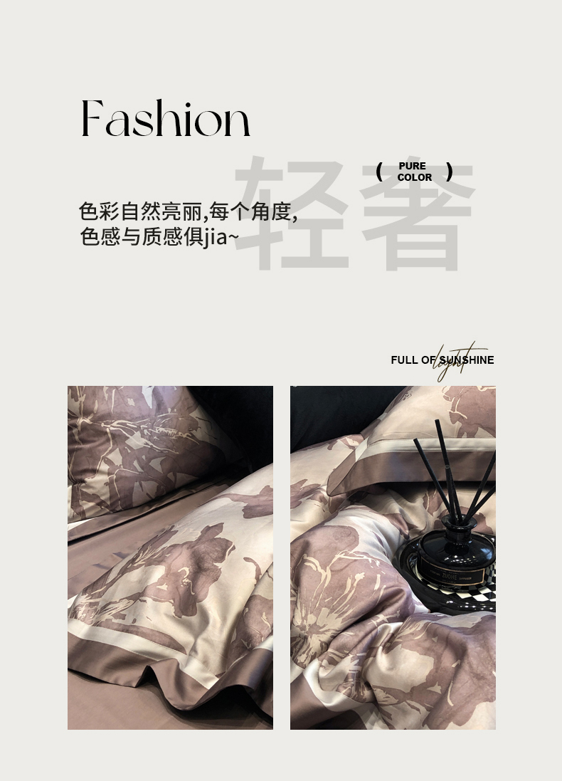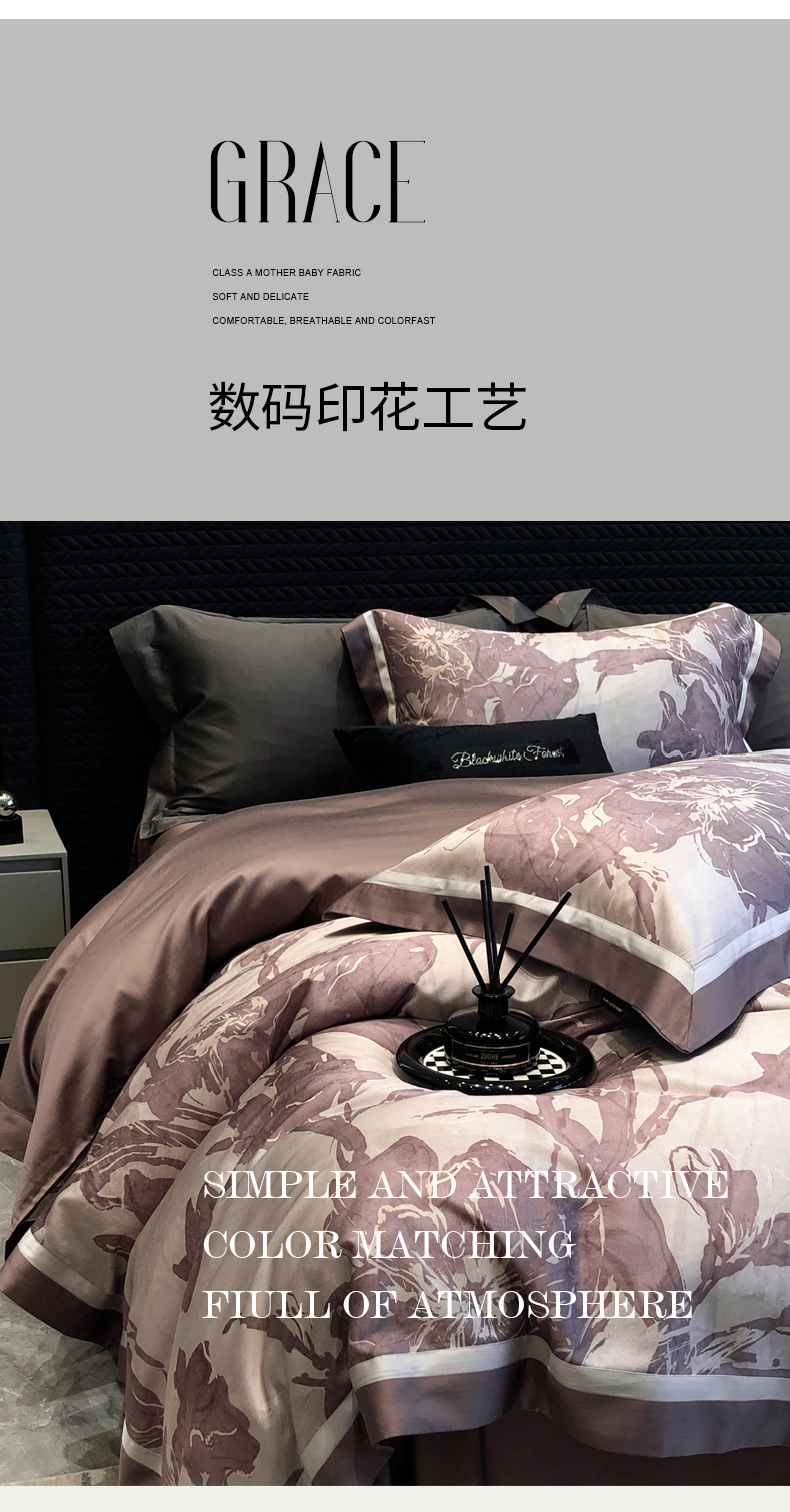 黑白森林2024款 50X50S高支天丝棉数码印花四件套天丝全棉,柚凝咖,柚凝绿,若芙灰,若芙咖