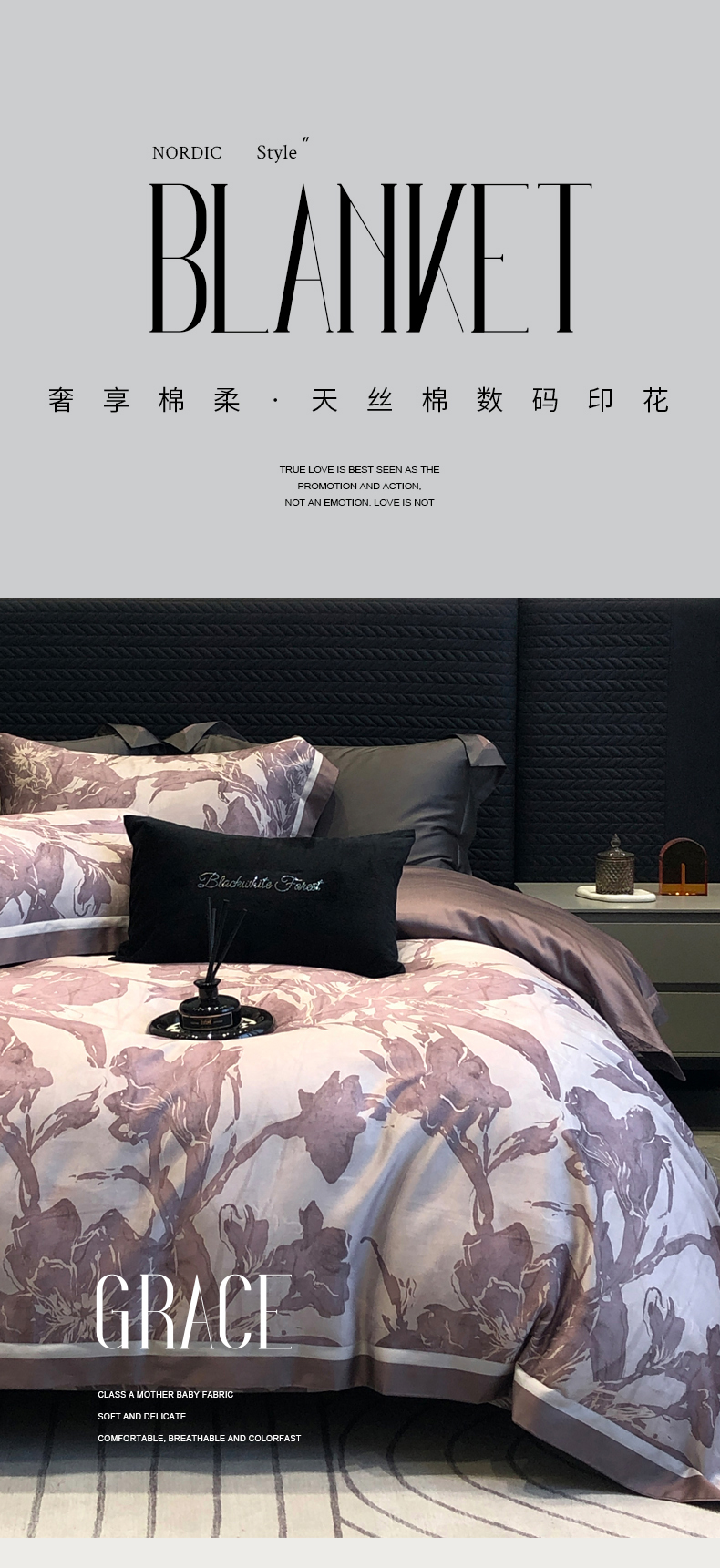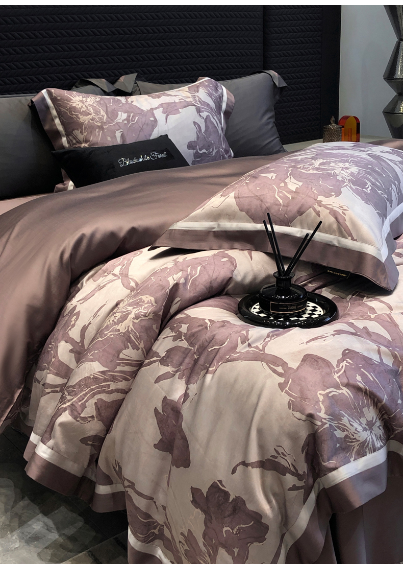 黑白森林2024款 60S支兰精天丝数码印花四件套,朝颜,木槿,玉茗,春浅,京墨,半夏,丹若,繁缕,青黛,德琳-粉,德琳-绿,蒂娜-灰,蒂娜-紫,慧莉-粉,慧莉-绿,欧瑞,夏夜