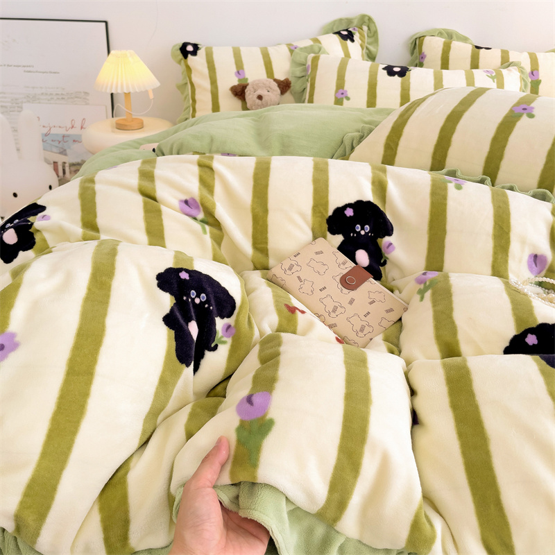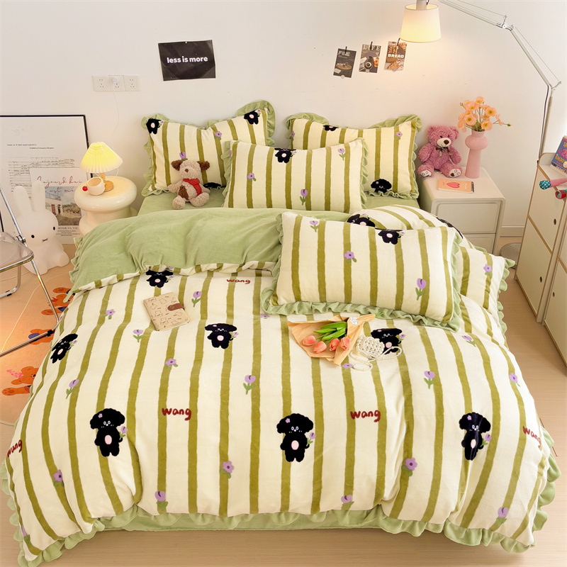 (总)麦朵 2024高克重牛奶绒花边款四件套雪花绒金貂绒套件宝宝绒雕花绒被套,多彩南瓜,乖乖狗,哈基米-绿,橘子狗,领结粉,曼琳-粉,曼琳-绿,童话乐园,晚安猫,象先生