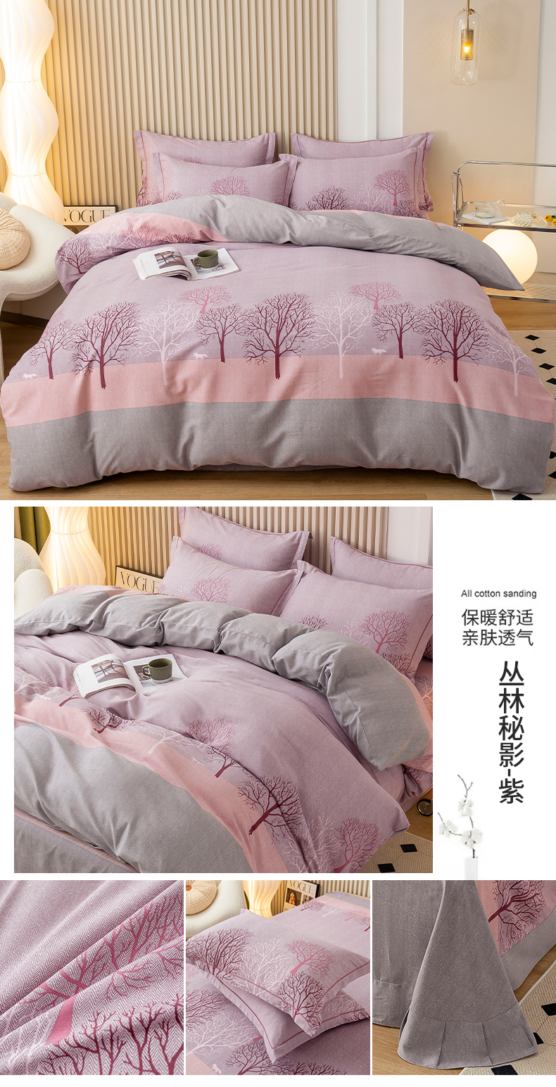 当前位置: 91家纺网 > 商品网购 > 床品套件 > 四件套 > 全棉普通四件套 > 威布斯 2025新款加厚纯棉全棉磨毛三件套四件套 丛林秘影-紫