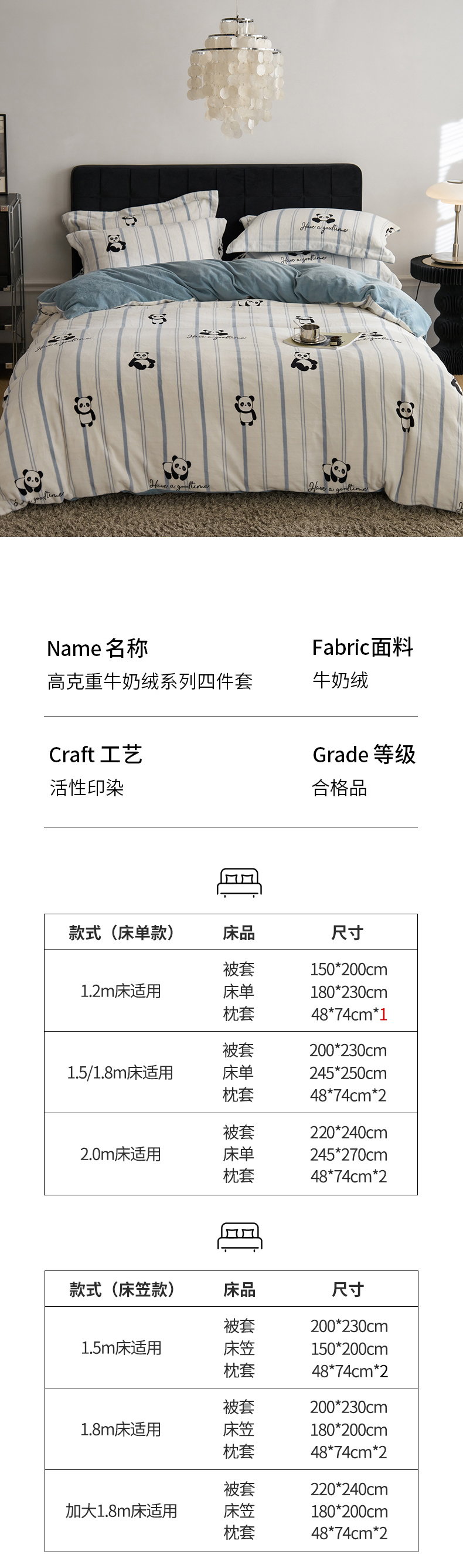 商品名称:千朵森 2024新款网红印花熊猫牛奶绒四件套 风格二 梵伊
