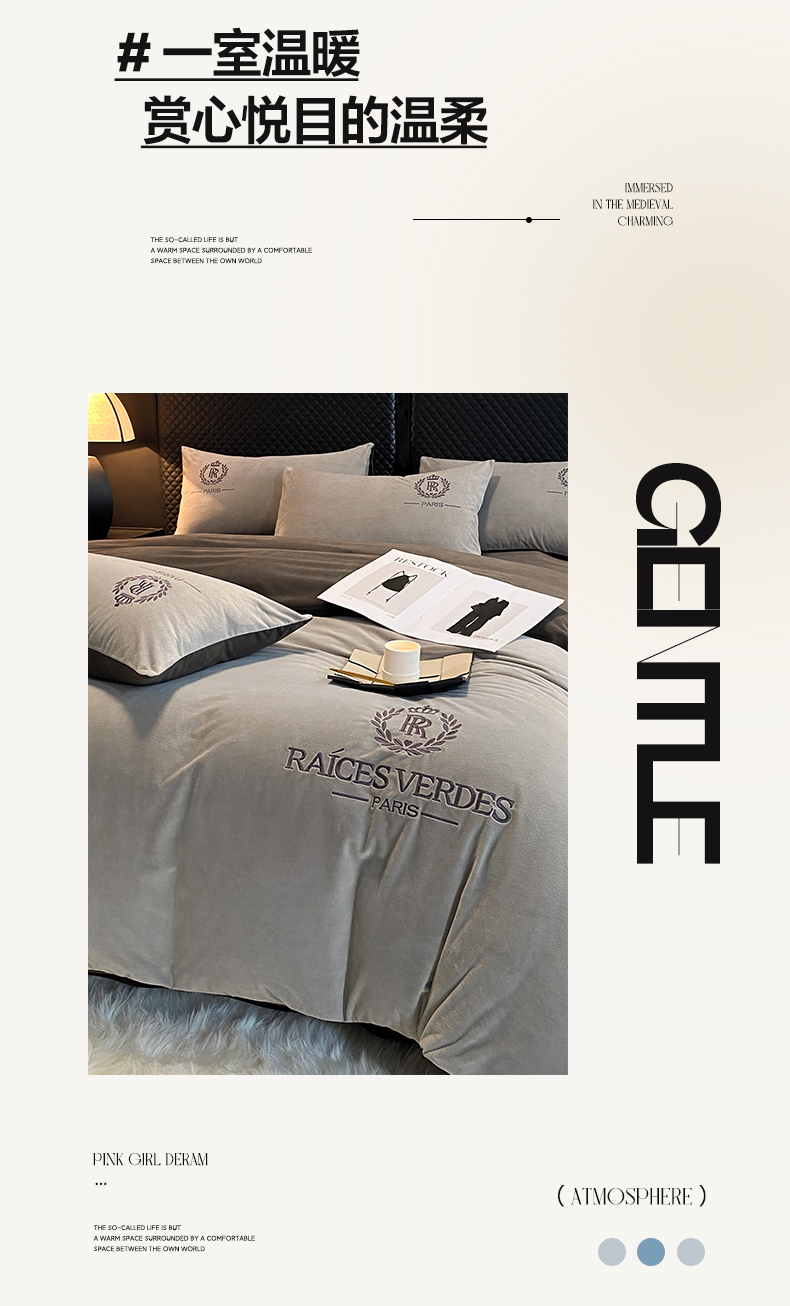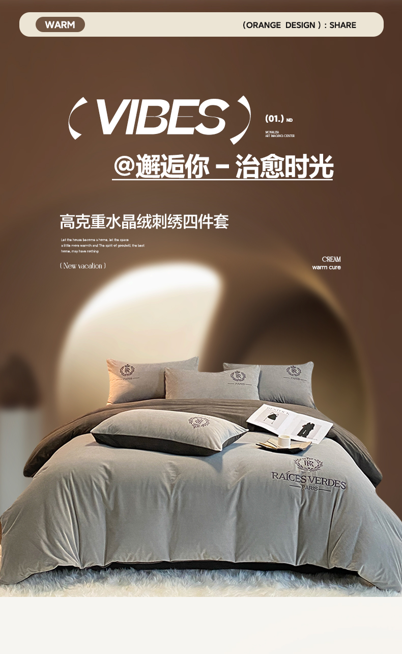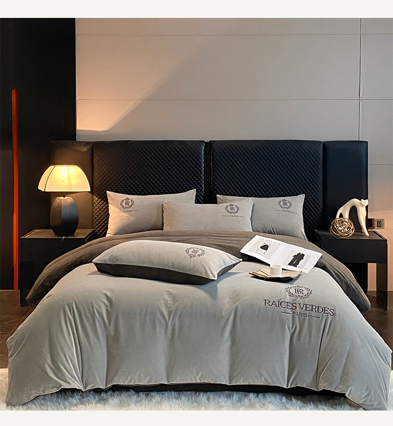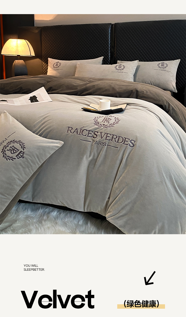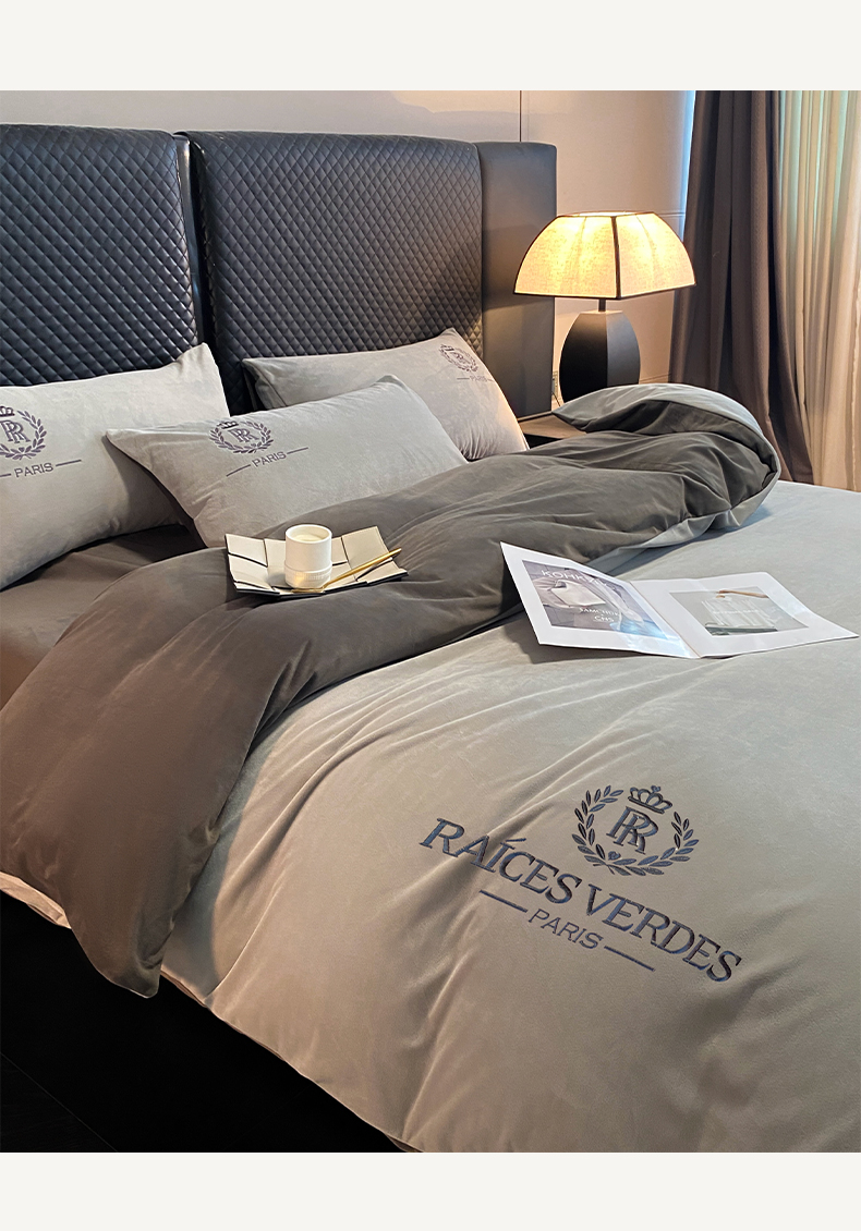 (总)如一 2025新款水晶绒双拼刺绣四件套轻羽系列-系列二,轻羽-典雅灰,轻羽-落日橙,轻羽-奶白咖,轻羽-深灰银,轻羽-雾蓝灰,轻羽-豆沙灰