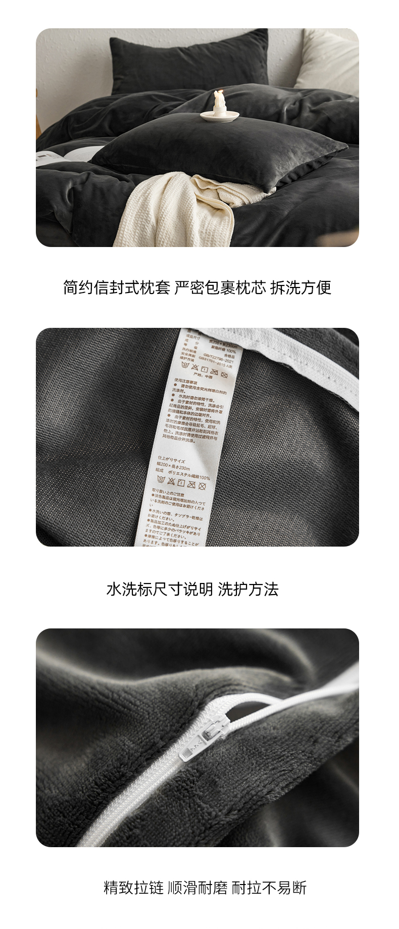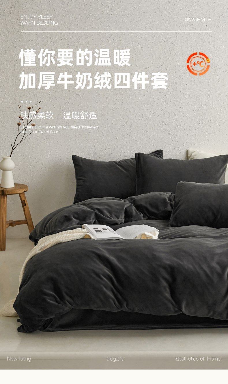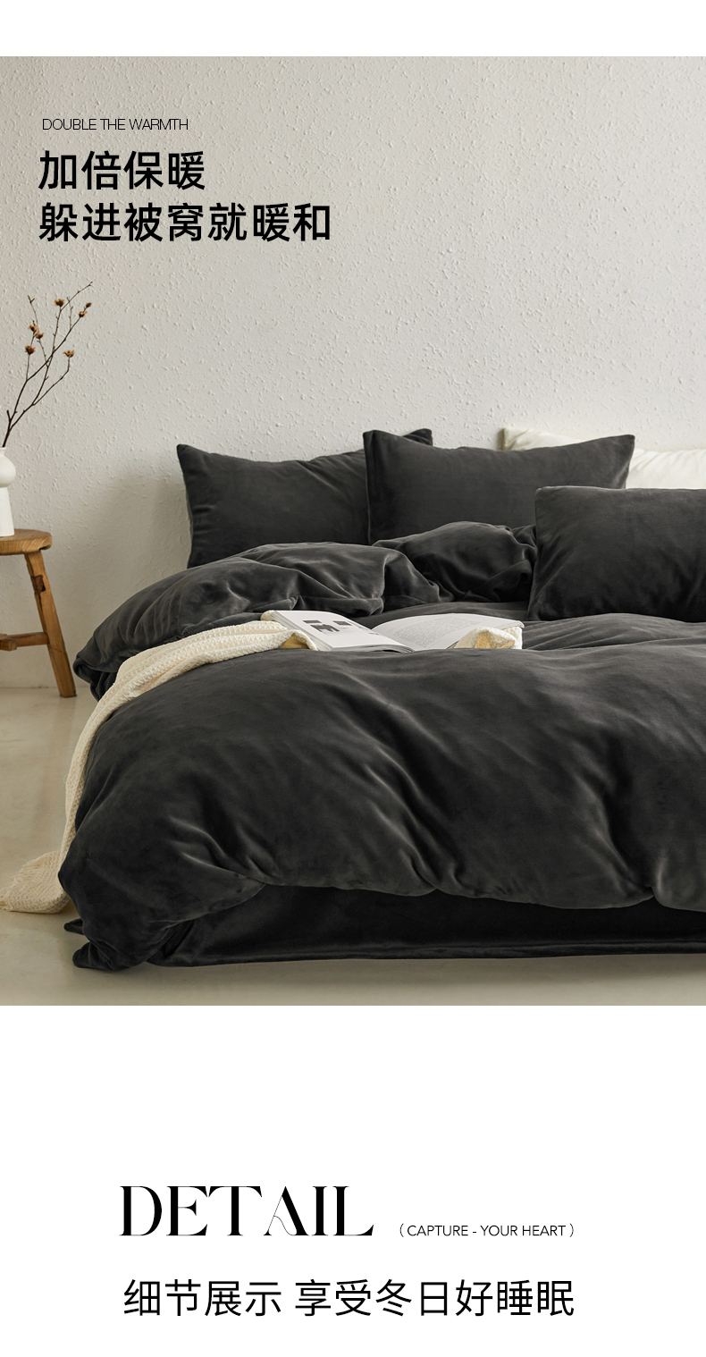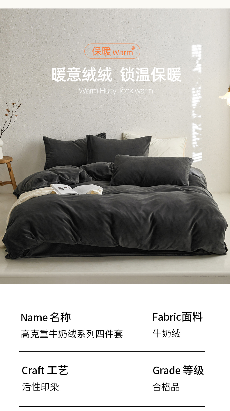商品名称:千朵森 2024新款高克重纯色牛奶绒四件套 墨灰