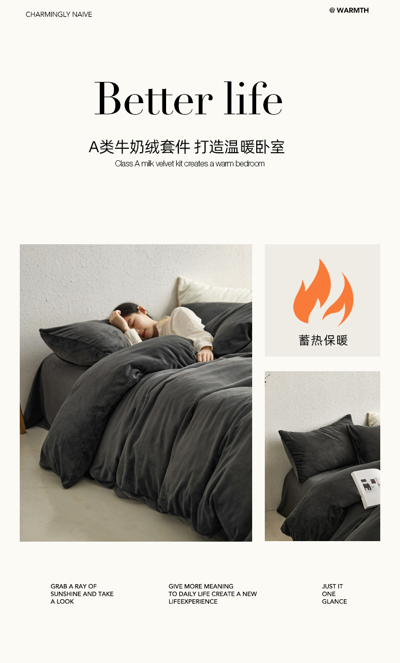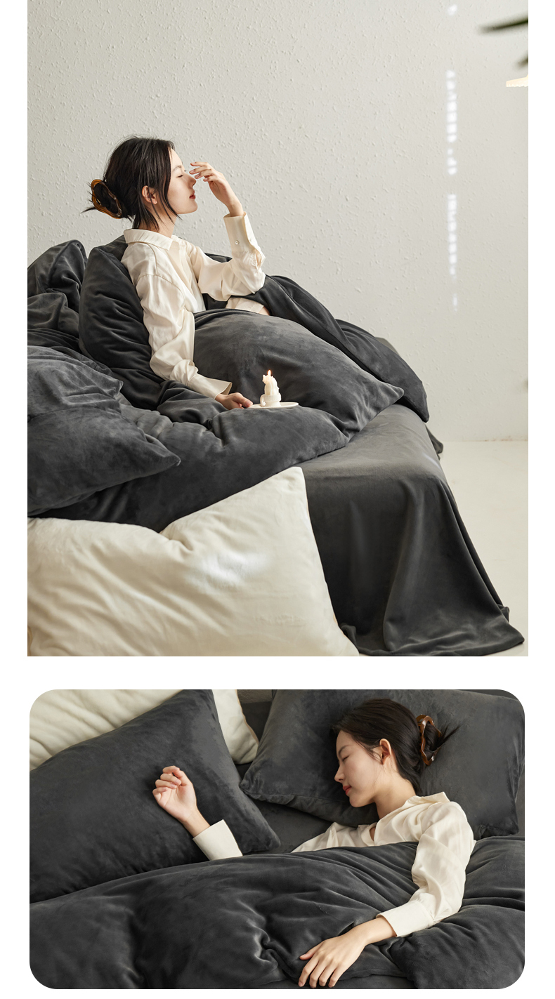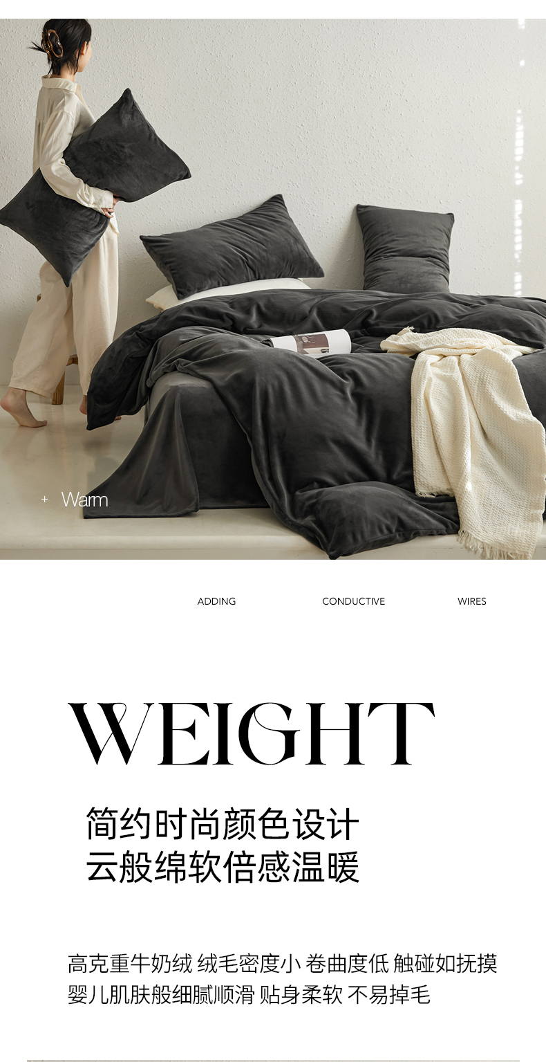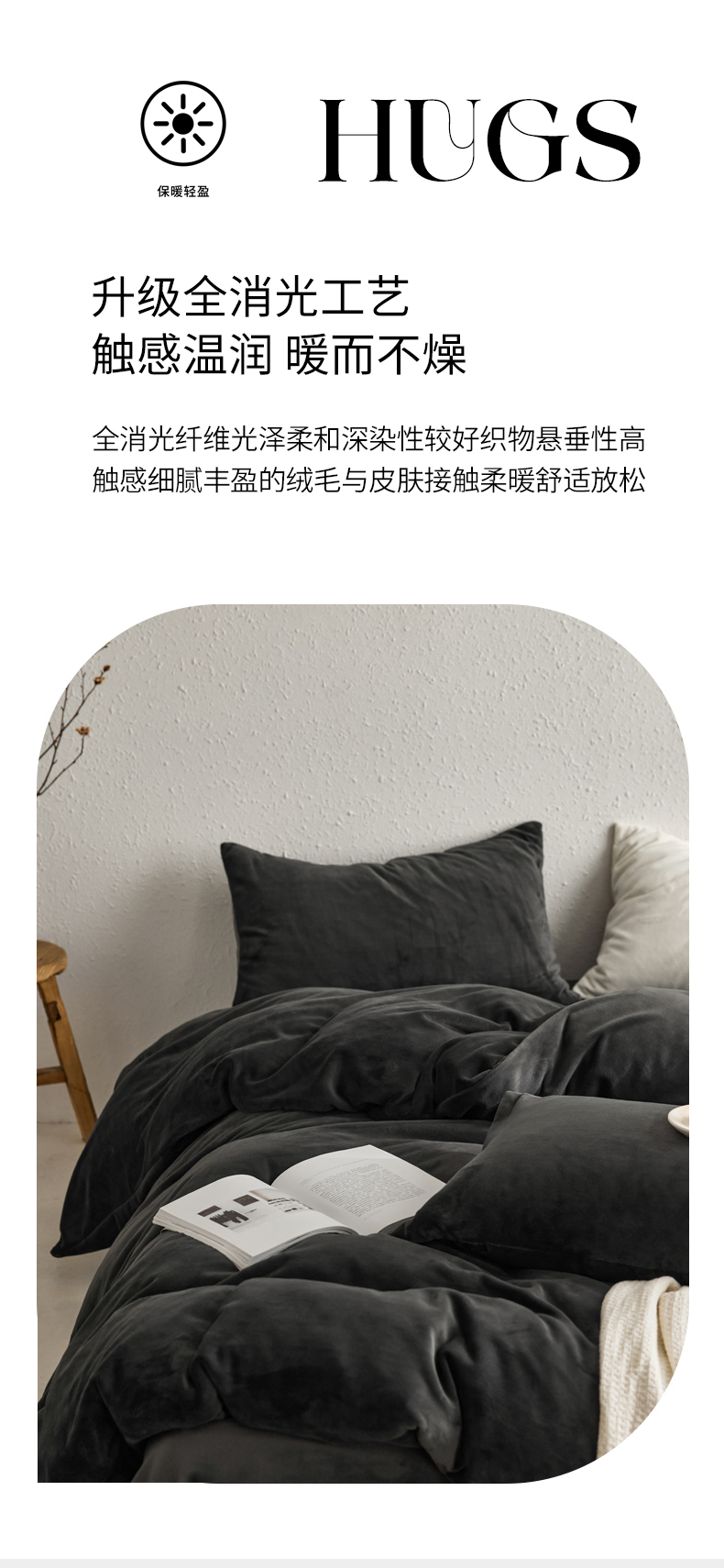 商品名称:千朵森 2024新款高克重纯色牛奶绒四件套 墨灰