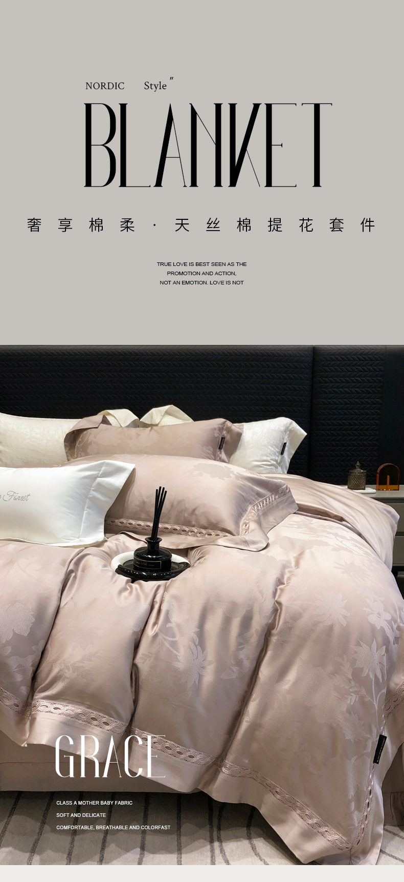 黑白森林2024款 100S支天丝棉提花四件套天丝全棉,芙拉维-裸灰,芙拉维-秋绿,圣露安-雾粉,圣露安-香槟,西西里-奶白,西西里-柔粉