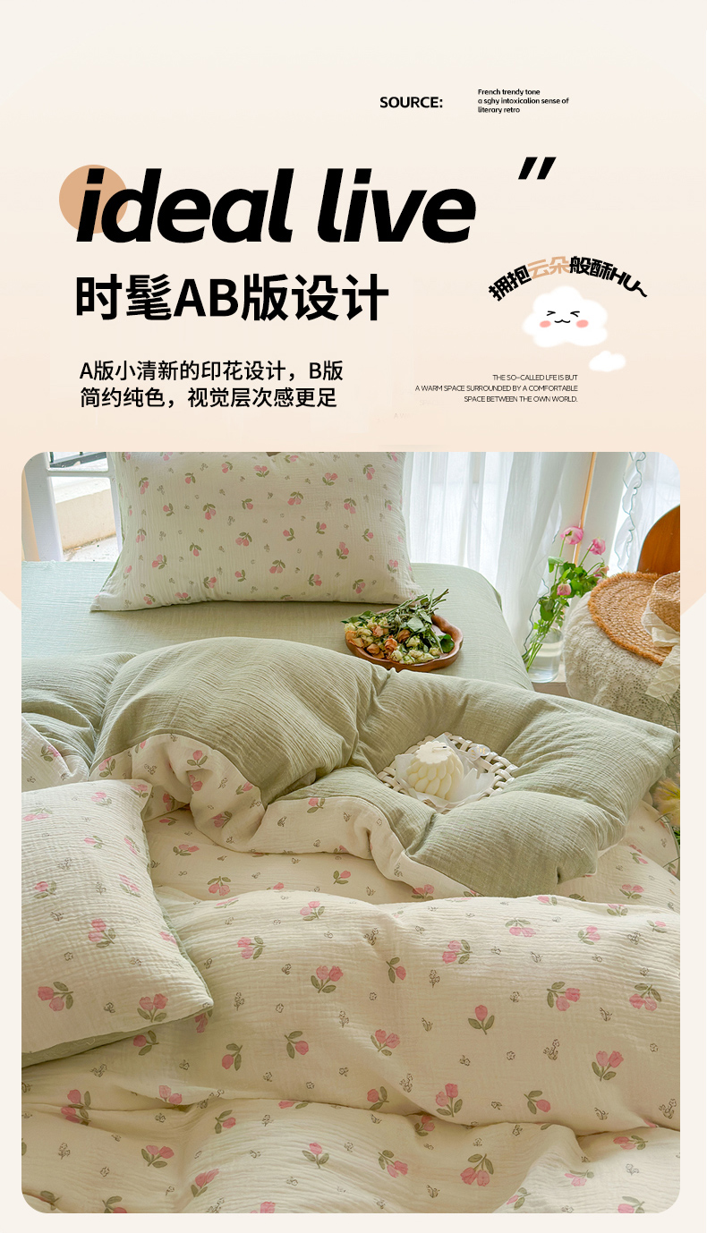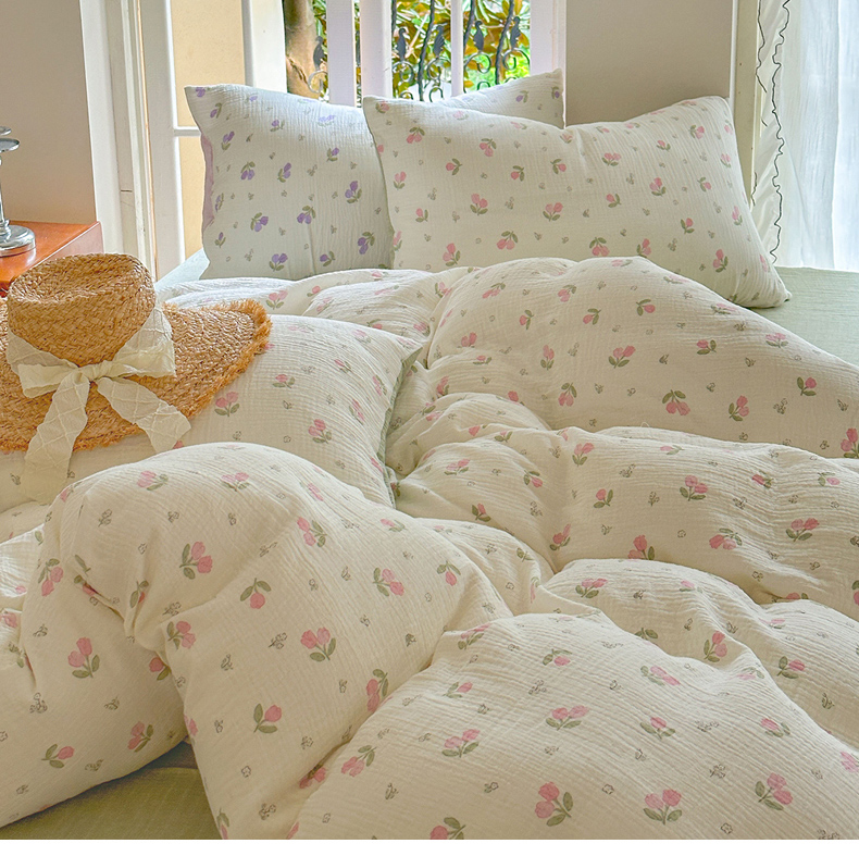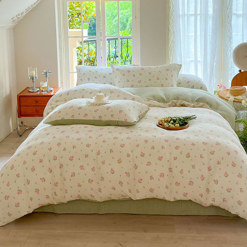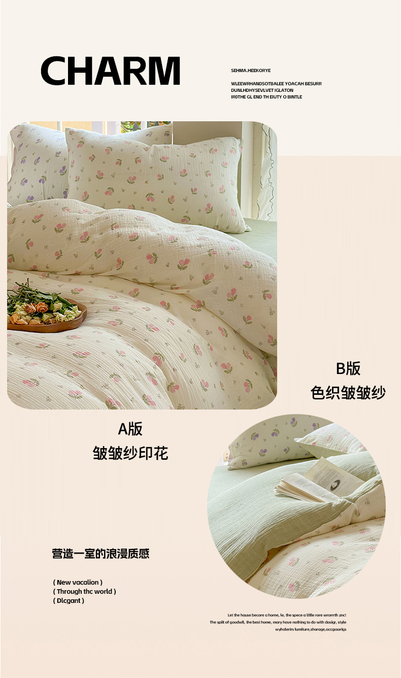 木楌 2025新款全棉A类皱皱纱印花四件套 小南国,小南国