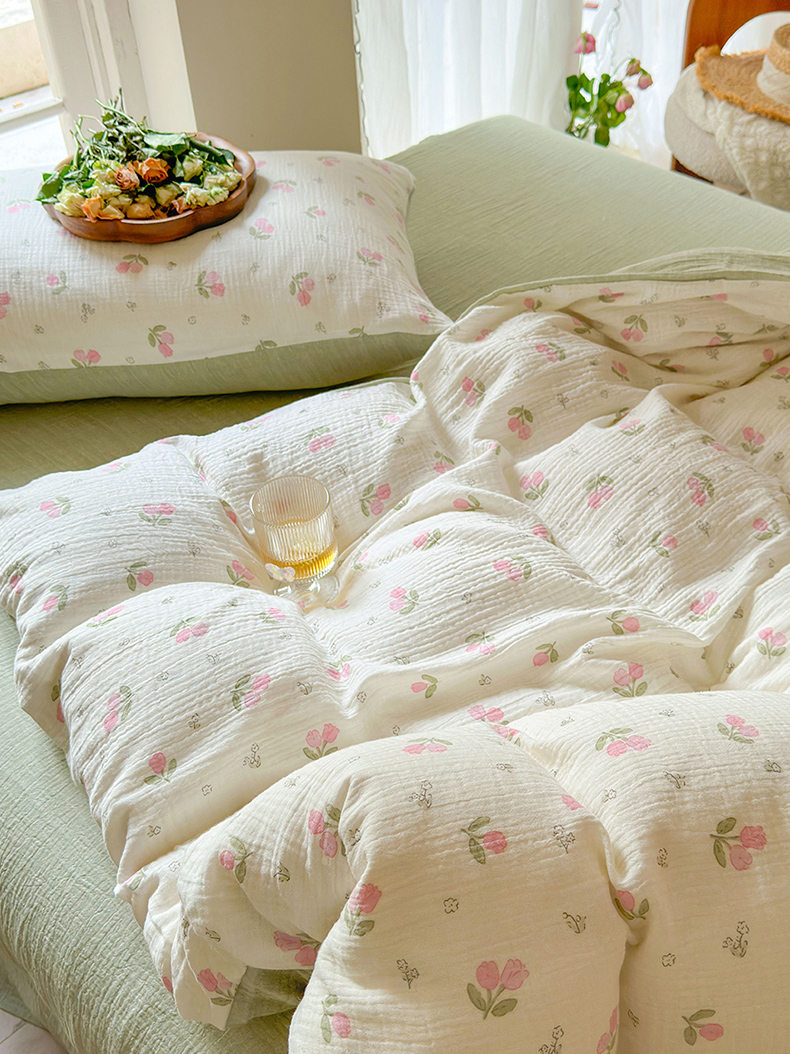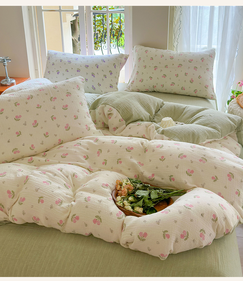 木楌 2025新款全棉A类皱皱纱印花四件套 春泥,春泥
