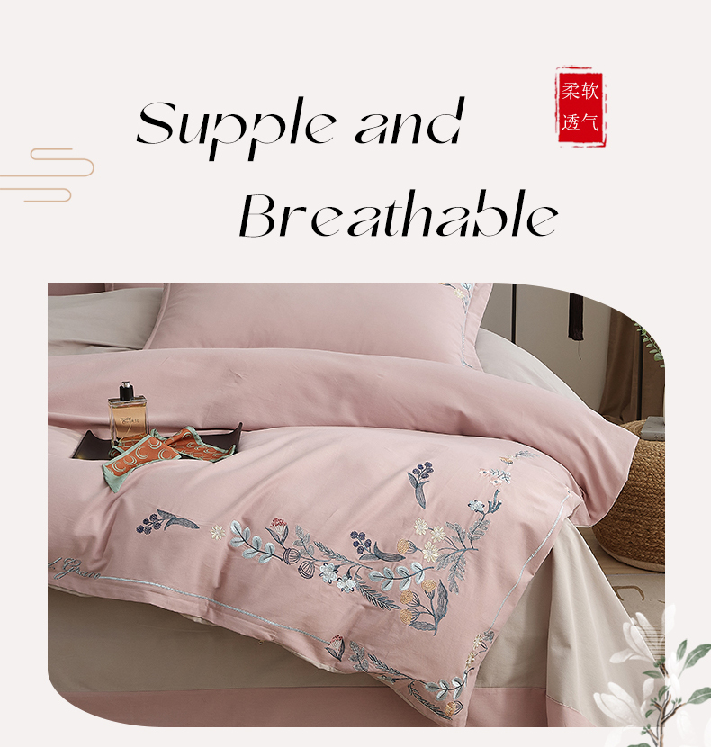 商品名称:金纱玉纺家纺 2024新款百分之百全棉新款轻奢刺绣四件套-恬静时光 恬静时光-浅紫