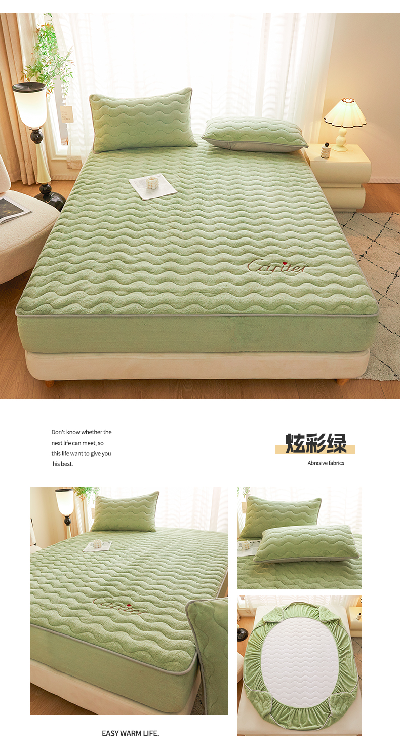 莱米家纺 2024新款北极绒夹棉加厚床笠系列 炫彩绿