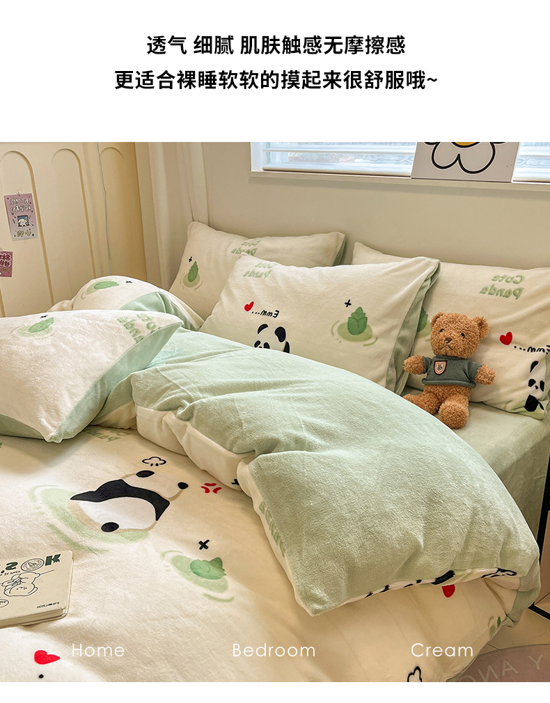 商品名称:捌月 2024新款童话镇系列高克重印花牛奶绒四件套卡通小清新加厚保暖绒套件 团子