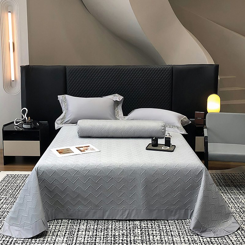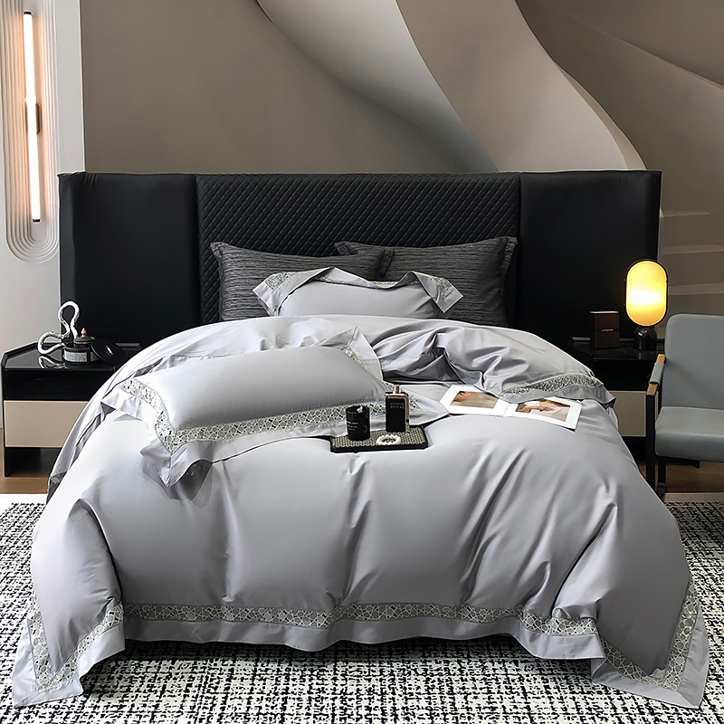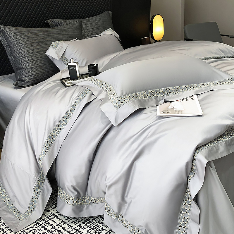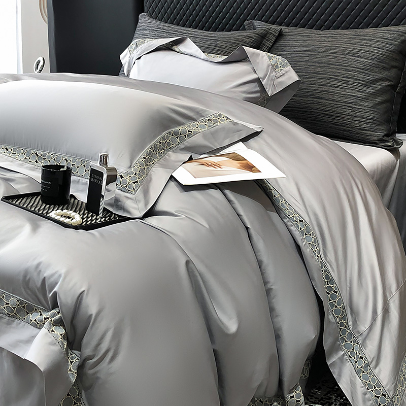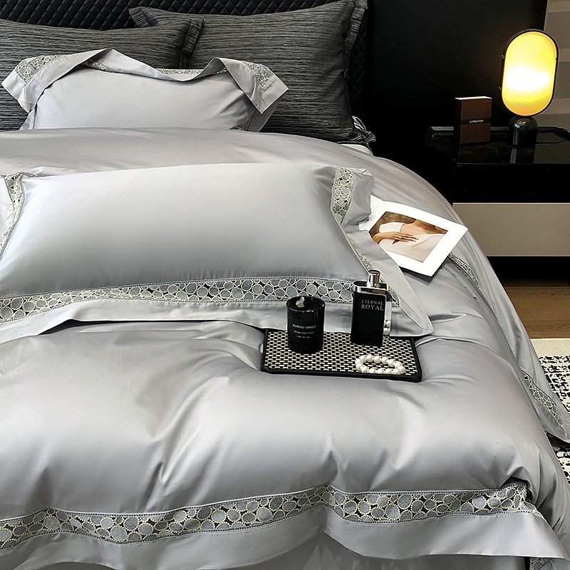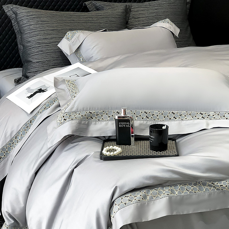 商品名称:若未家居 LOVEWE HOUSE 2025新款高工艺贡缎长绒棉全棉镂空床盖款四件套-奥黛尔 奥黛尔-气质灰