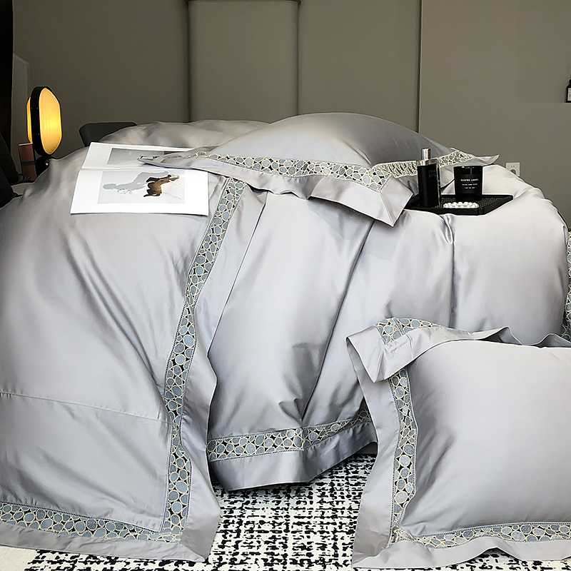 (总)若未 2023新款50支长绒棉镂空轻奢四件套-奢梵克,爱玛橘,宾利蓝,粉豆沙,贵族白,贵族红,气质灰,山灰色,天蓝