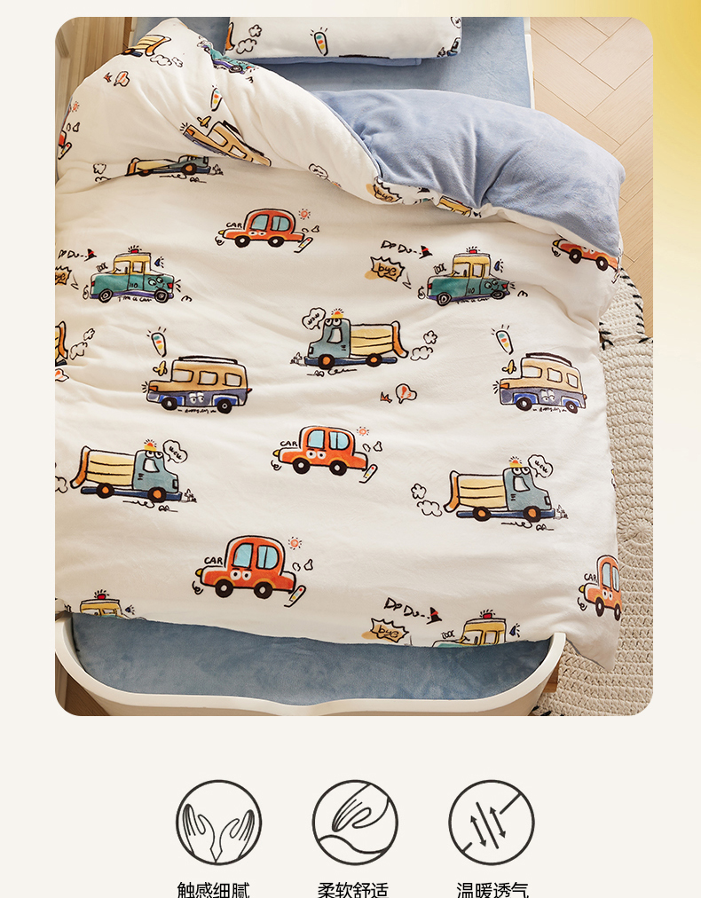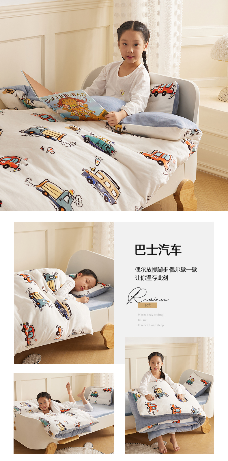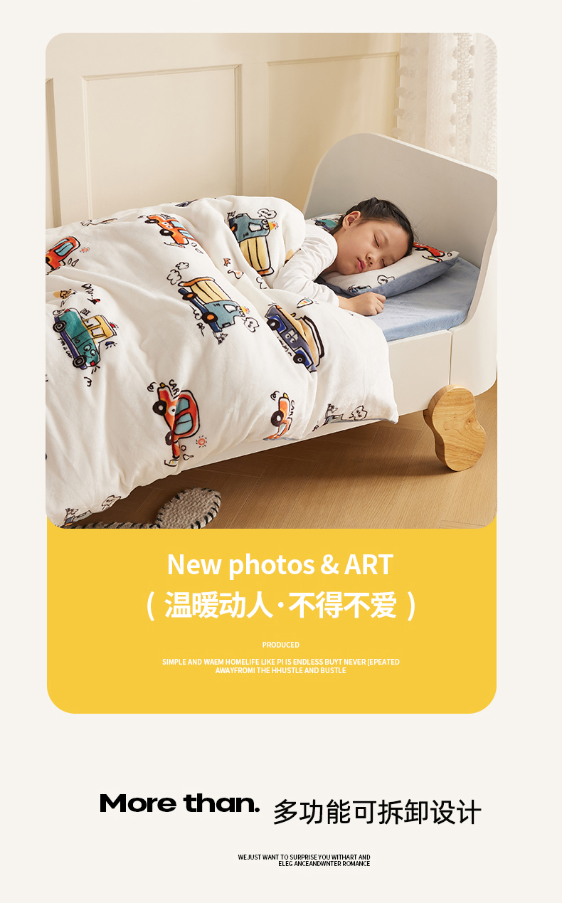 • 91家纺网 家纺一手货源 找家纺 艾佳宝贝 2024新款牛奶绒多功能儿童盖毯式可脱卸被子被套被芯 巴士汽车