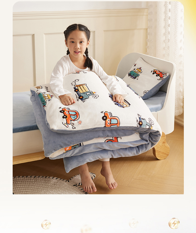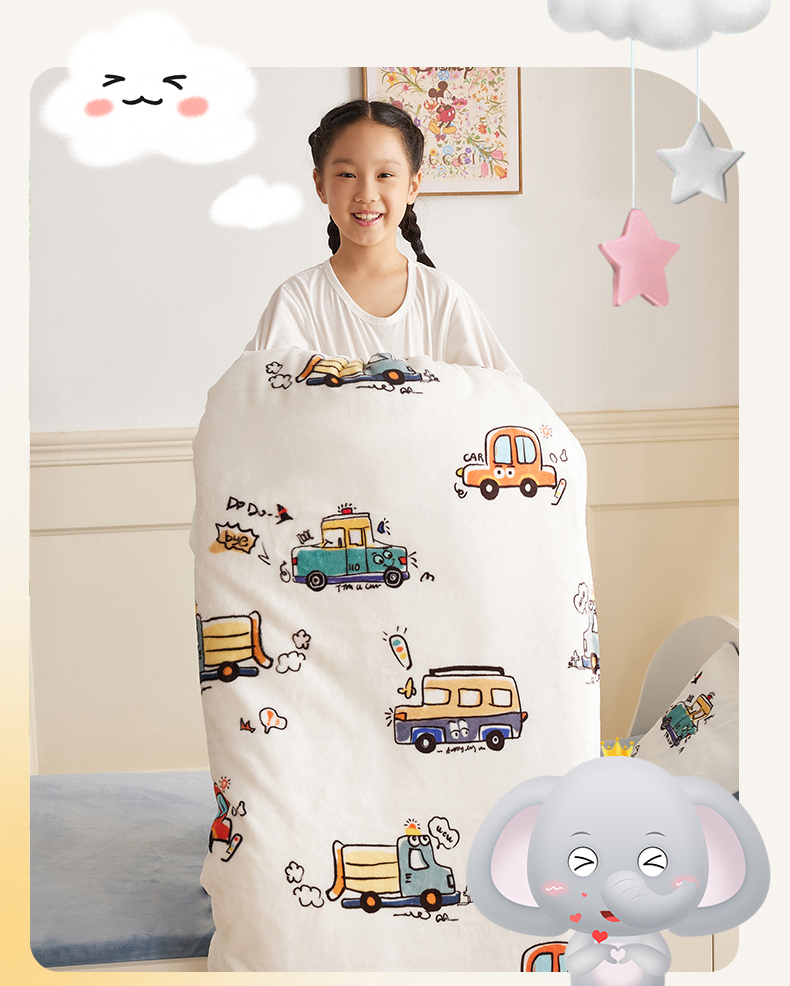 艾佳宝贝 2024新款牛奶绒多功能儿童盖毯式可脱卸被子被套被芯 巴士汽车