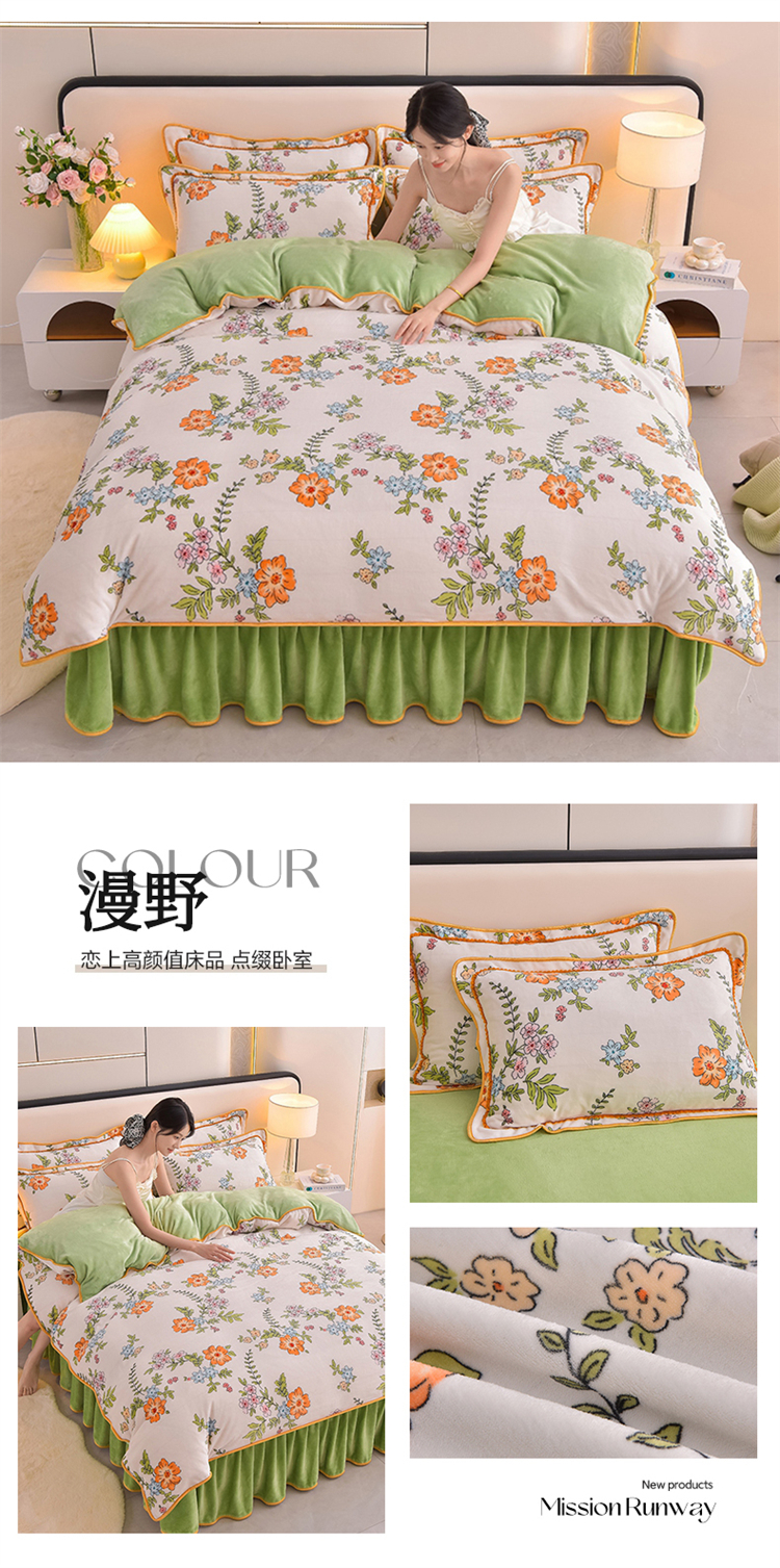 商品名称:富之航 2024新款8-9斤高克重印花牛奶绒四件套保暖绒套件直播爆款漫野