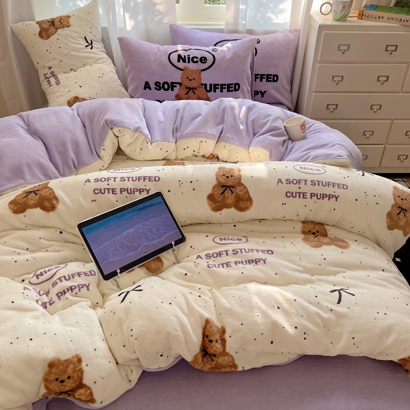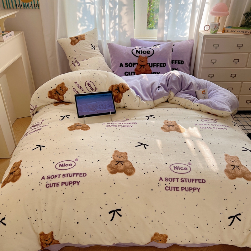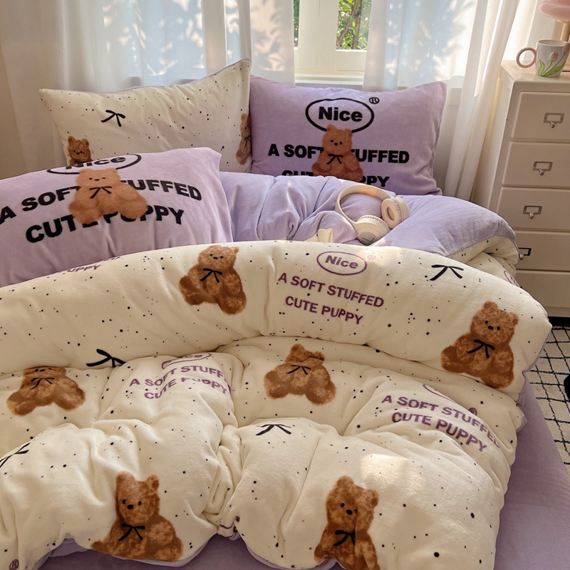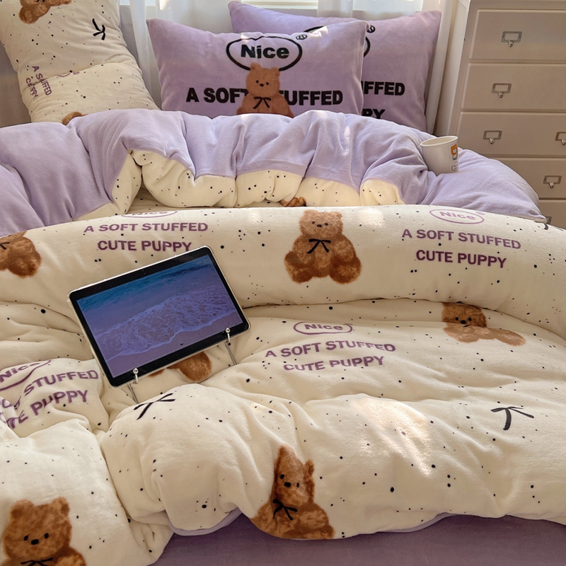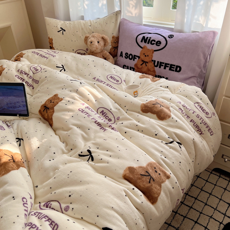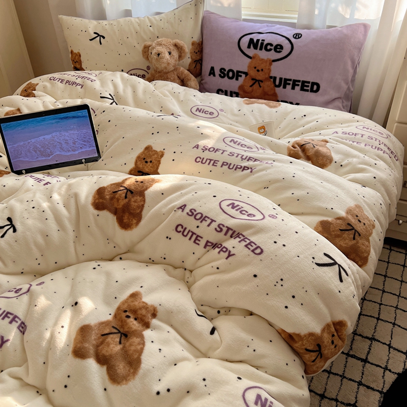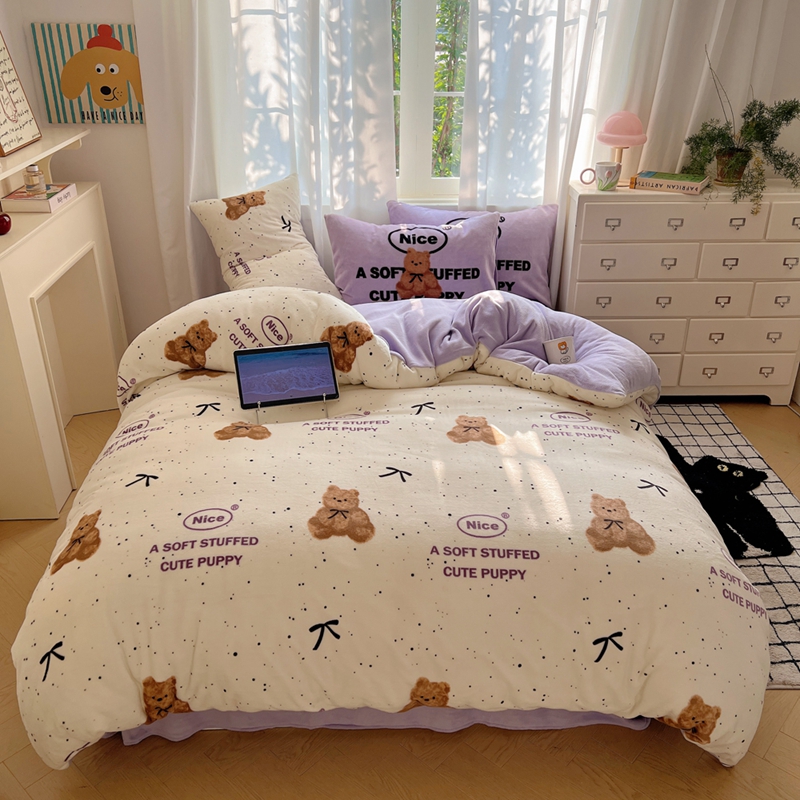 商品名称:桃喜 2024秋冬新品卡通混搭牛奶绒系列四件套 点点熊