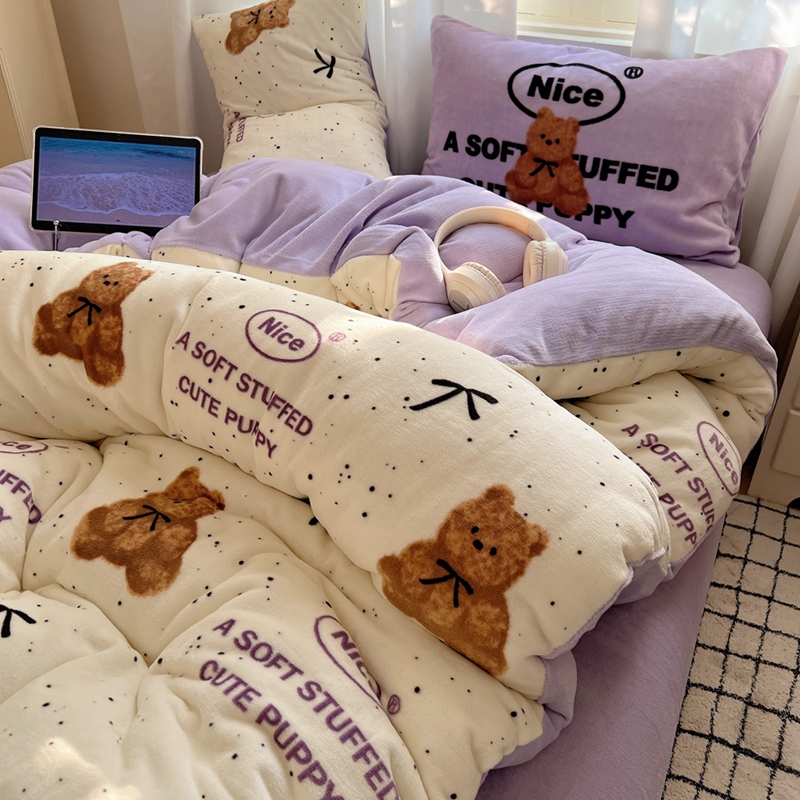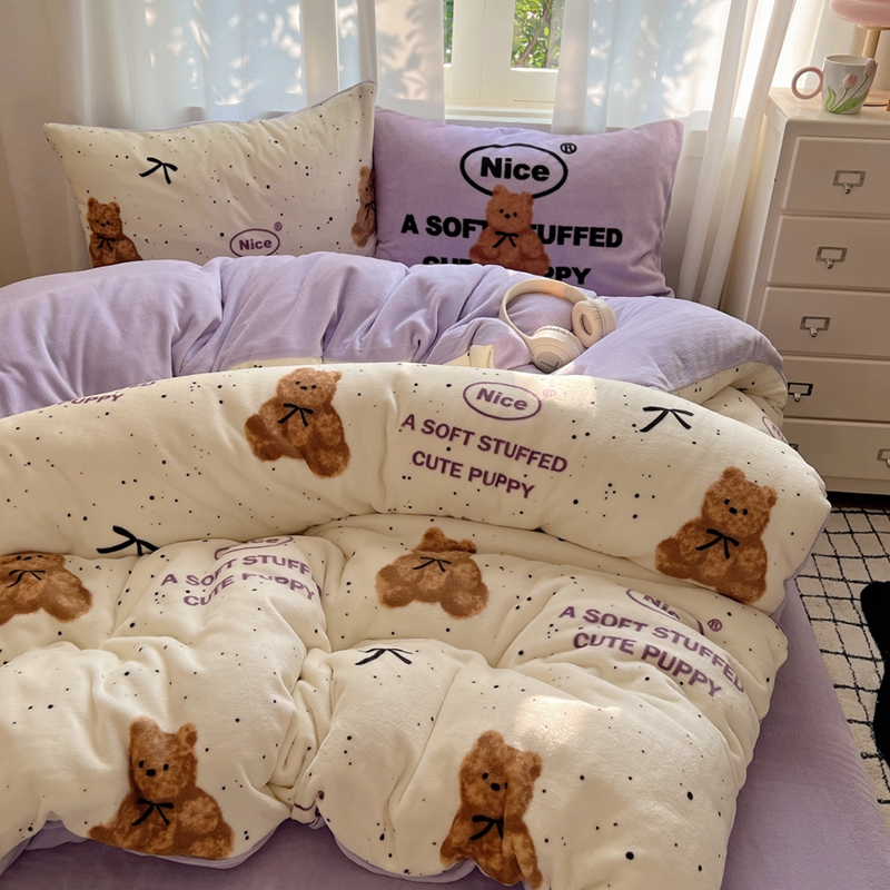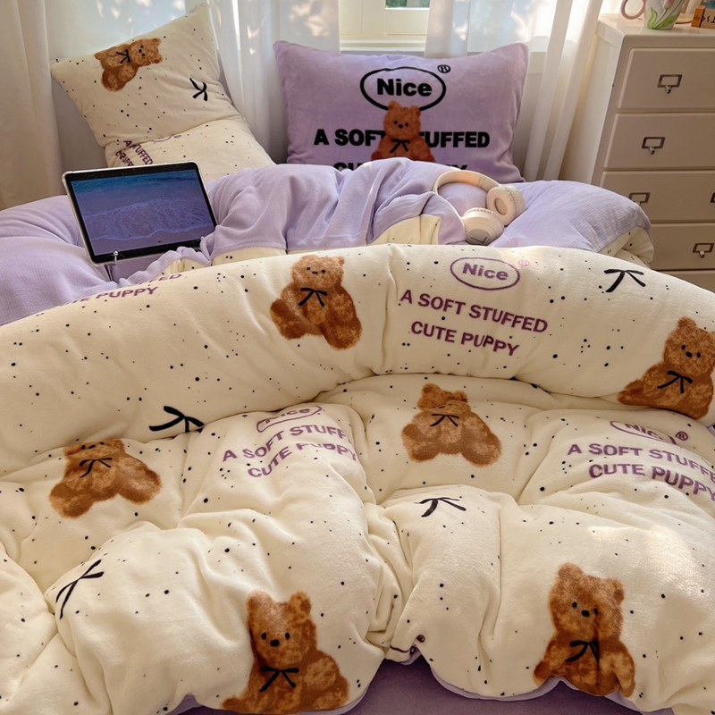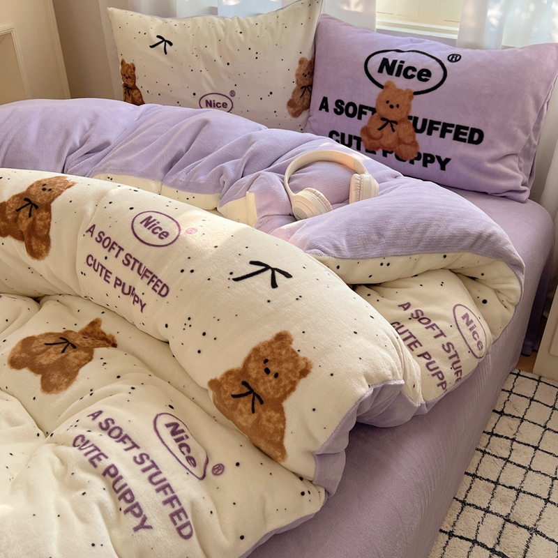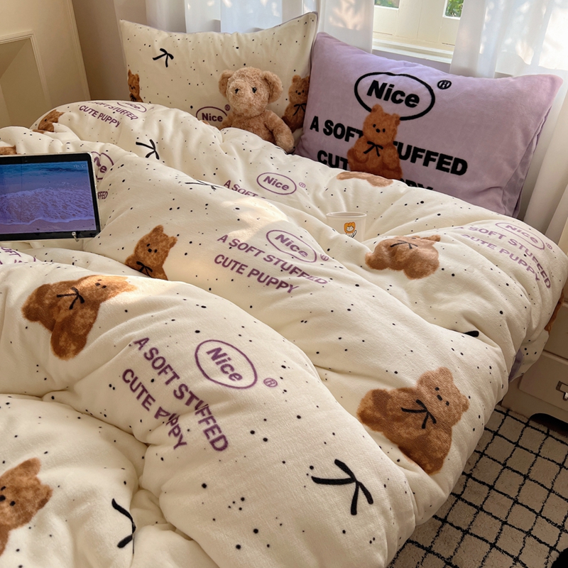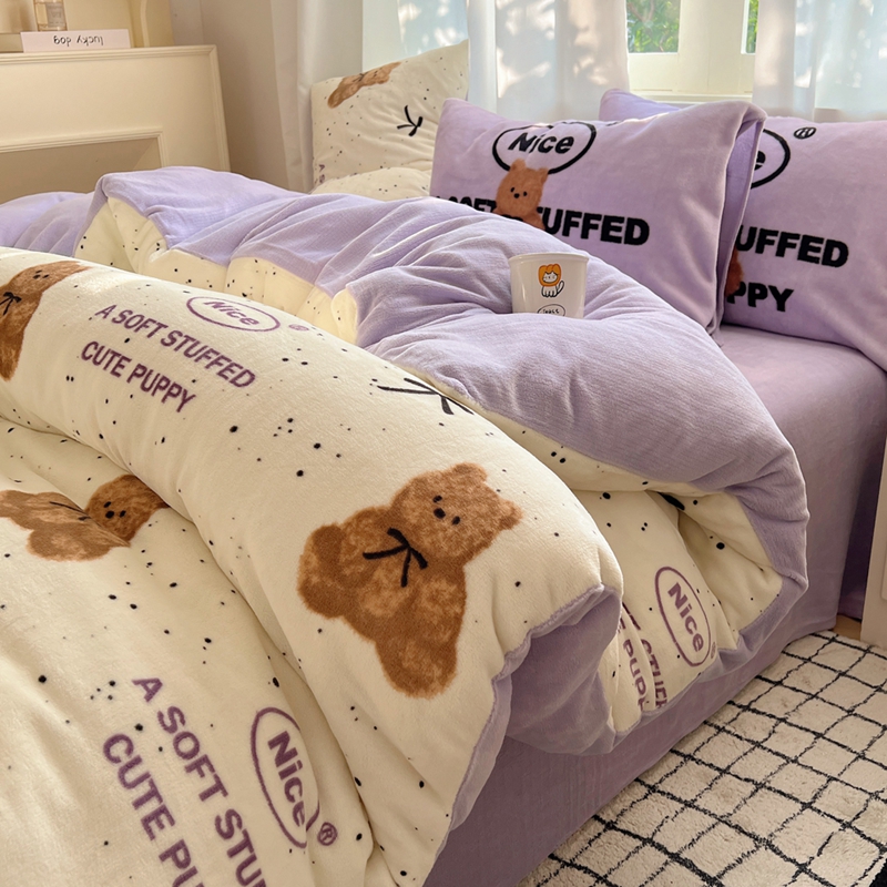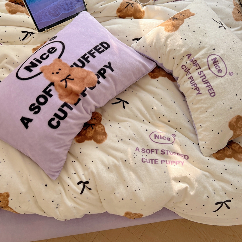 商品名称:桃喜 2024秋冬新品卡通混搭牛奶绒系列四件套 点点熊