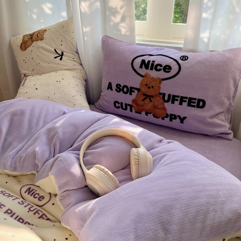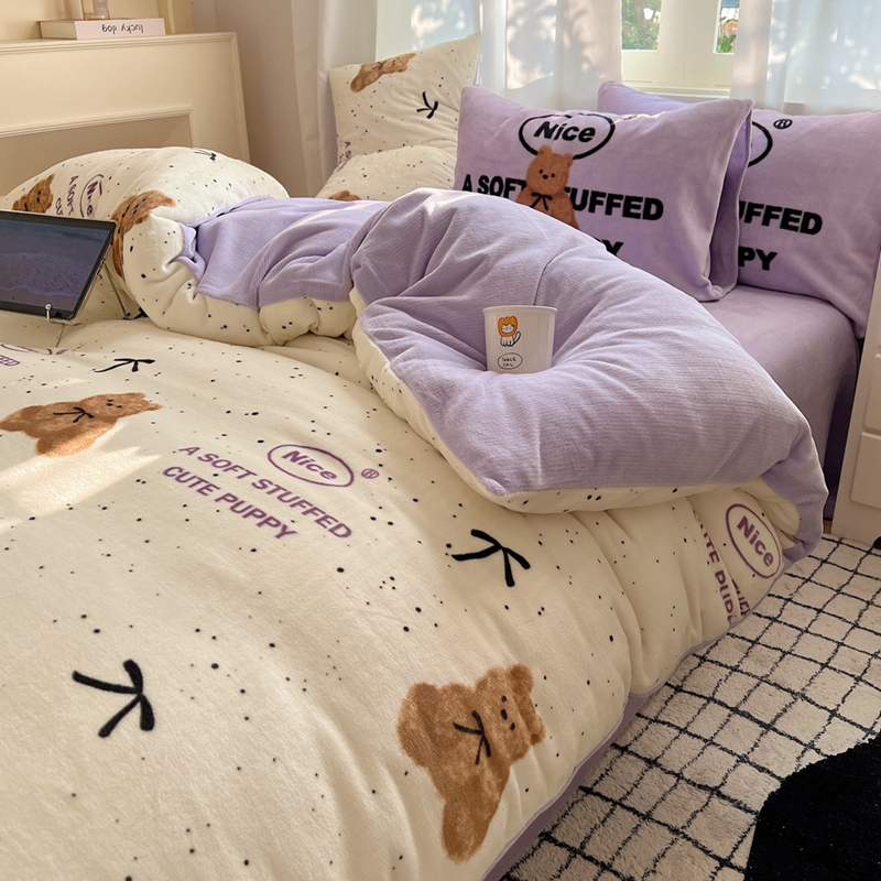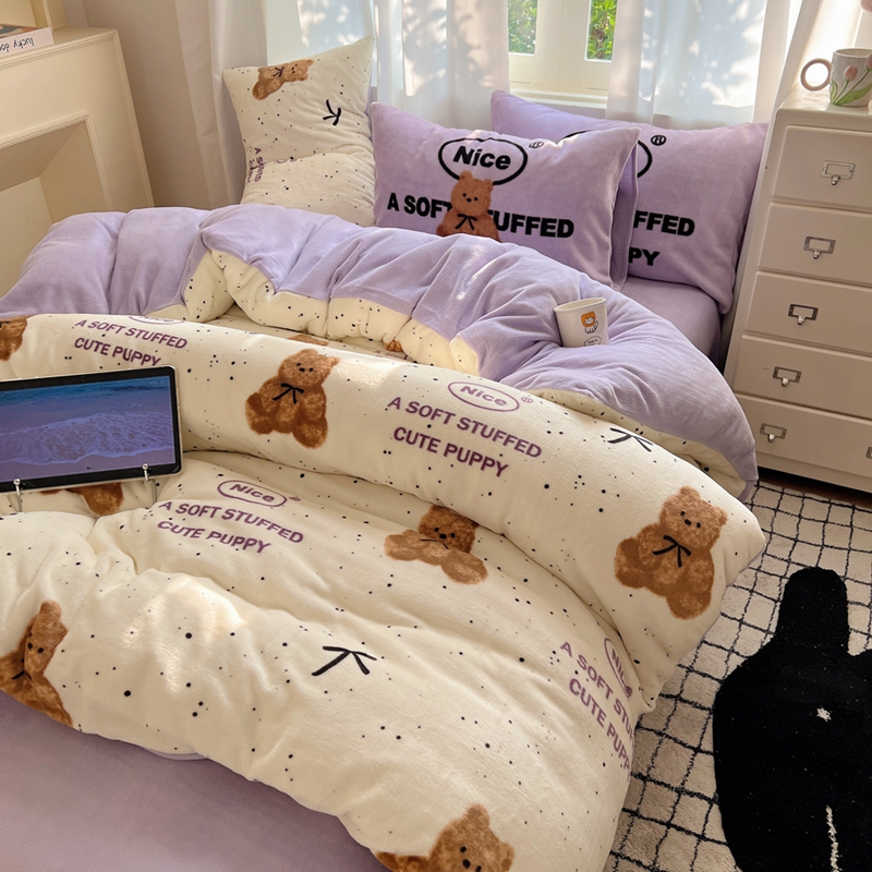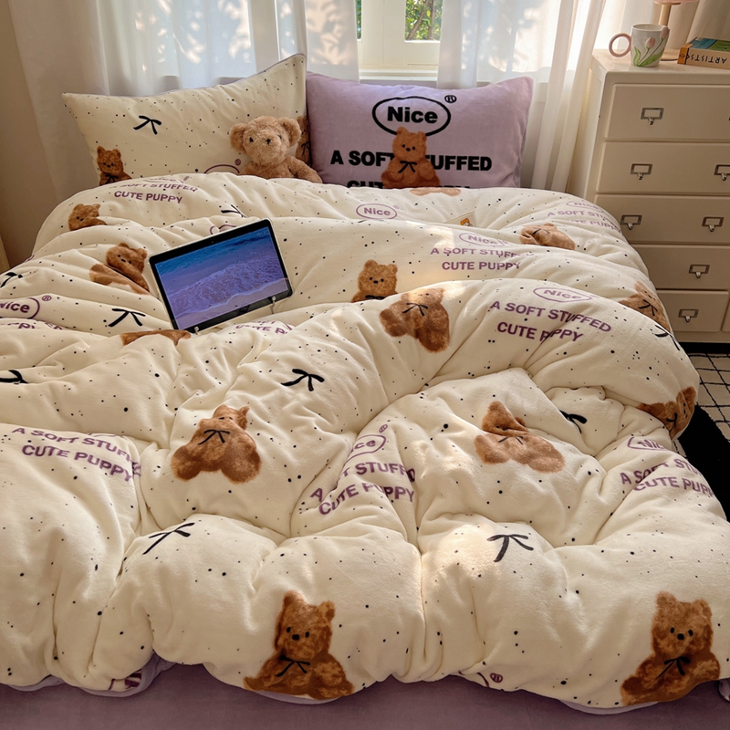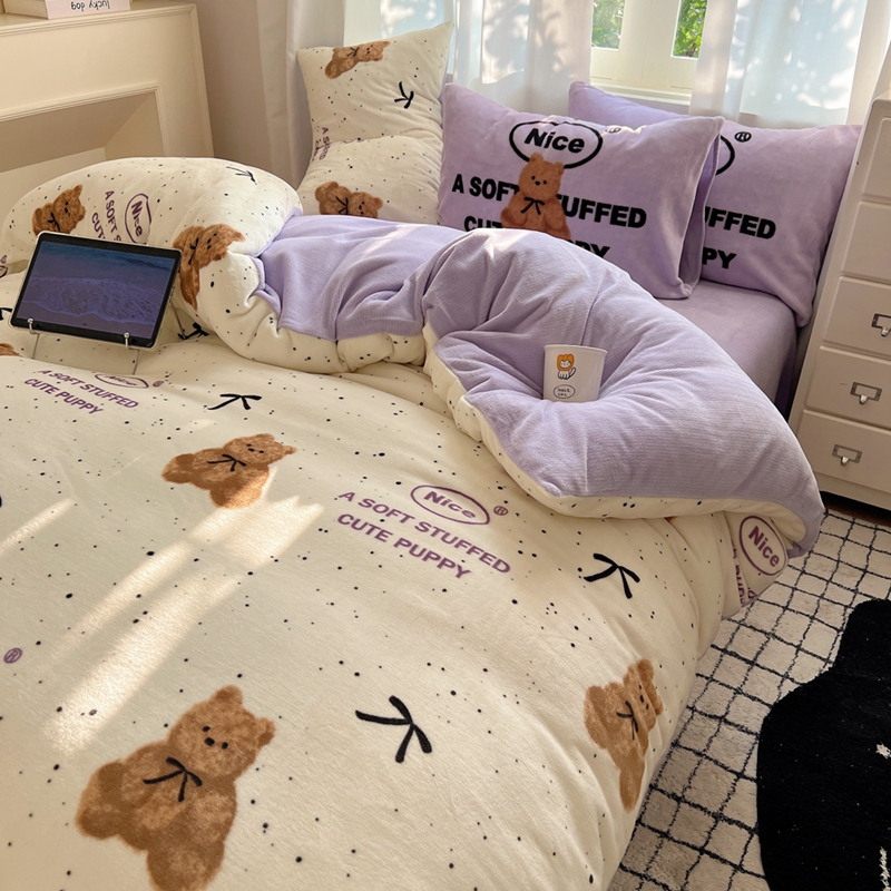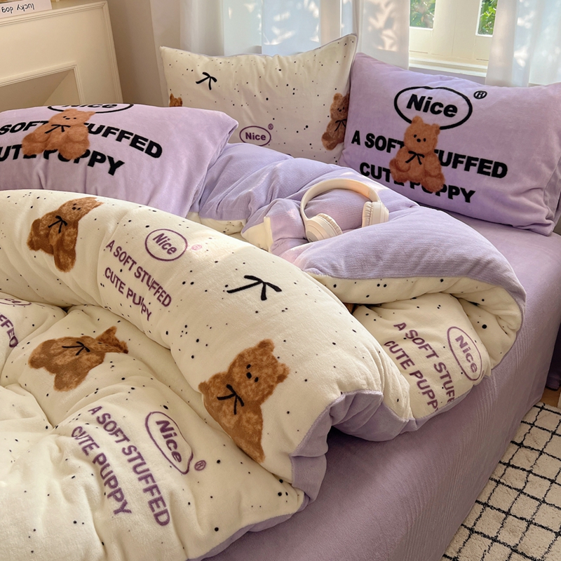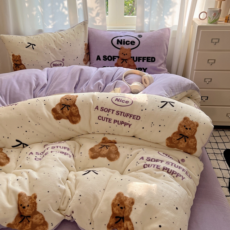 商品名称:桃喜 2024秋冬新品卡通混搭牛奶绒系列四件套 点点熊