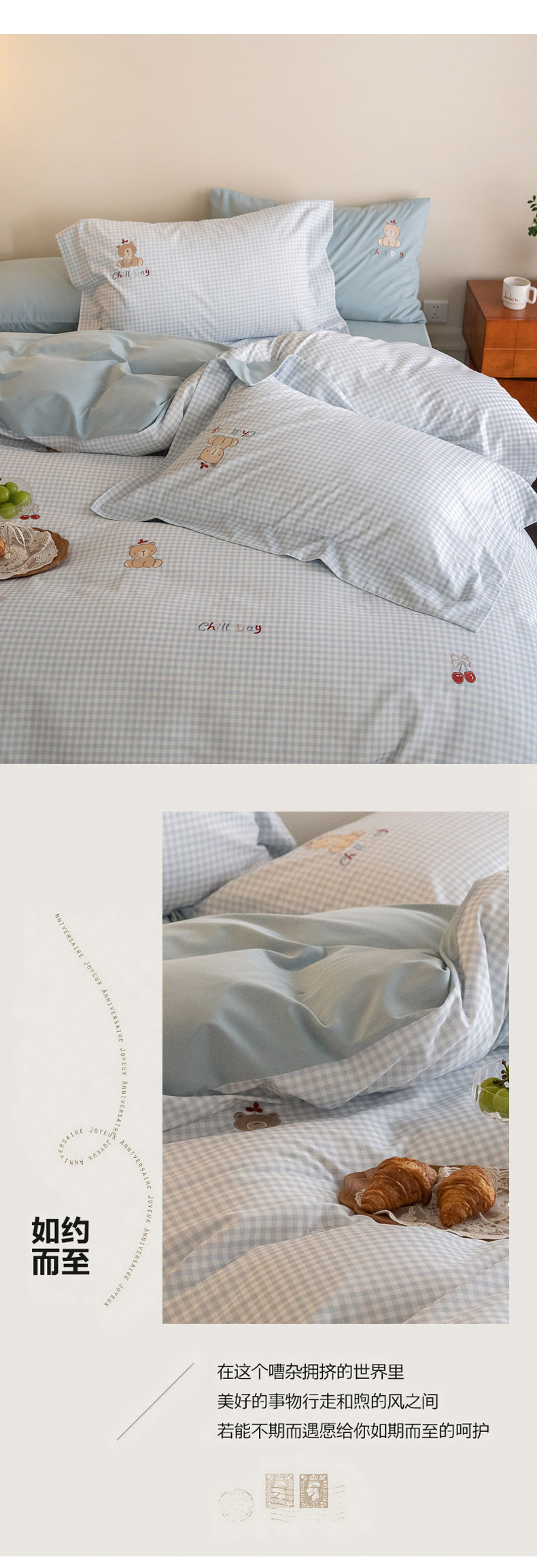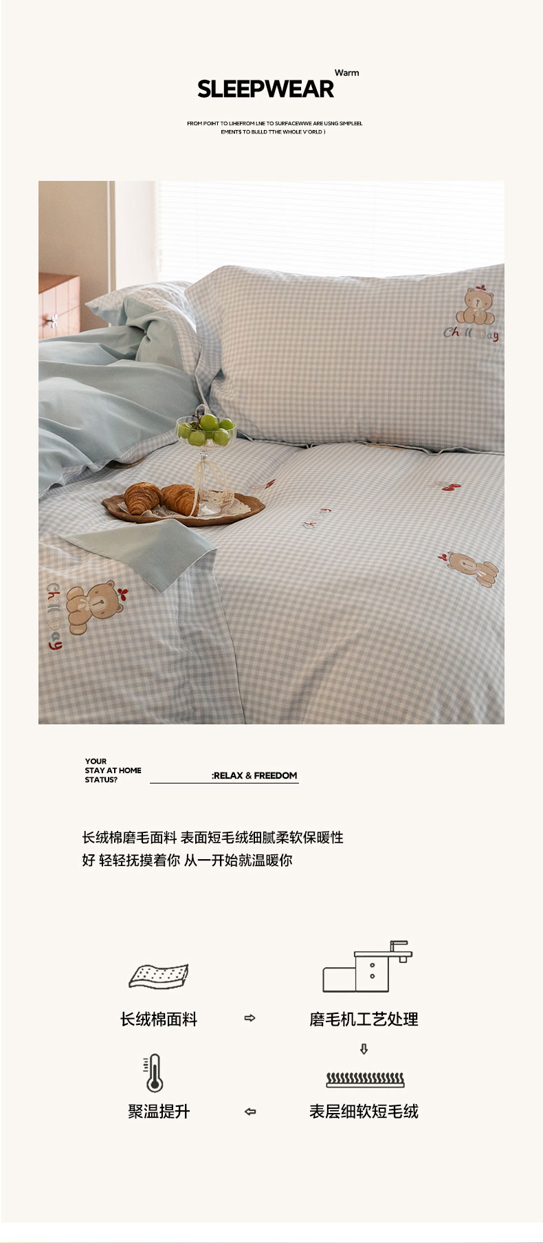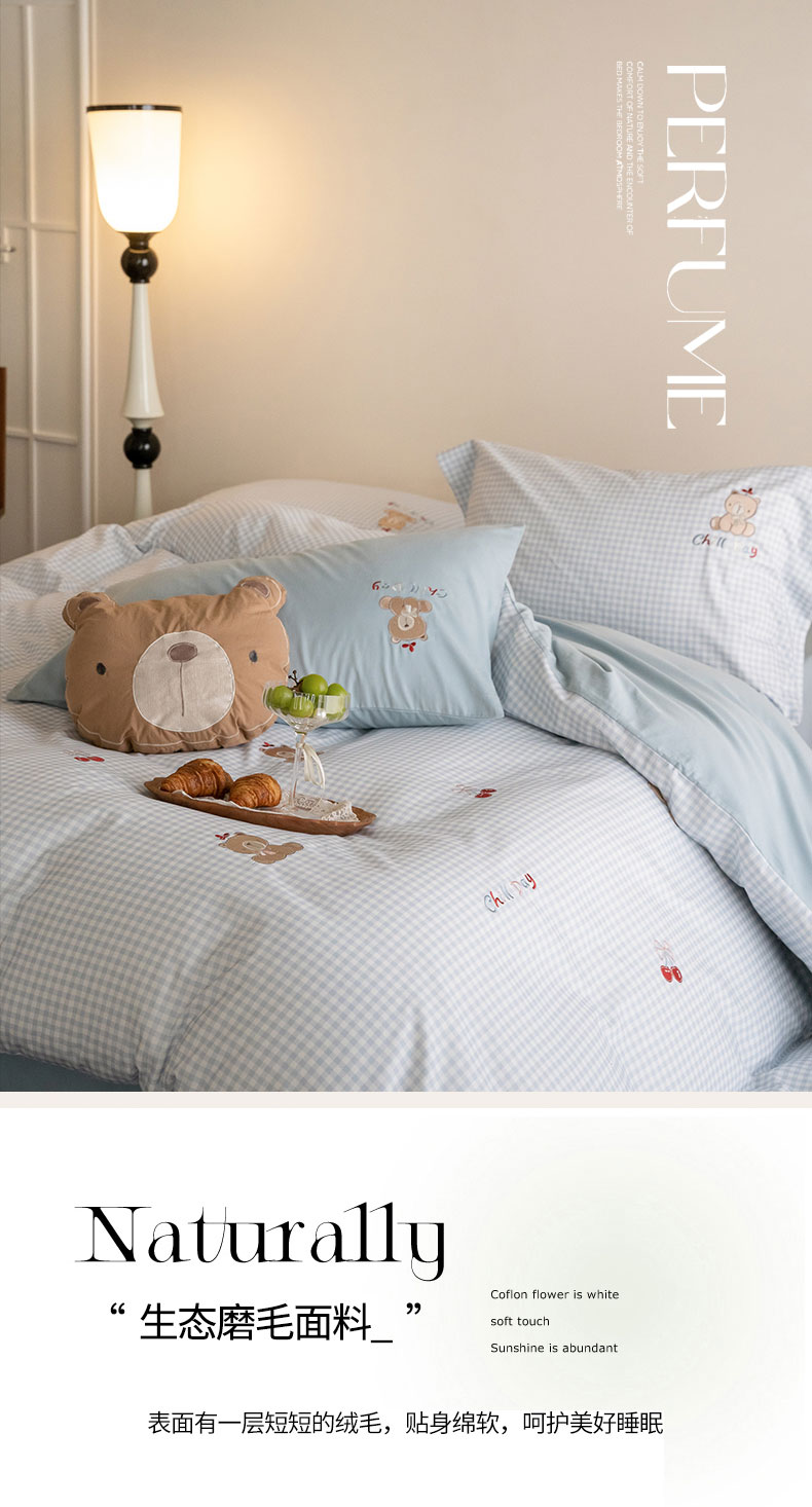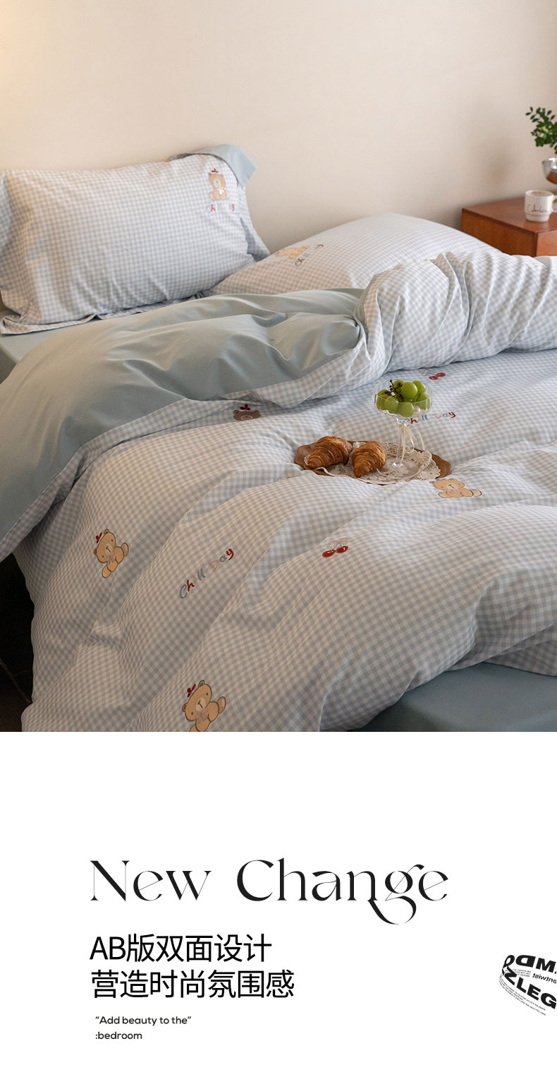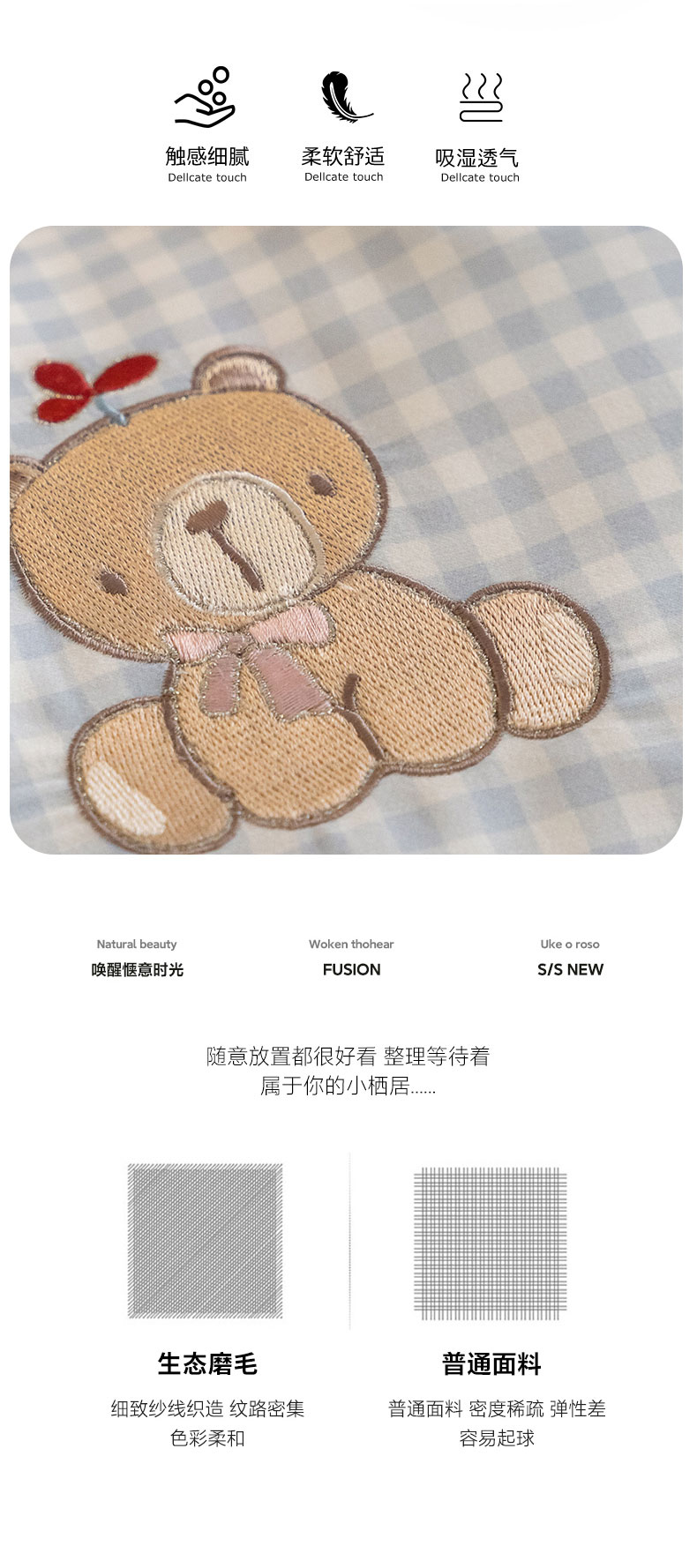 当前位置: 91家纺网 > 商品网购 > 床品套件 > 四件套 > 普通磨毛四件套 > FORTWO家纺原创设计(FOR TWO家纺) 2024新款50S格子磨毛刺绣四件套 小饼熊