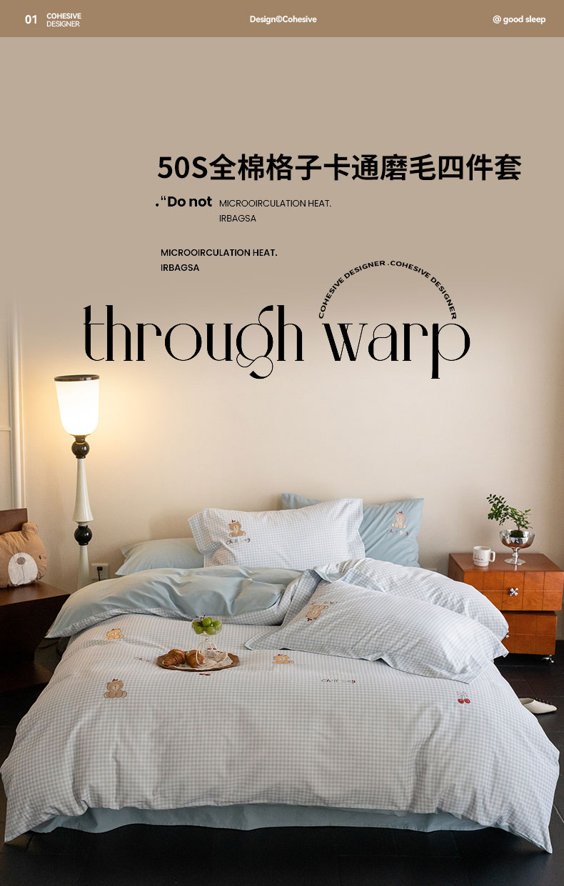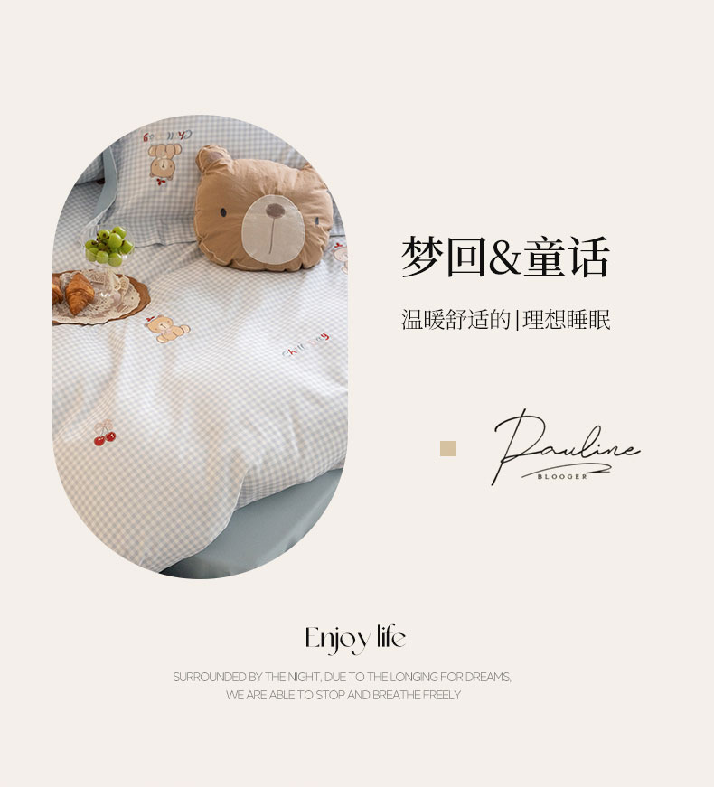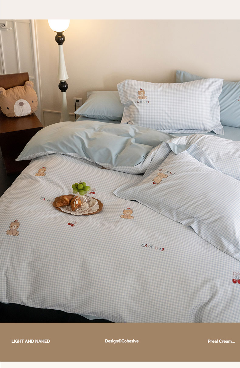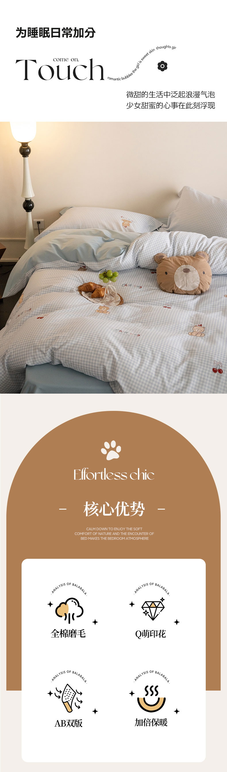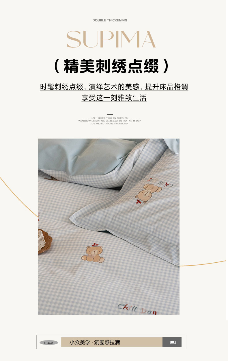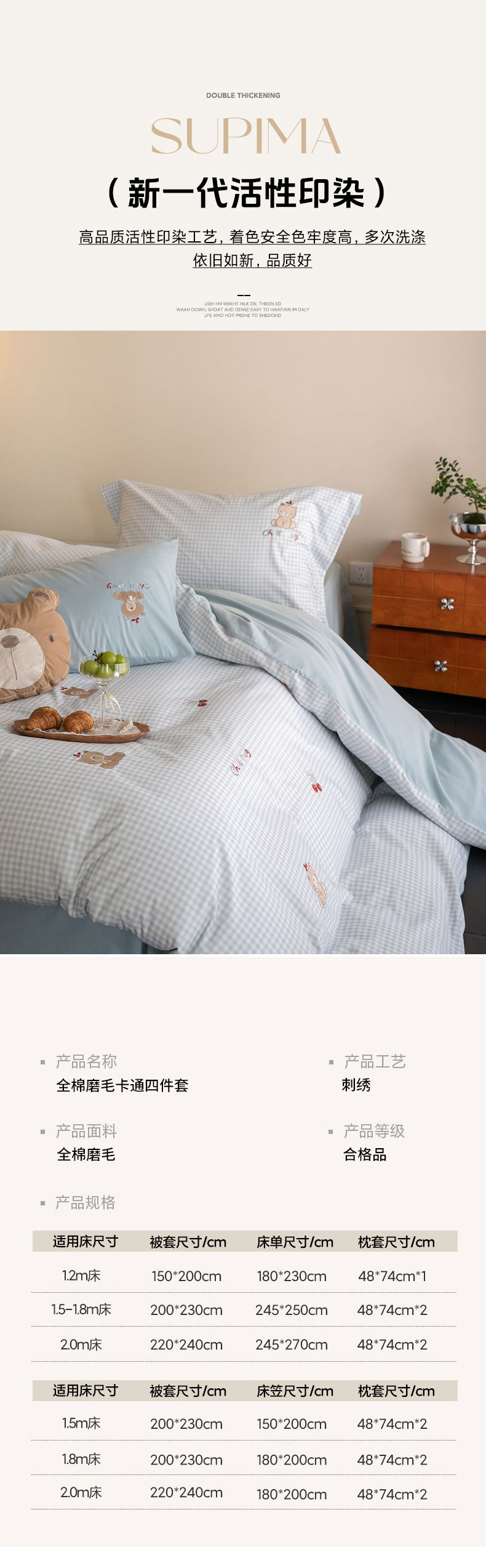 当前位置: 91家纺网 > 商品网购 > 床品套件 > 四件套 > 普通磨毛四件套 > FORTWO家纺原创设计(FOR TWO家纺) 2024新款50S格子磨毛刺绣四件套 小饼熊