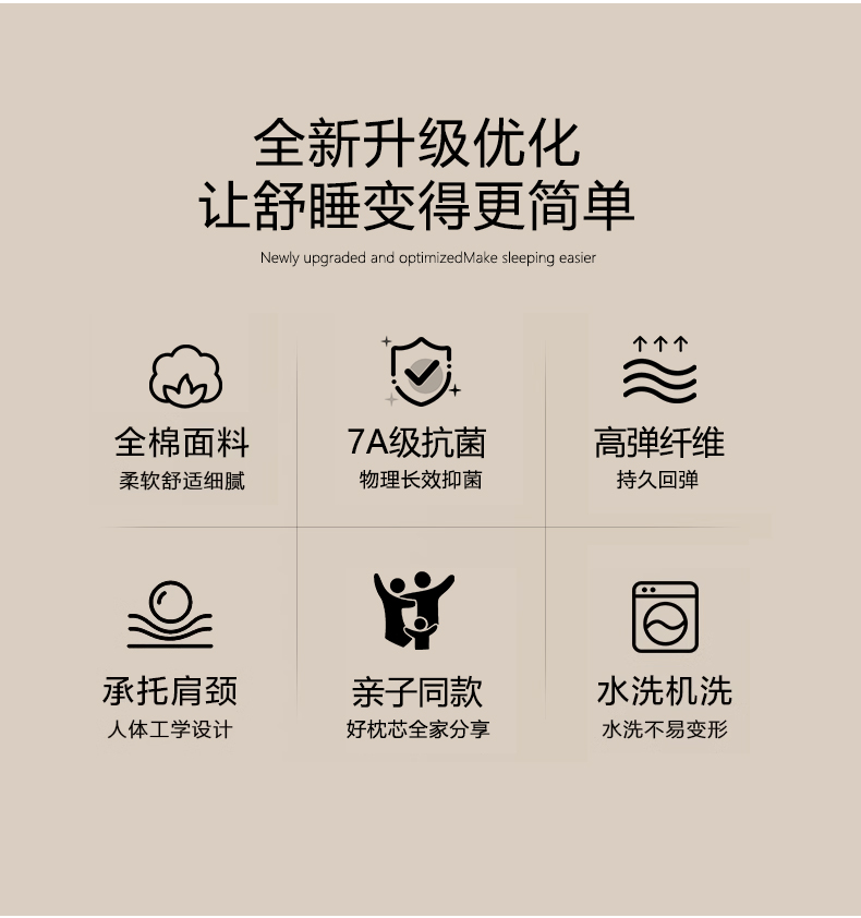 商品名称:(总)乐可 2024新款A类本色全棉抗菌枕 枕头枕芯