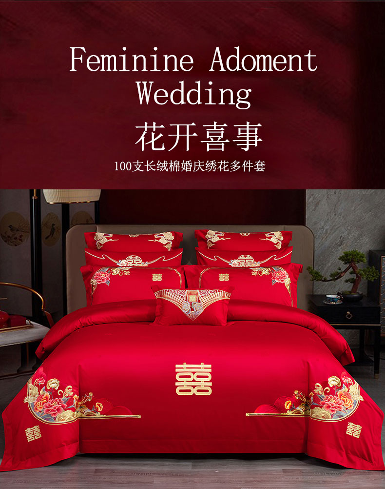 当前位置: 91家纺网 > 商品网购 > 床品套件 > 四件套 > 婚庆四件套 > 蒂爵 全棉纯棉长绒棉时尚绣花婚庆四件套多件套 花开喜事