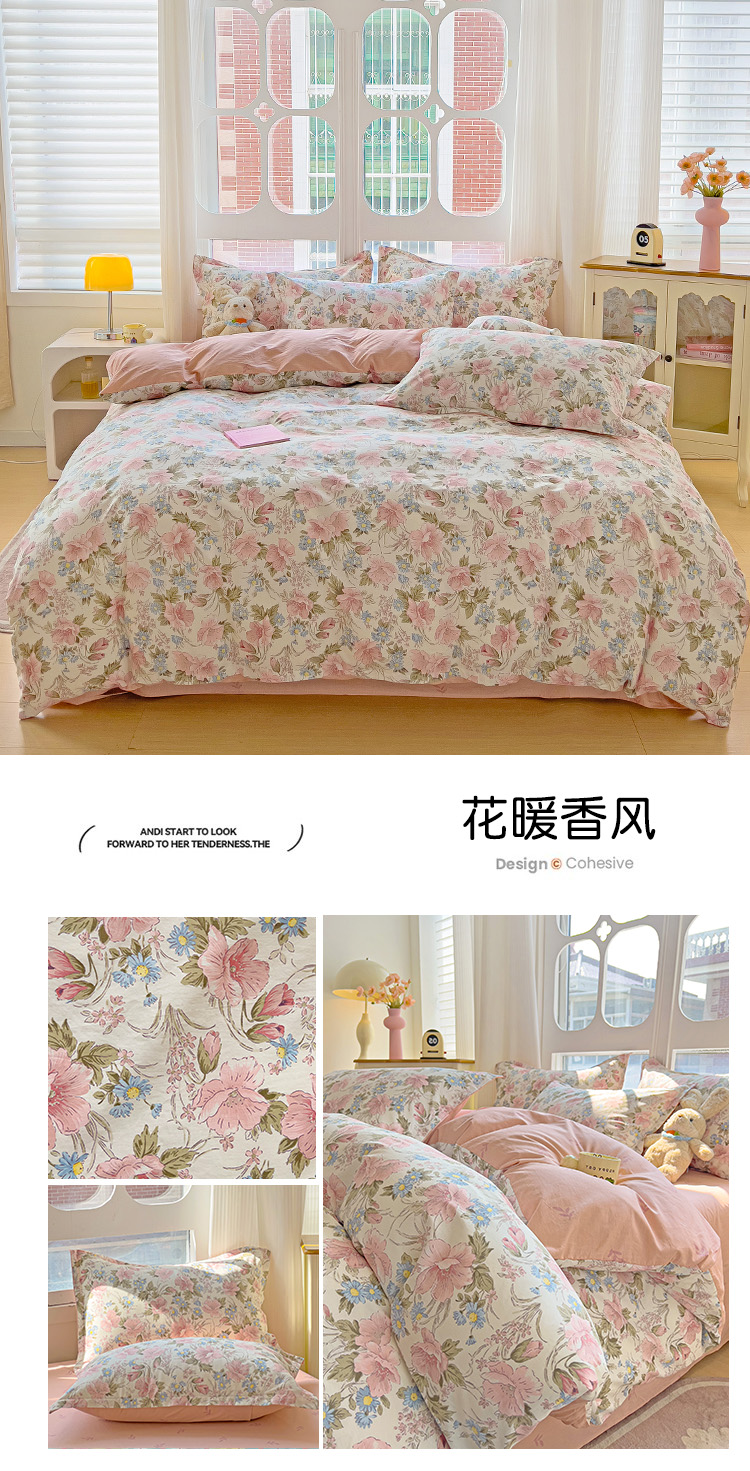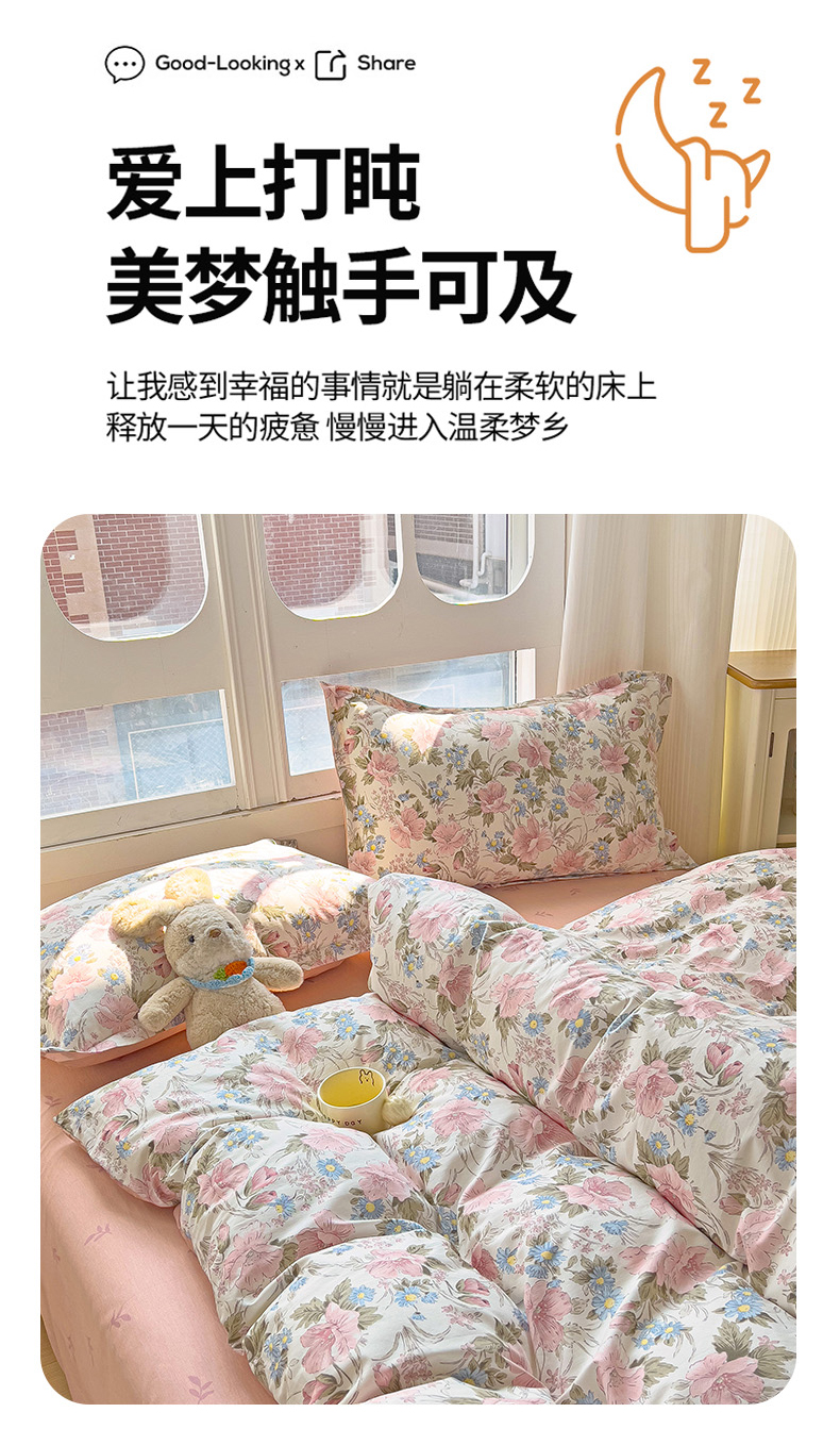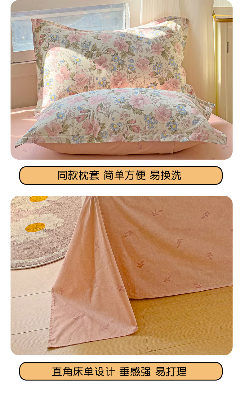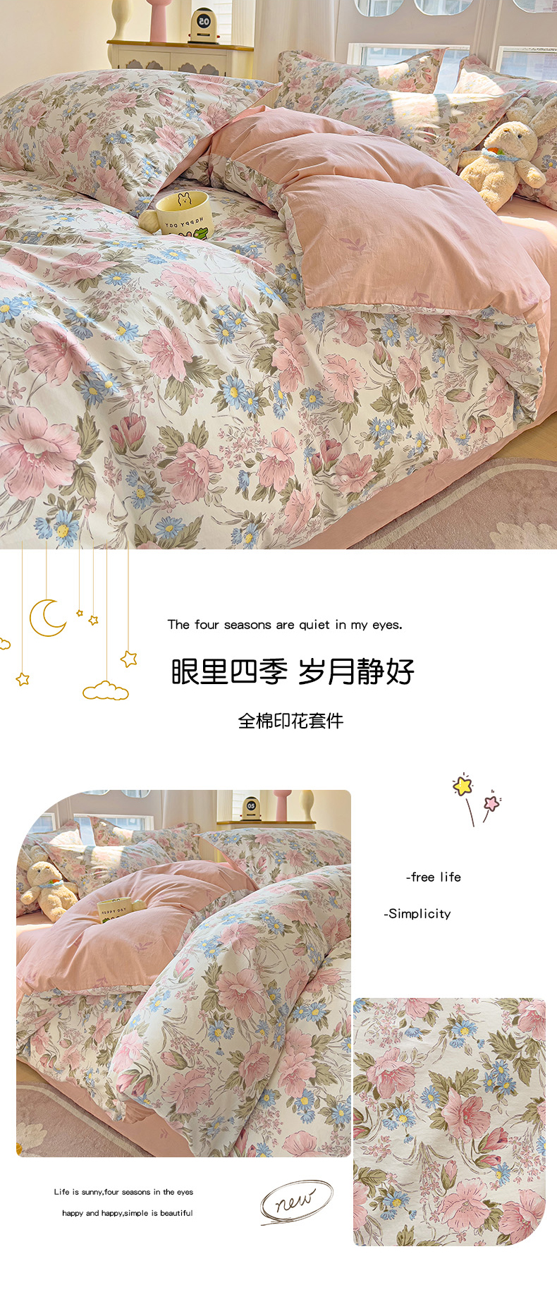 当前位置: 91家纺网 > 商品网购 > 床品套件 > 四件套 > 全棉普通四件套 > 优选良品 2025直播爆款加厚全棉磨毛四件套喷气印花纯棉(一字绣工艺款)学生三件套9月上新 花暖香风