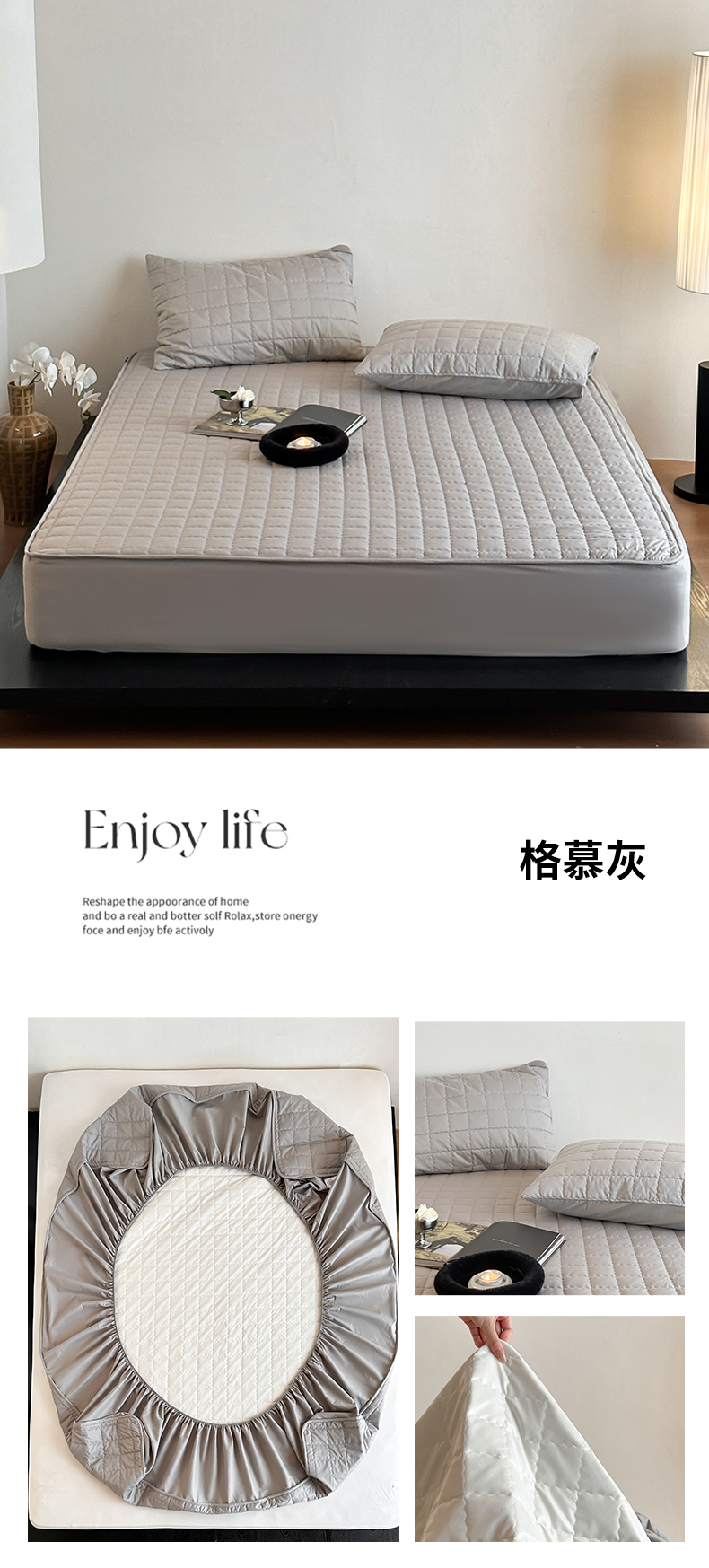 三味舒屋 2024新款全棉夹棉绗缝防水隔尿床笠【格慕系列】 格慕灰