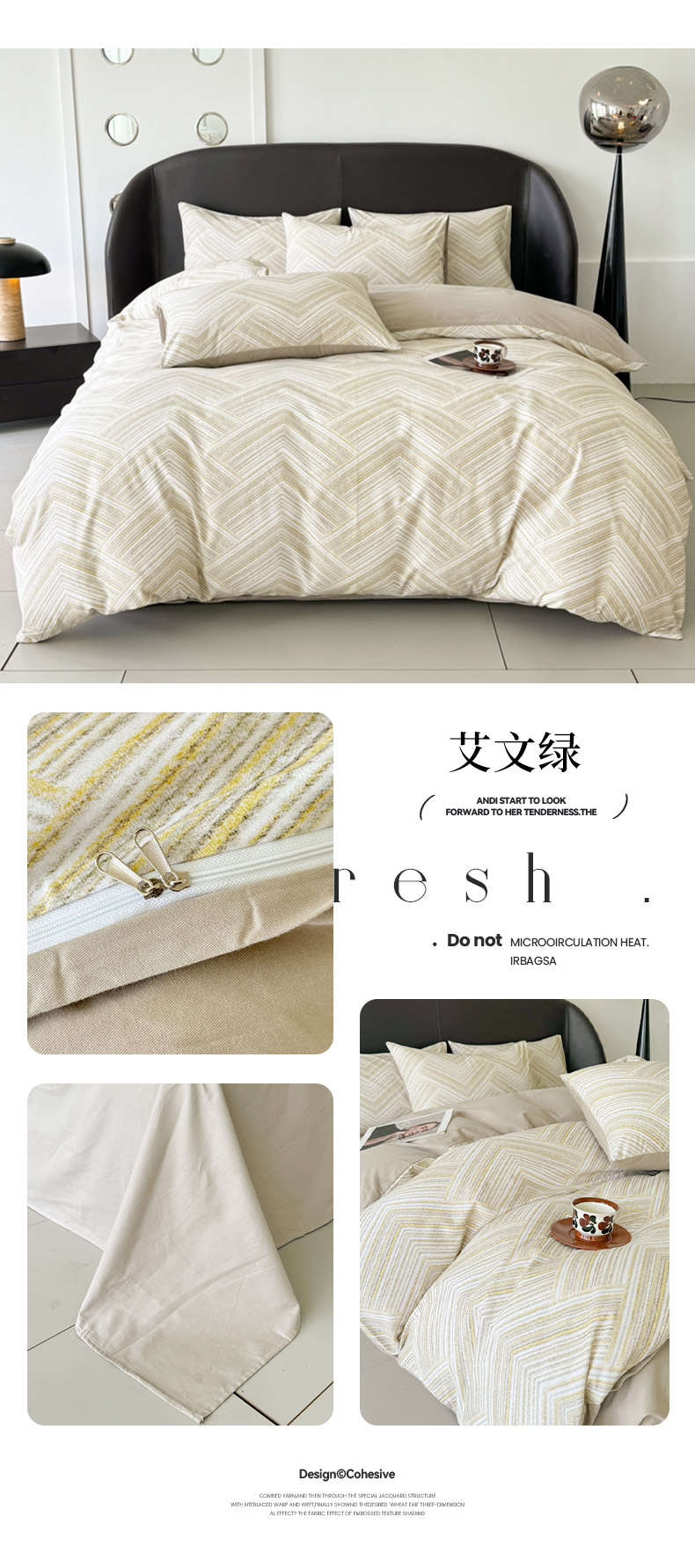 (总)千朵 2025新款全棉纯棉色织提花水洗棉四件套 富士系列,富士果绿,富士灰,富士奶黄,富士浅兰,富士浅紫,富士森绿,富士雾兰