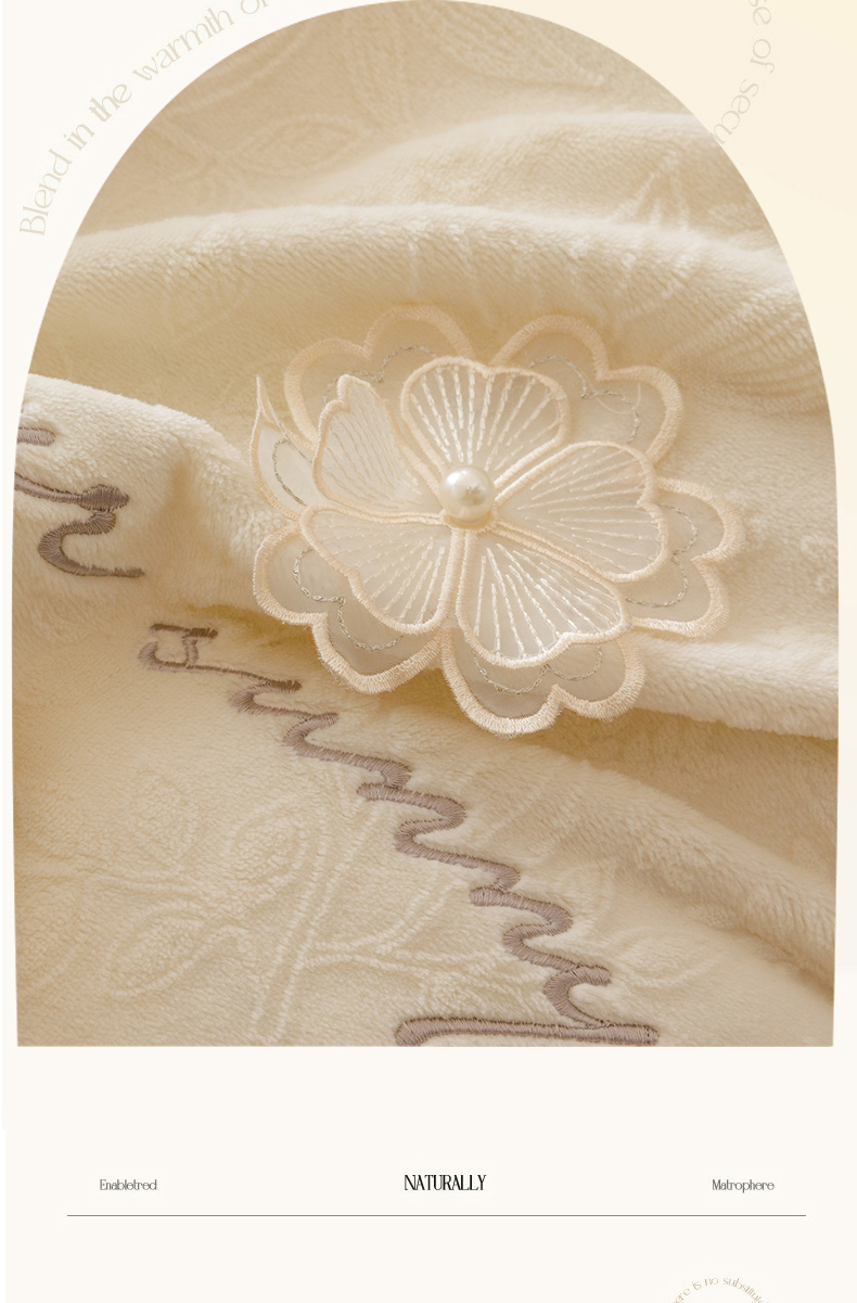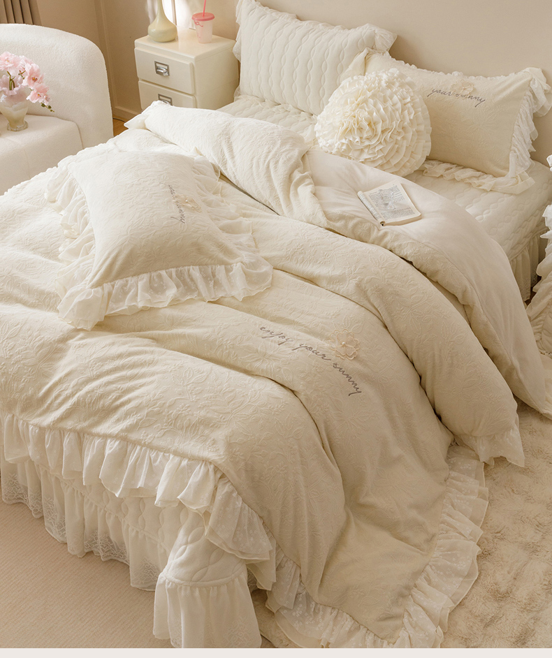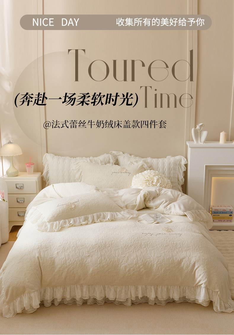 胜权家纺 2024秋冬新款法式牛奶绒蕾丝床盖四件套系列-爱丽丝 爱丽丝-珍珠白