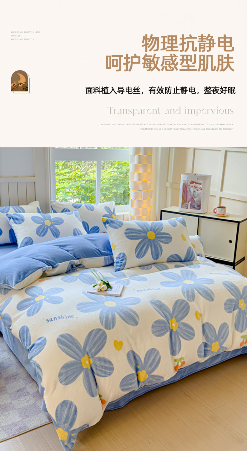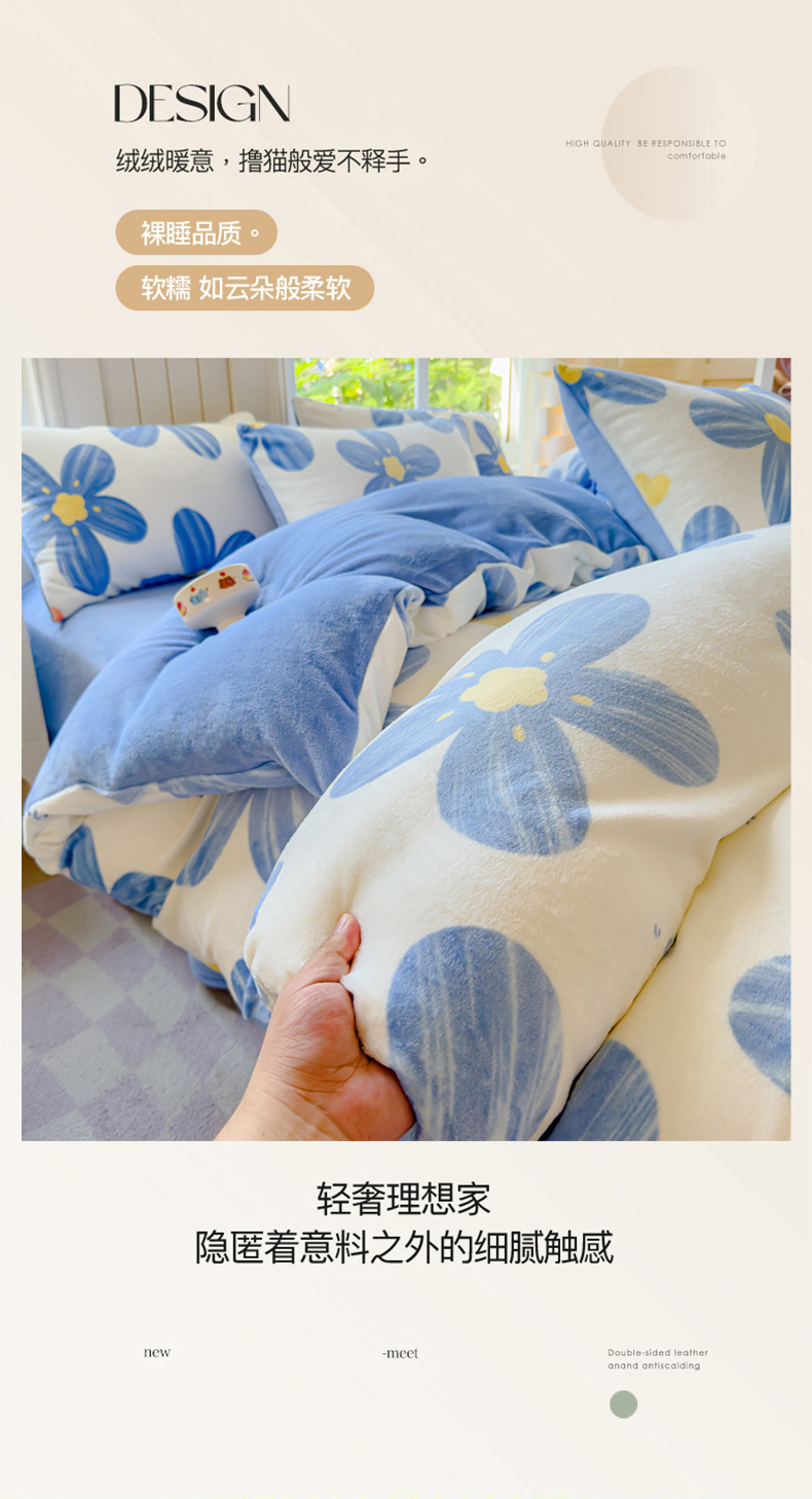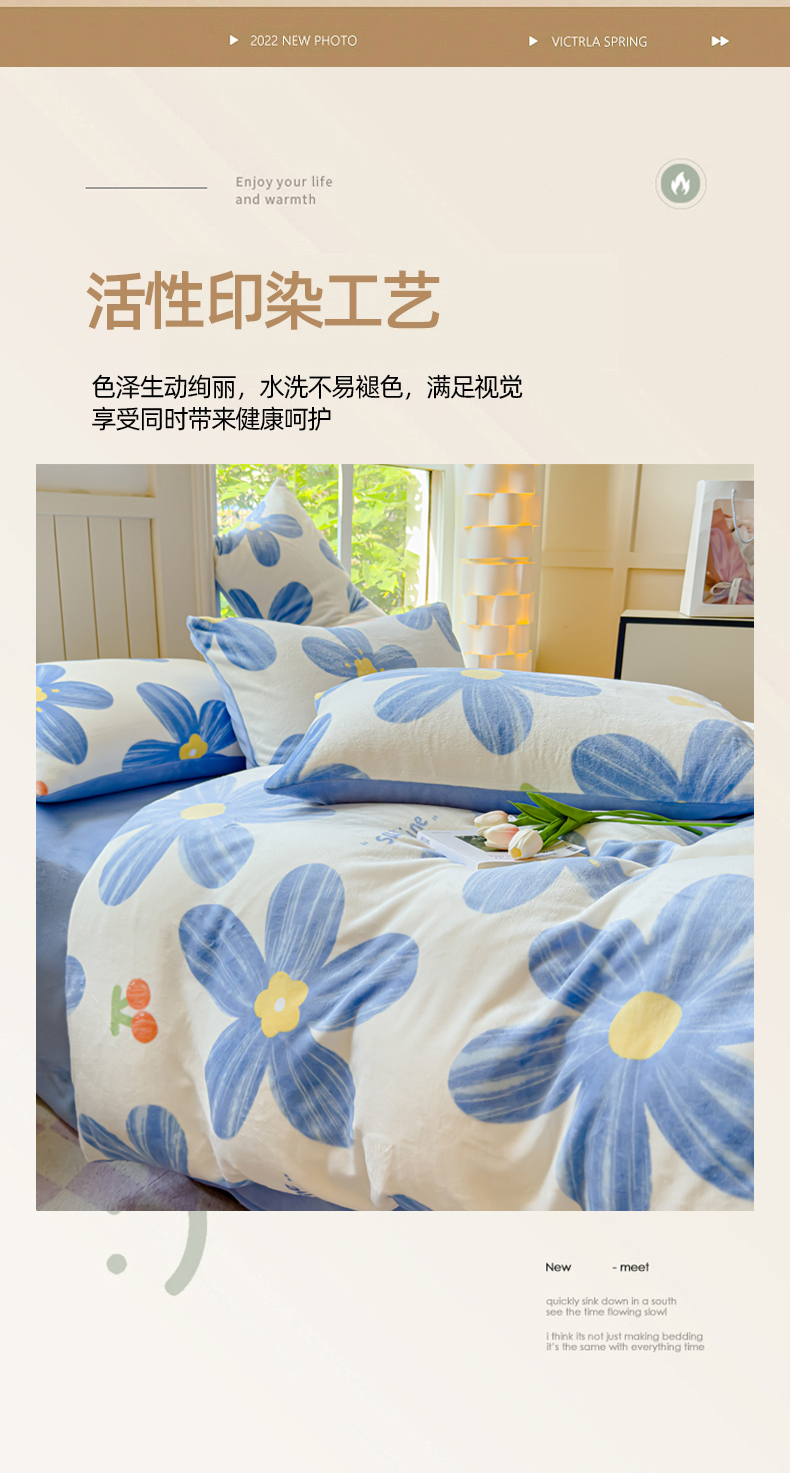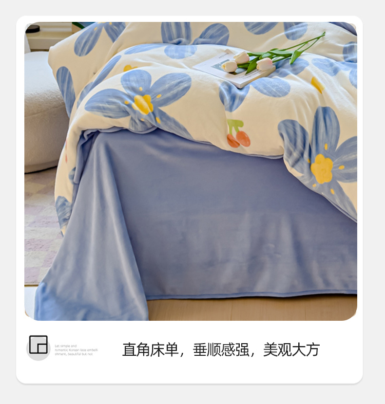 商品名称:觅妮家纺 2025新款全消光200g高克重秋冬加厚印花牛奶绒单被套 幸运花