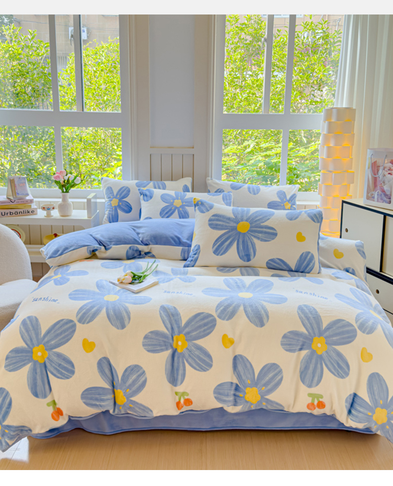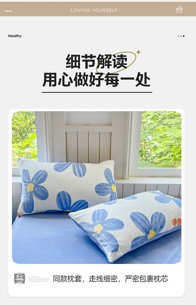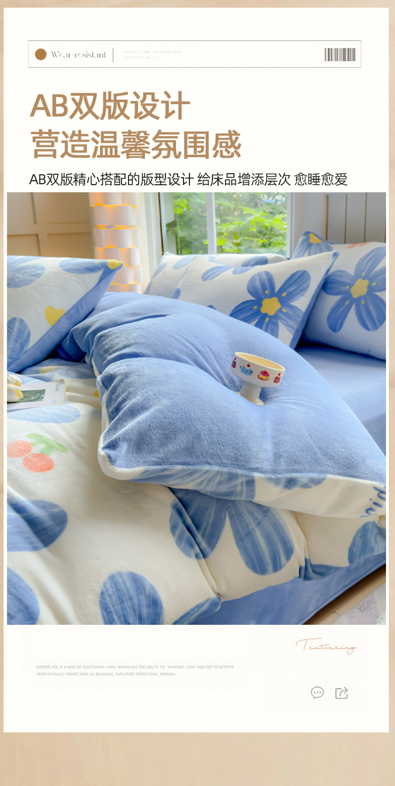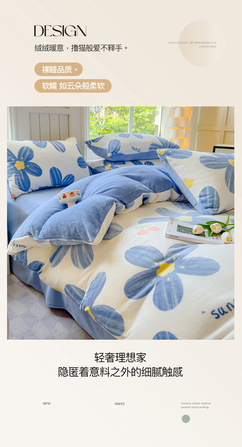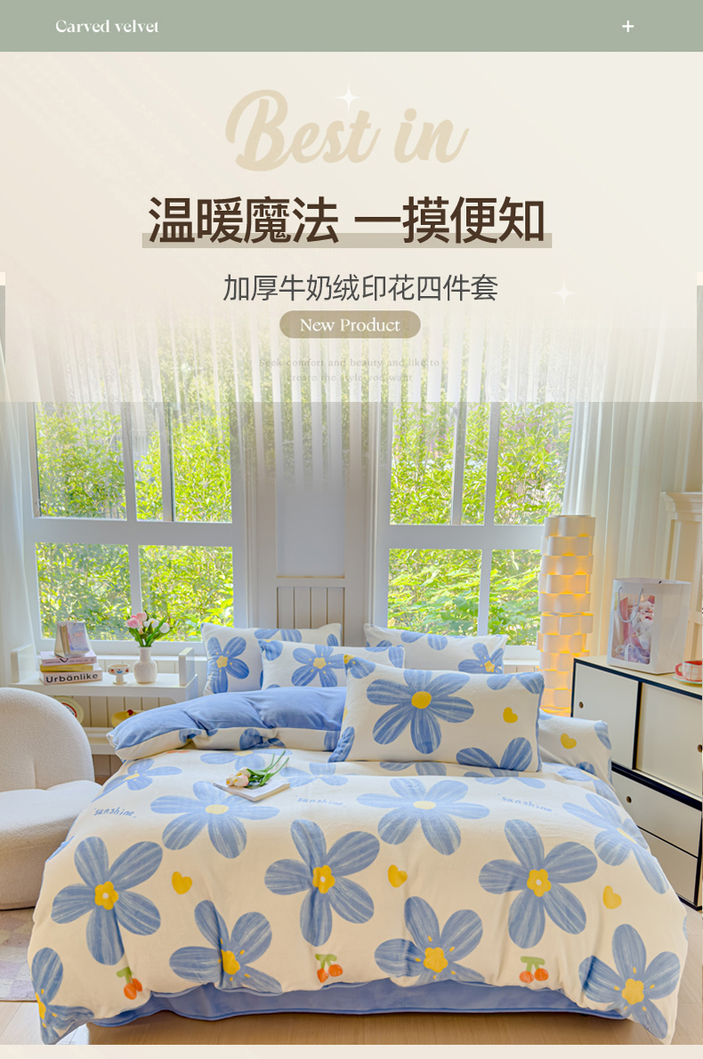商品名称:觅妮家纺 2025新款全消光200g高克重秋冬加厚印花牛奶绒单被套 幸运花