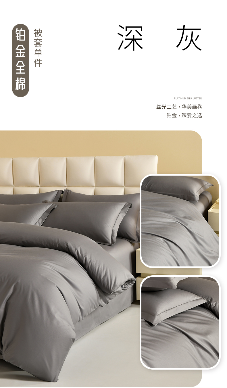 商品名称:元元被芯 2025款纯色全丝光-全精梳高密纺-铂金A类全棉单被套 深灰