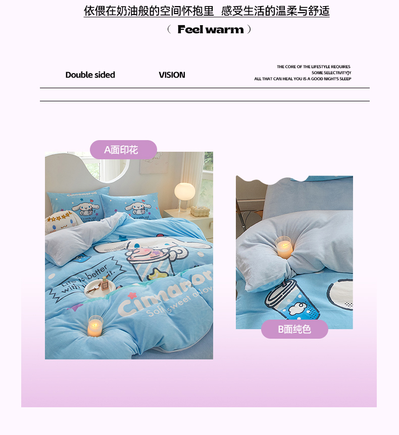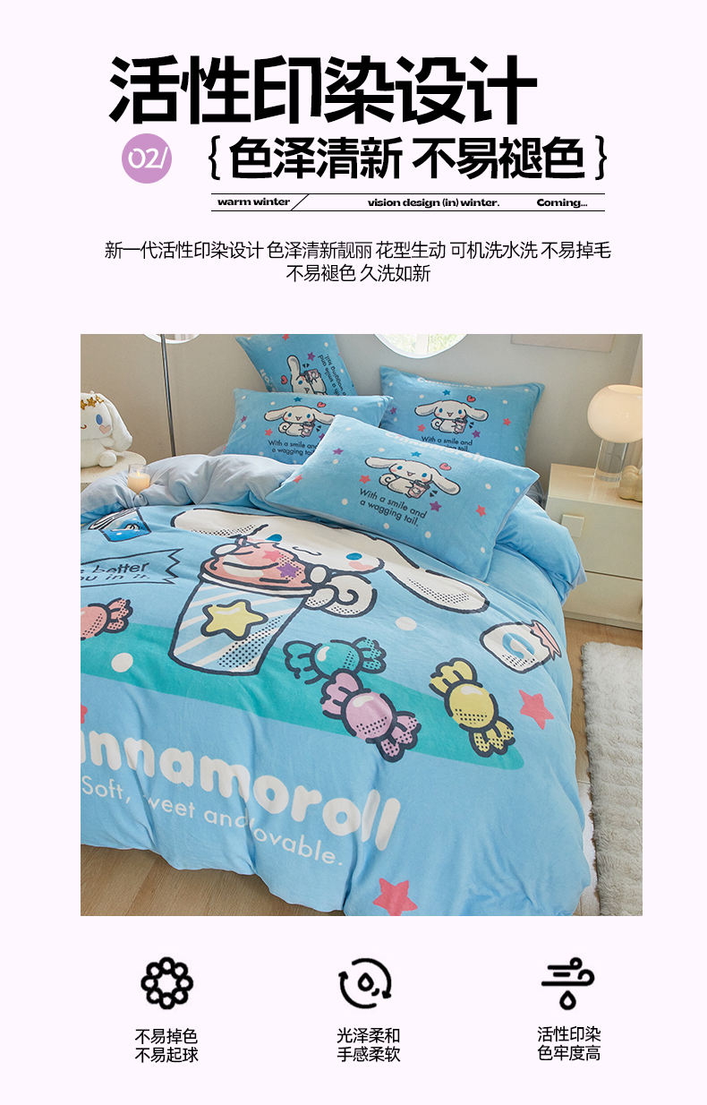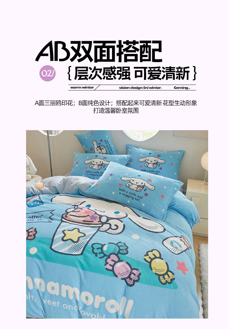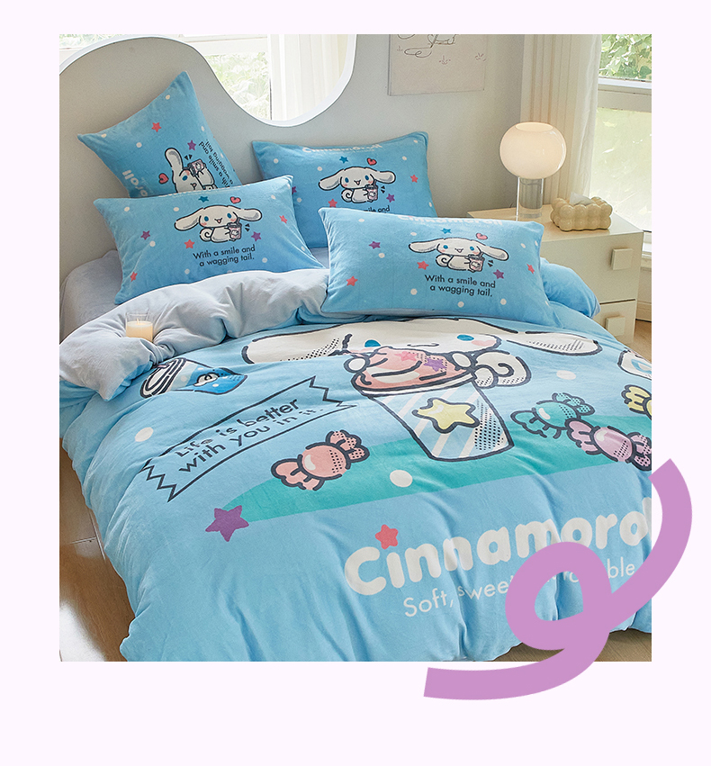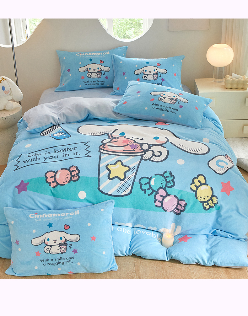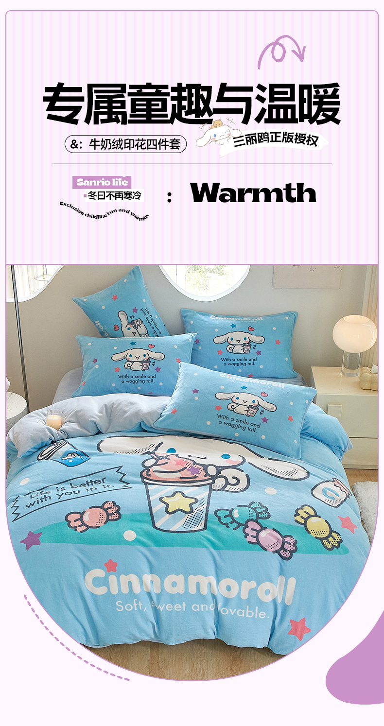 当前位置: 91家纺网 > 商品网购 > 床品套件 > 四件套 > 牛奶绒四件套 > 蘭菲家纺 2024新款牛奶绒卡通三丽鸥四件套 奶茶