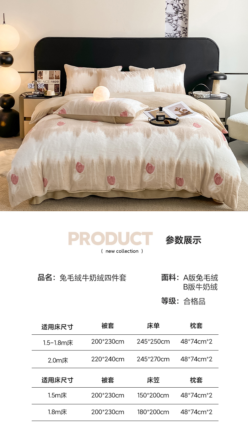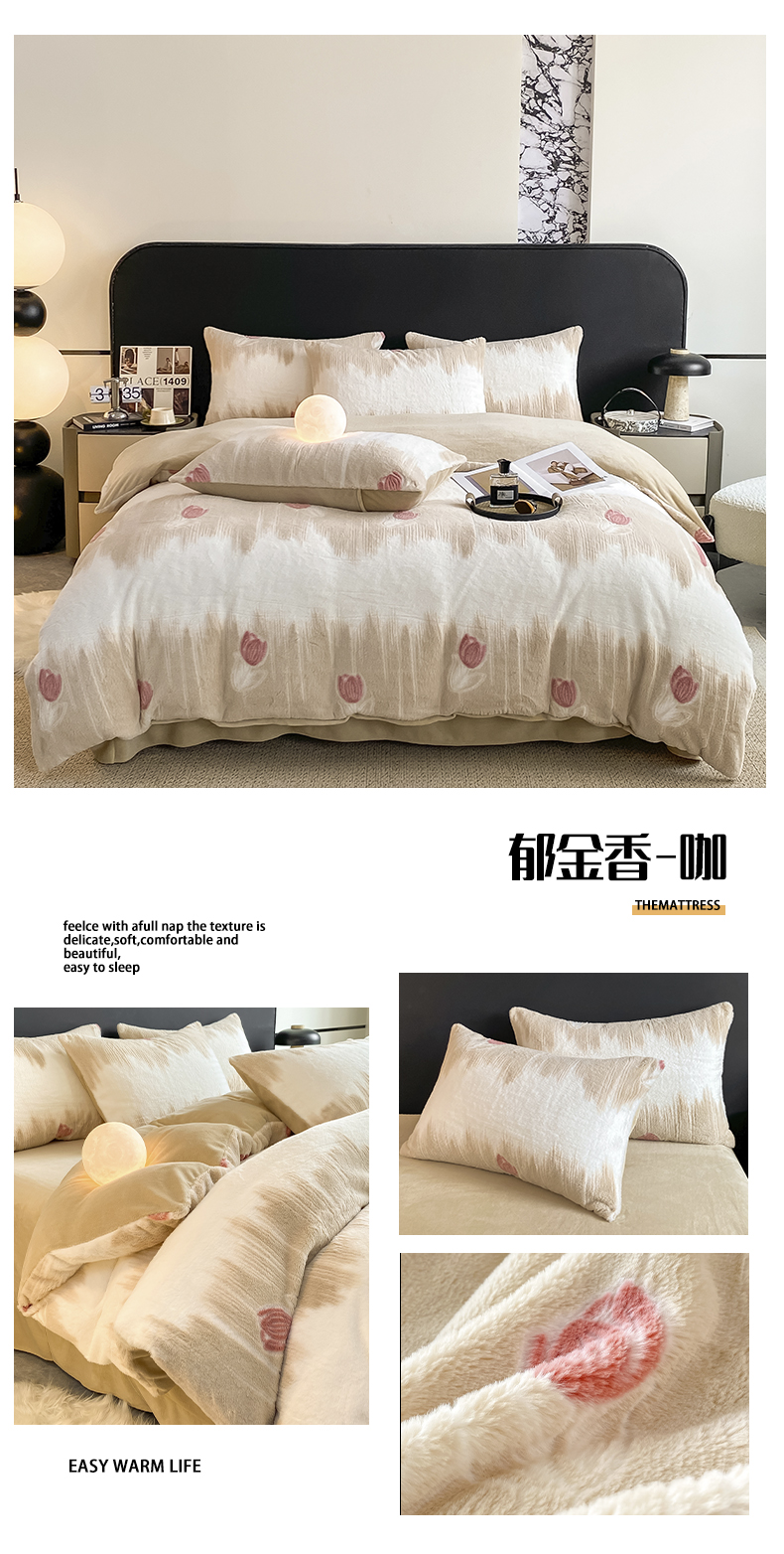 富之航家纺 2024新款剪花兔兔绒四件套 郁金香-咖